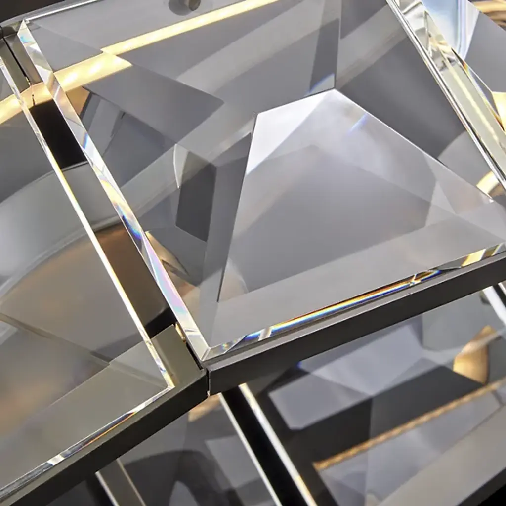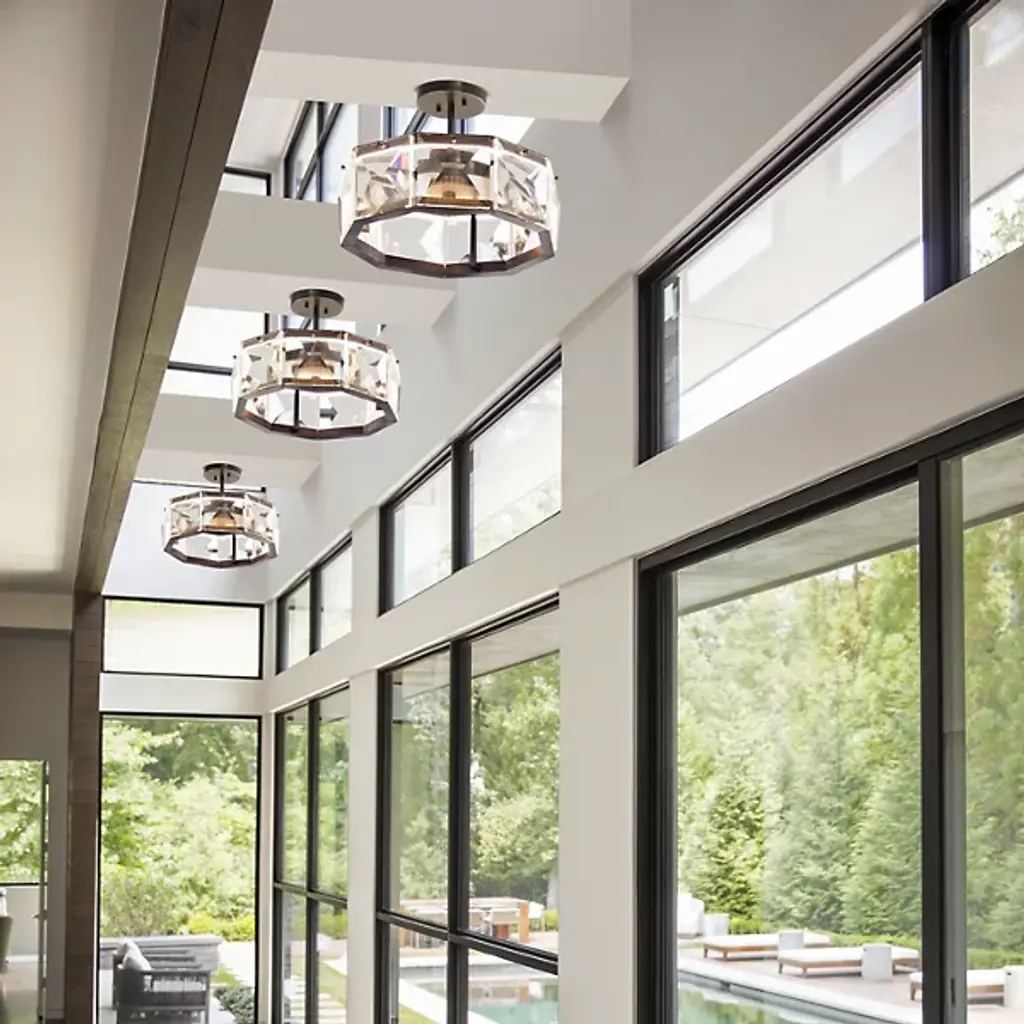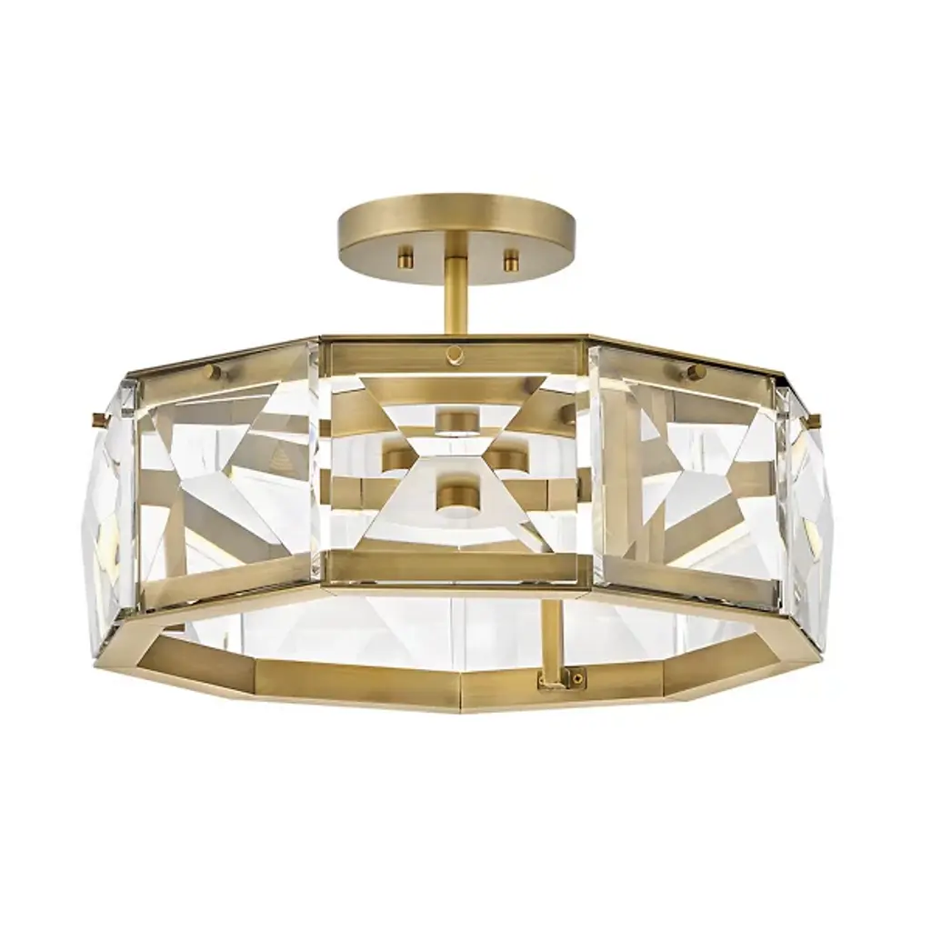 Give your home décor a sparkling touch of light with the Joile LED Semi-Flushmount by Fredrick Ramond. Its elegant design is defined by an angular shade made from square panels of faceted clear crystal framed in sleek metal holders. A circular canopy and short stem hold the piece in place while its integrated LED lamping emits a bright, energy-efficient light that refracts through the crystal to give off a glimmering ambient light for the room.