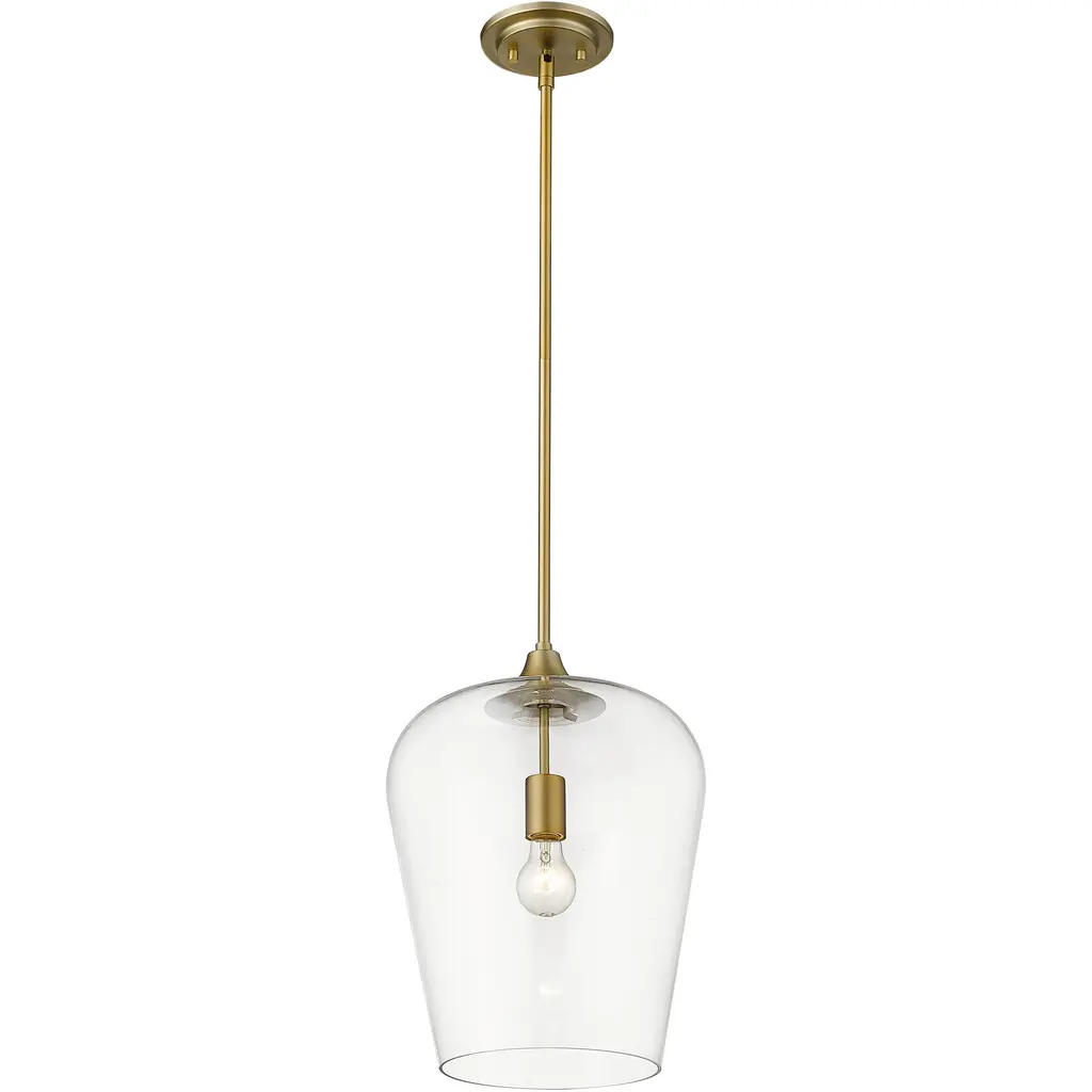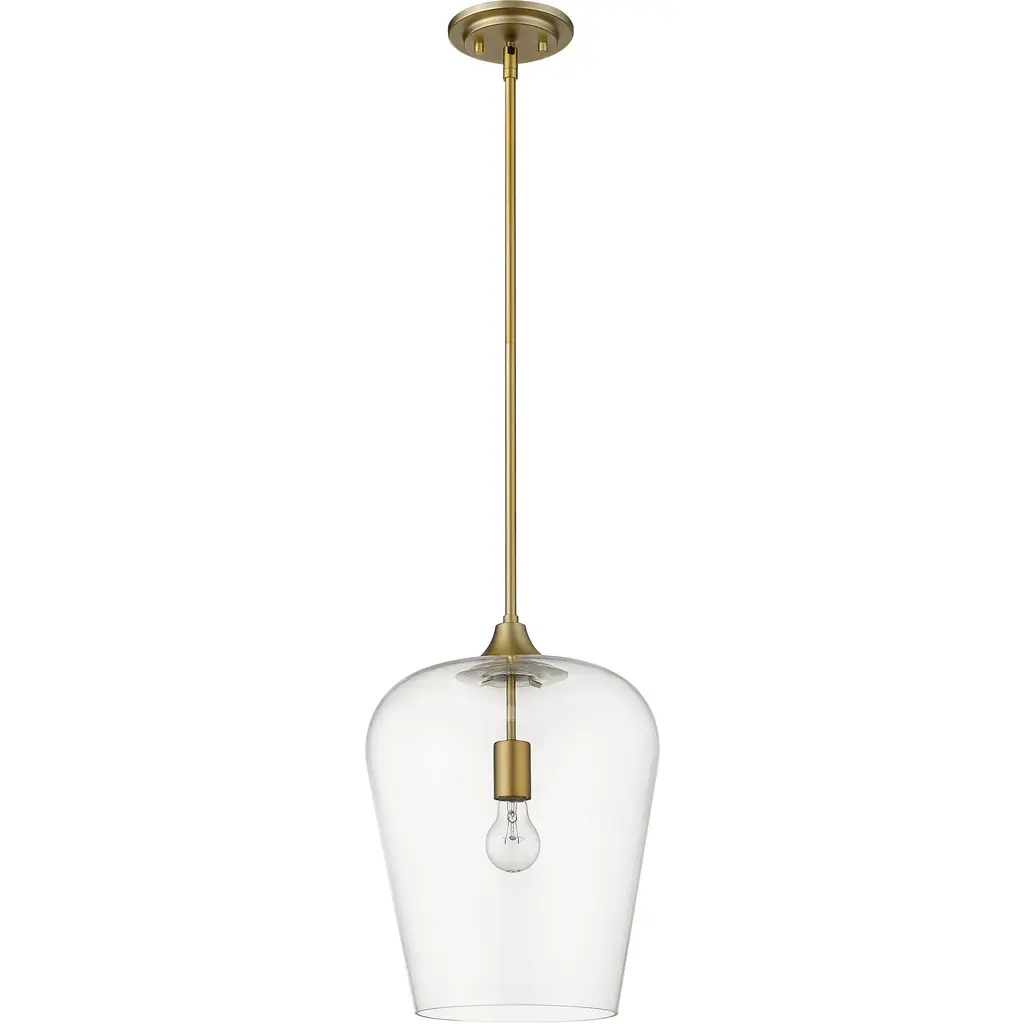 Designed with sleek metal lines and an elegant silhouette, this olde brass pendant is a stunning home decor upgrade. This single-light fixture features a clear glass shade for a magnificent display of light.