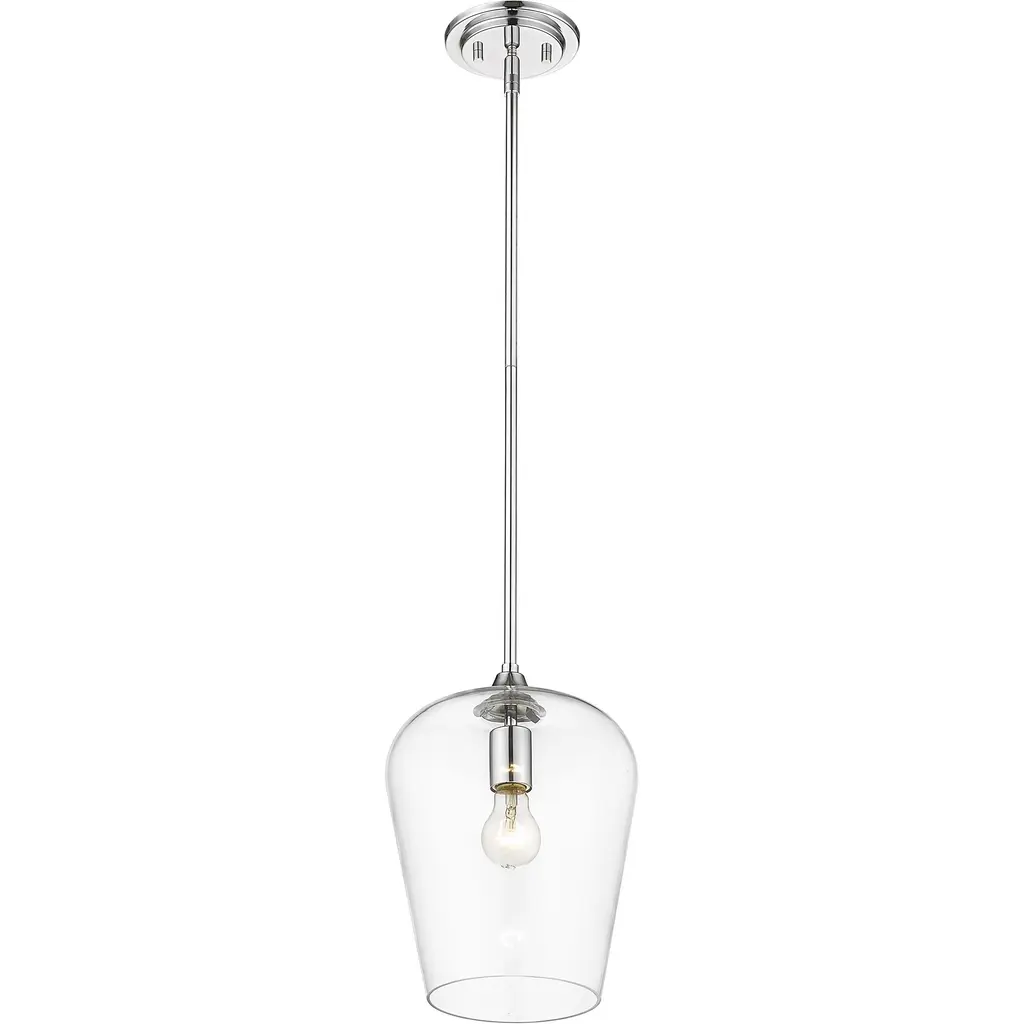 From the Joliet Collection comes an intriguing, ultra-modern one-light pendant offering a superb accent for kitchens, hallways, and main living areas. This pendant delivers a reverse-goblet design with a chic clear glass shade and gorgeous chrome finish steel holder, down rod, and canopy. Infuse custom contemporary charm with a delicate flavor.