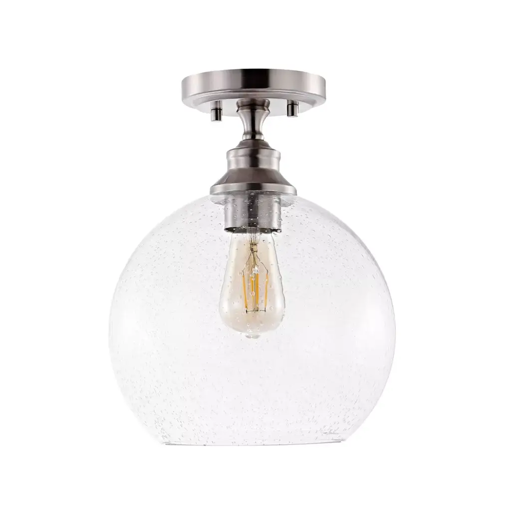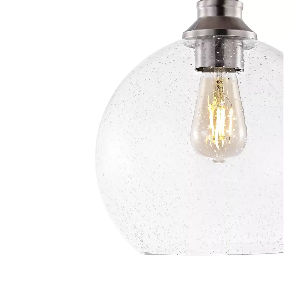 Jonathan Y 9.75" Led 1-light Marla Iron/seeded Glass Pendant Nickel/clear : Ul Listed, Modern Semi-flush Mount