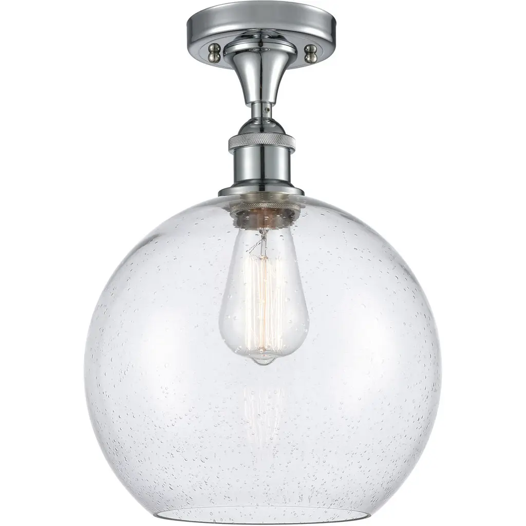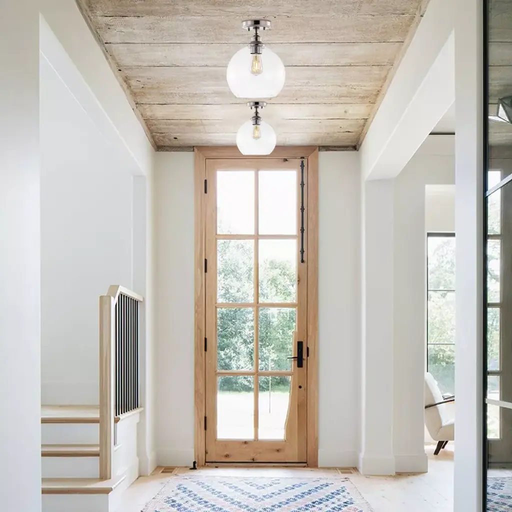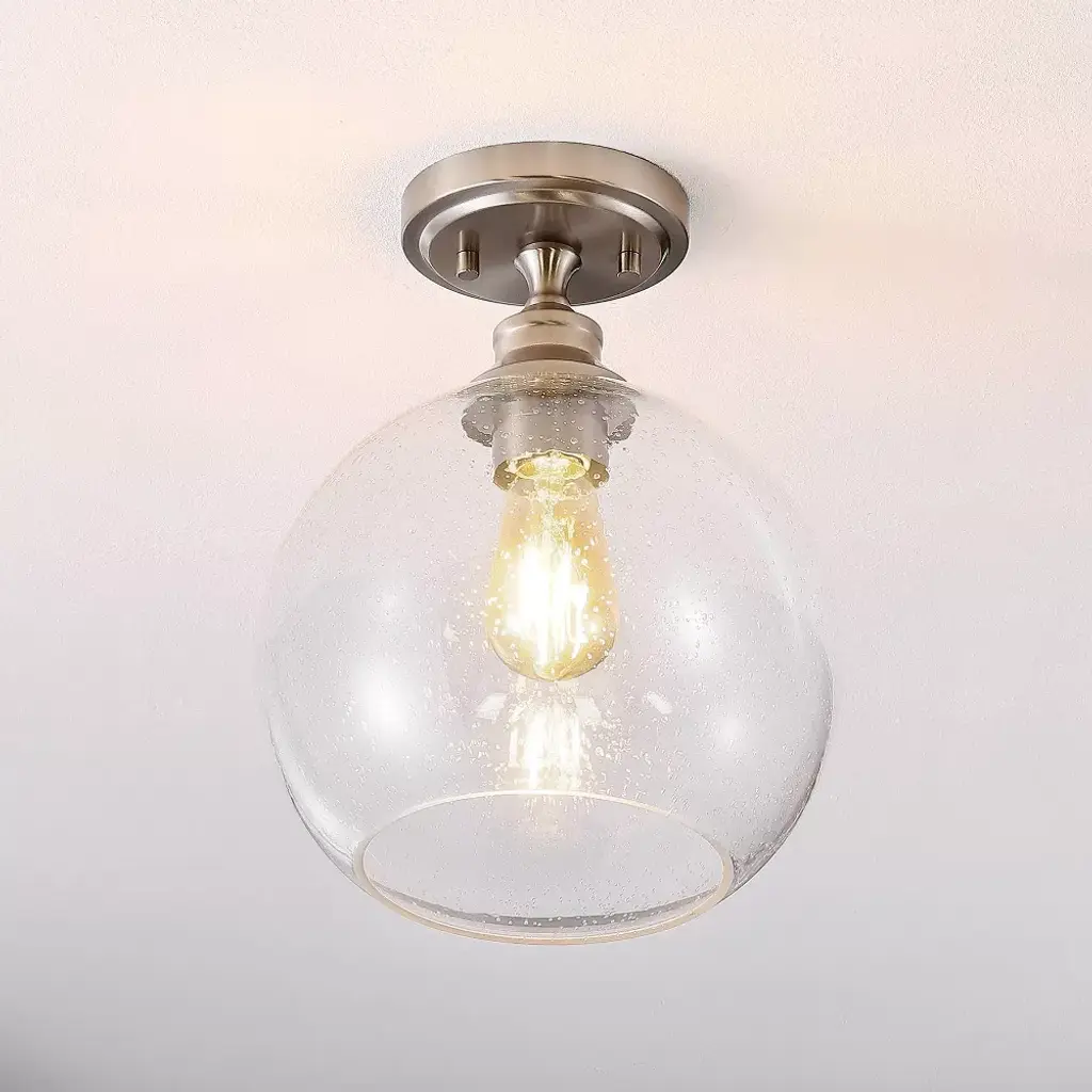 Replace outdated ceiling lights with this vintage-inspired globe light fixture for an instant update. At just under 13" high, this stylish light fixture is ideal for eight-to-ten foot ceilings. Our light fixtures work with LED-compatible dimmers; professional installation is recommended. Eco-friendly 4W LED bulb included. Takes 1 bulb and compatible with TYPE "A" 40W or CFL 13W or LED 9W. Color Temperature: 2700K. CRI: 80. Before cleaning any lamp shade or fixture, disconnect the power source. Wipe with a soft, dry cloth. Avoid the use of chemicals and household cleaners as they may damage the finish.