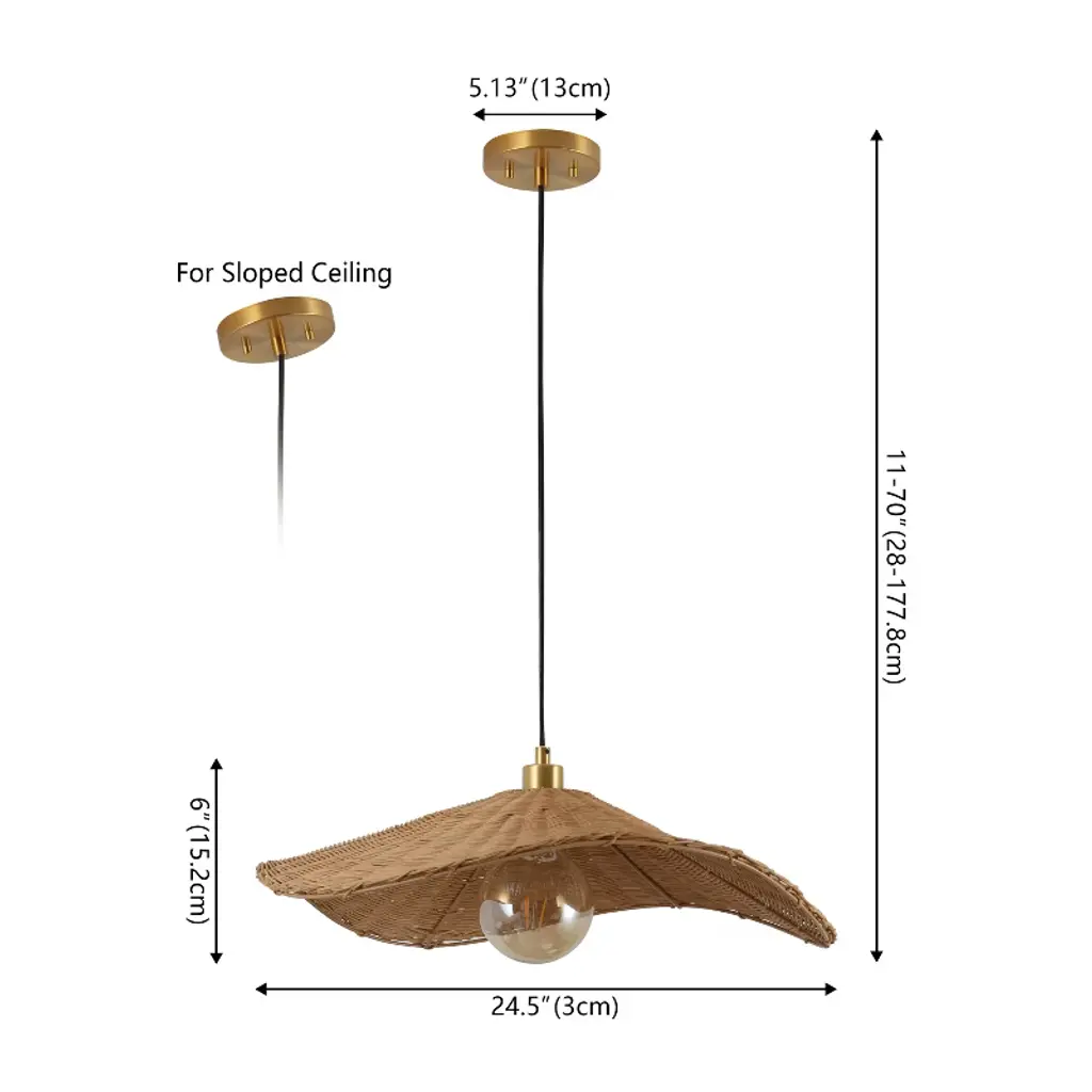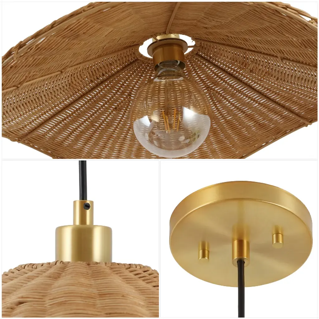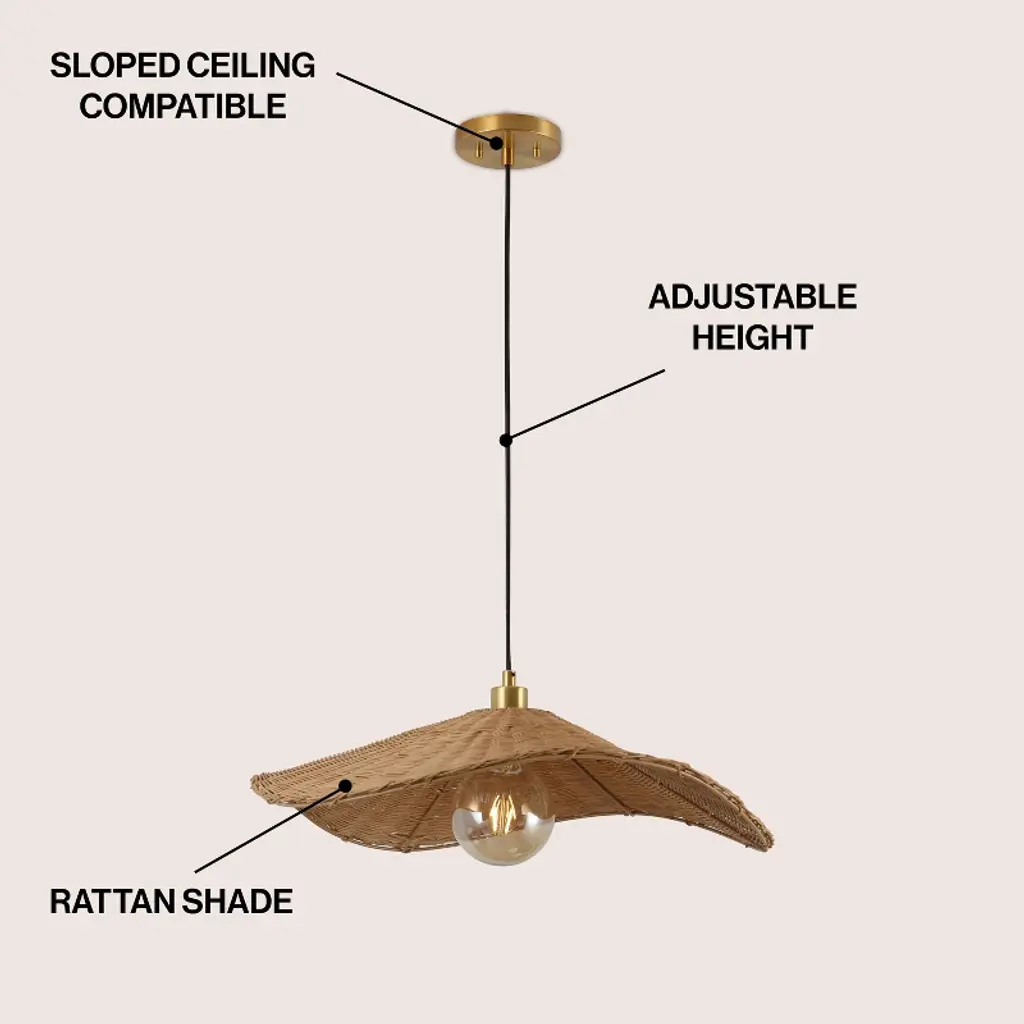This modern pendant light adds coastal style to any space with the sweeping curves of its rattan shade. Natural rattan is combined with metal fittings and a an LED Edison bulb for bright, warm light. Use two or three over a kitchen island, bar, or dining table for a contemporary look.
