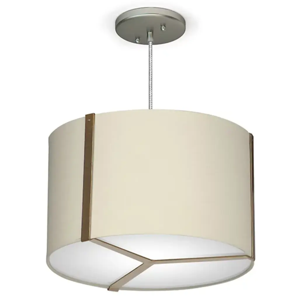 The Jordan Pendant from Seascape Lamps offers an elevated contemporary appeal to indoor ceilings. Originally designed in 1980 by Mike Shenk, it brings a casual, Santa Cruz character to inside ceilings and is emblematic of his unique designs that focus on creative craftsmanship. Each fixture is made in the USA and uses a three-branch metal bracket to support a cylinder-shaped linen shade around a disc diffuser made from acrylic. The two textures collaborate to reduce direct glare; the textured textiles focus the lighting below, dispersing even ambiance through the translucent acrylic set into the base.
