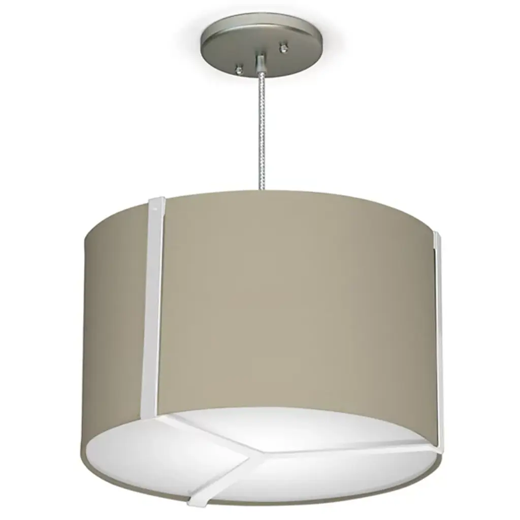 The Jordan Pendant from Seascape Lamps offers an elevated contemporary appeal to indoor ceilings. Originally designed in 1980 by Mike Shenk, it brings a casual, Santa Cruz character to inside ceilings and is emblematic of his unique designs that focus on creative craftsmanship. Each fixture is made in the USA and uses a three-branch metal bracket to support a cylinder-shaped linen shade around a disc diffuser made from acrylic. The two textures collaborate to reduce direct glare; the textured textiles focus the lighting below, dispersing even ambiance through the translucent acrylic set into the base.