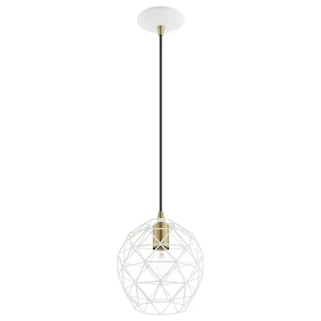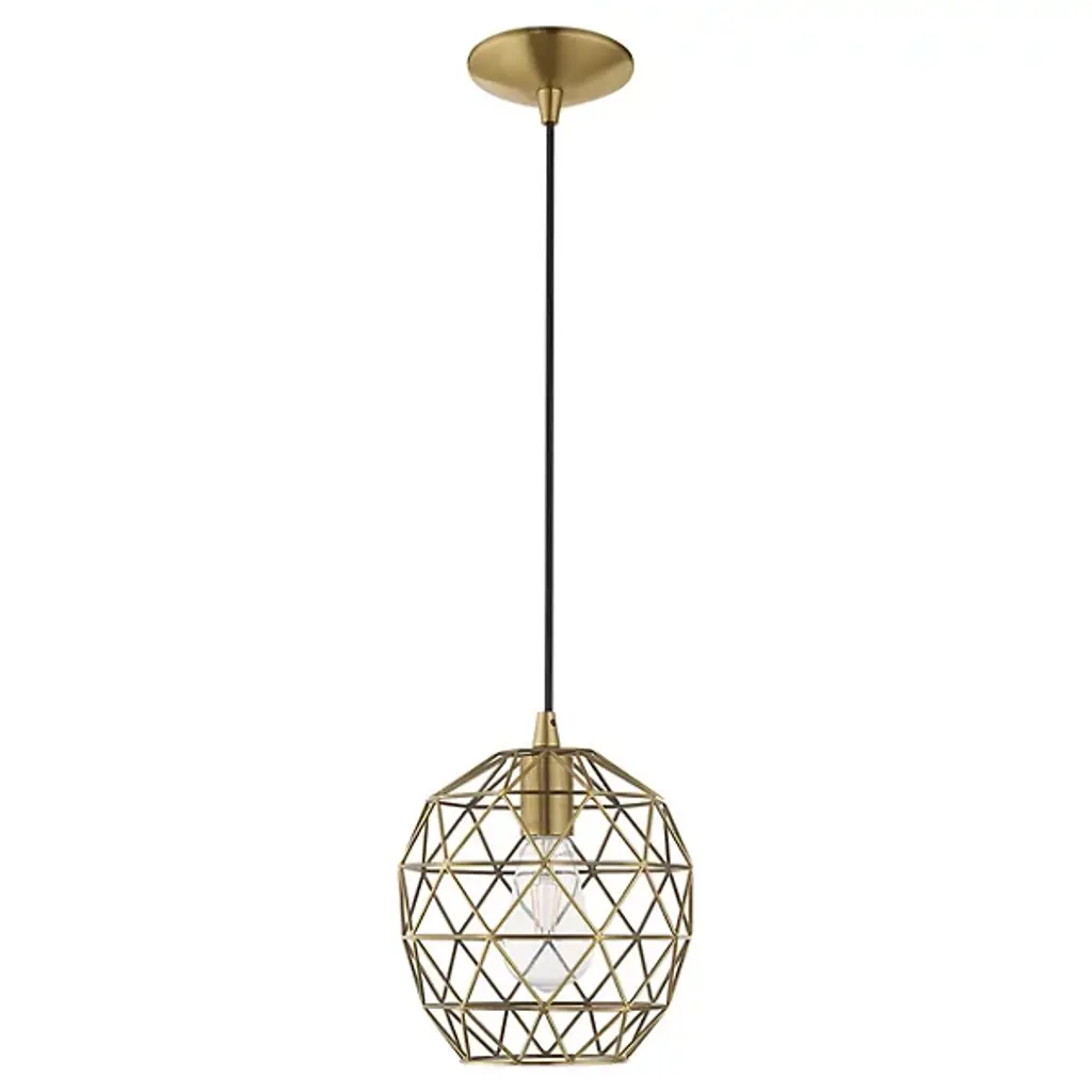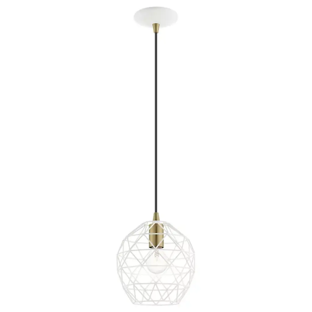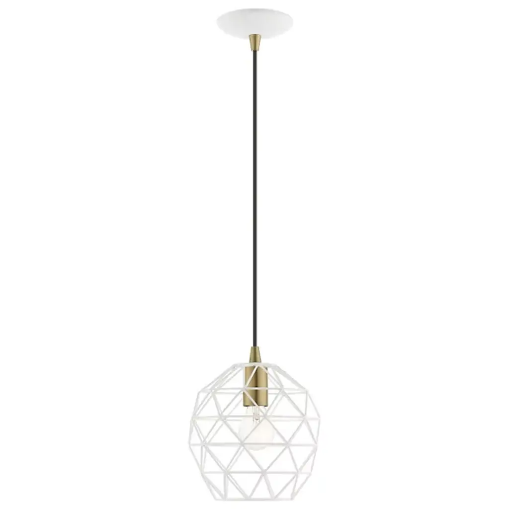 Expand inside spaces with a casual, geometric character. The Joseph Dome Mini Pendant from Alder & Ore extends down from a curved disc canopy along a slender cord, setting a single damp-listed socket inside a rounded shade with angular, hand-welded cross-bracing. This arrangement allows light from the lamping to spill out in a powerful, wide-reaching spread, accented by a pattern of shadows cast by the small bars of the intricately-assembled shade.