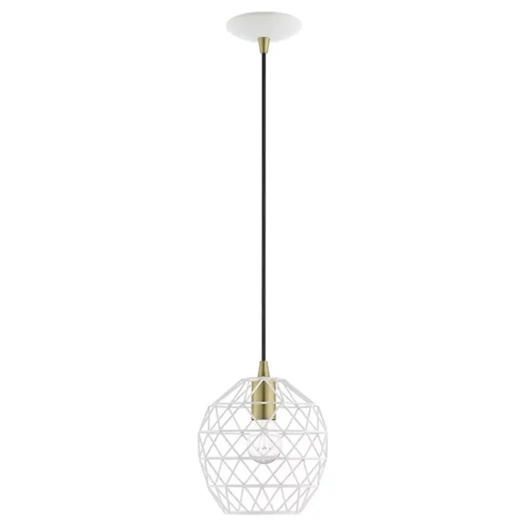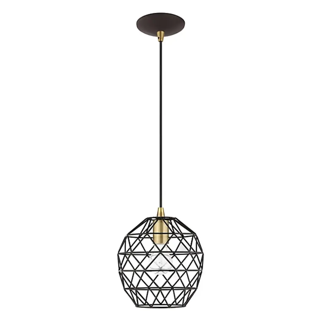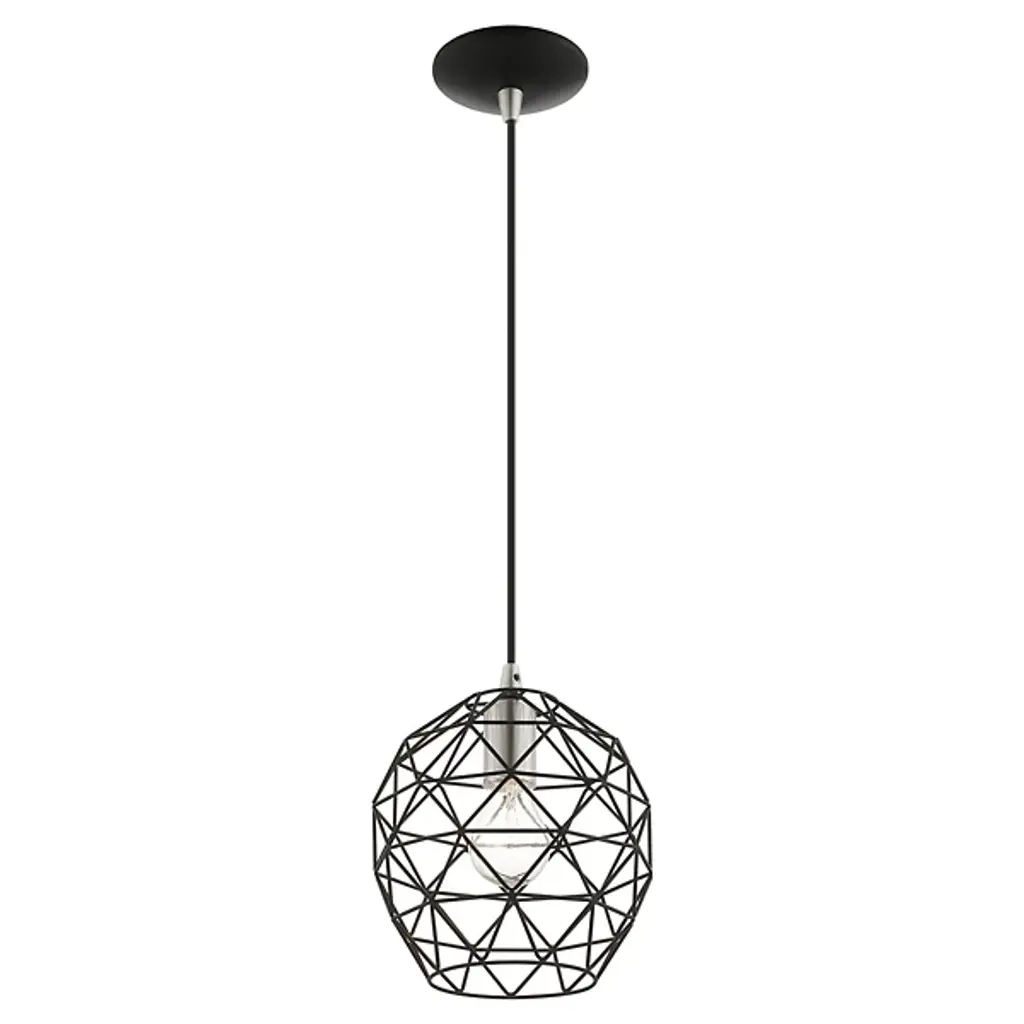 Expand inside spaces with a casual, geometric character. The Joseph Dome Mini Pendant from Alder & Ore extends down from a curved disc canopy along a slender cord, setting a single damp-listed socket inside a rounded shade with angular, hand-welded cross-bracing. This arrangement allows light from the lamping to spill out in a powerful, wide-reaching spread, accented by a pattern of shadows cast by the small bars of the intricately-assembled shade.