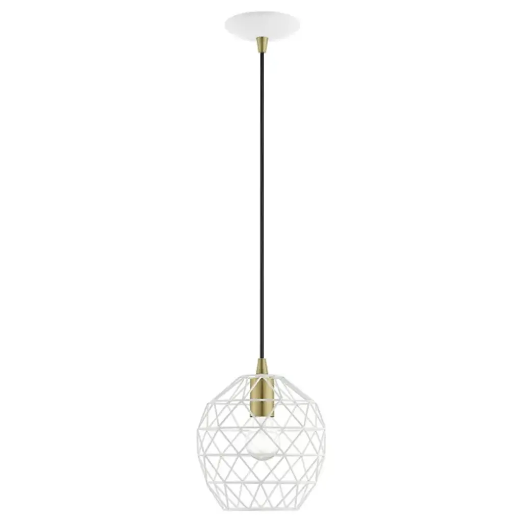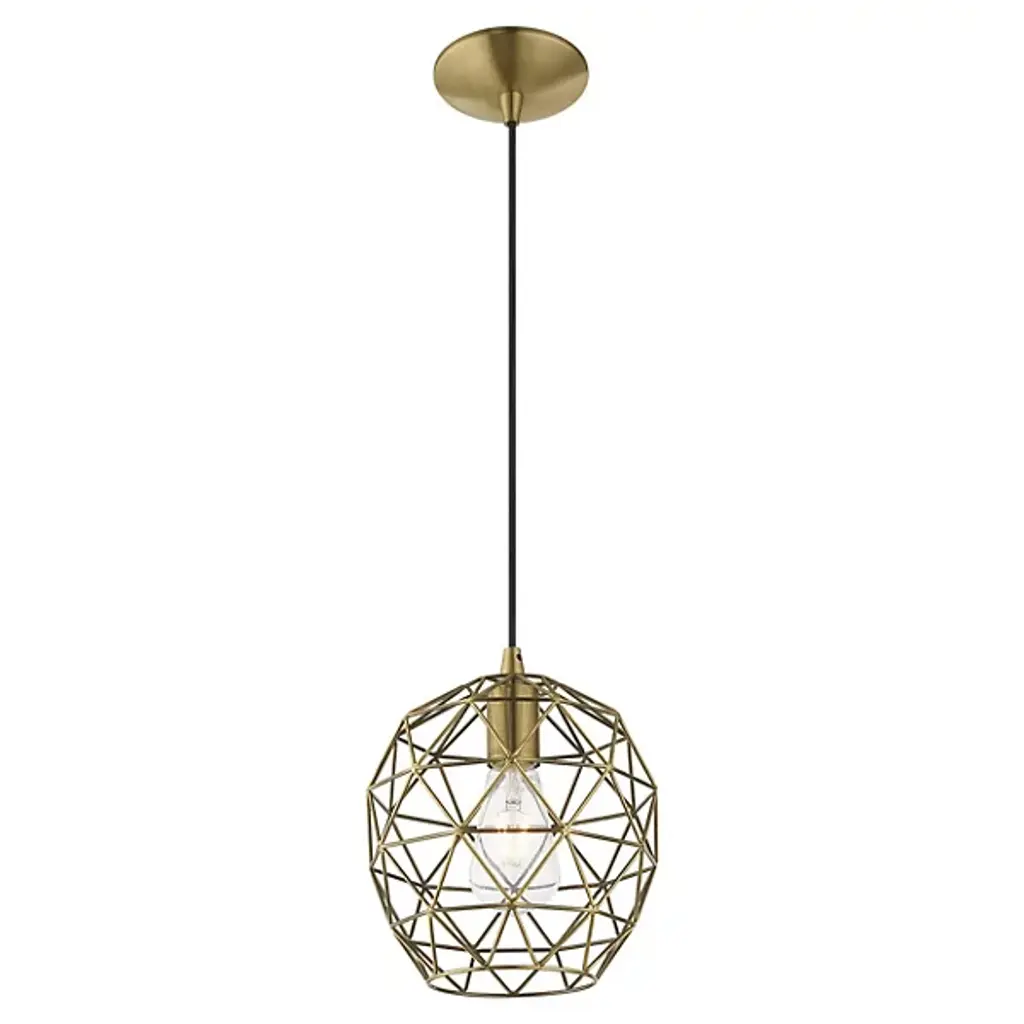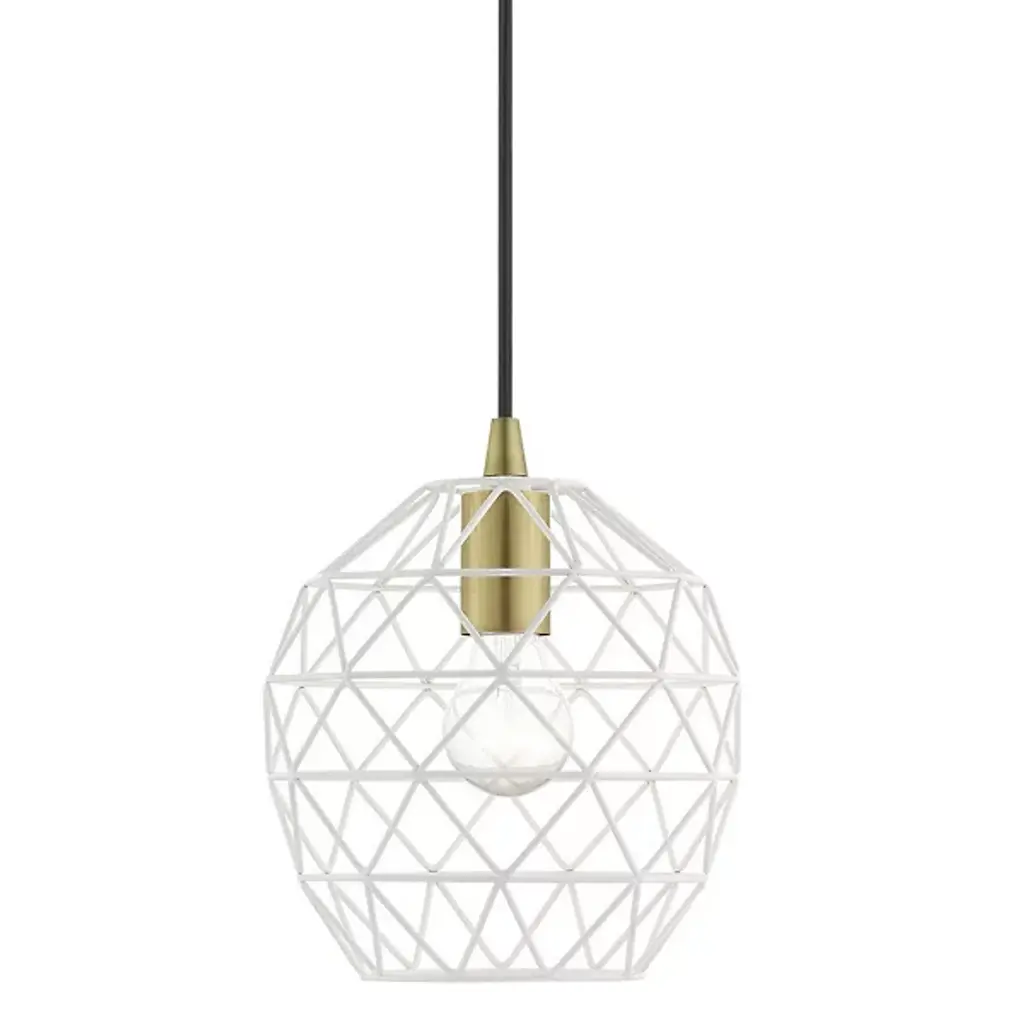 Expand inside spaces with a casual, geometric character. The Joseph Dome Mini Pendant from Alder & Ore extends down from a curved disc canopy along a slender cord, setting a single damp-listed socket inside a rounded shade with angular, hand-welded cross-bracing. This arrangement allows light from the lamping to spill out in a powerful, wide-reaching spread, accented by a pattern of shadows cast by the small bars of the intricately-assembled shade.
