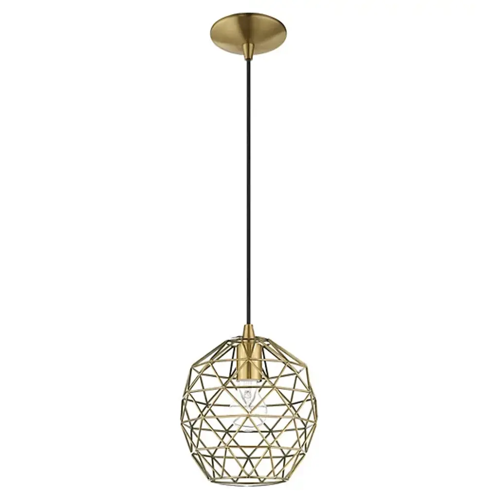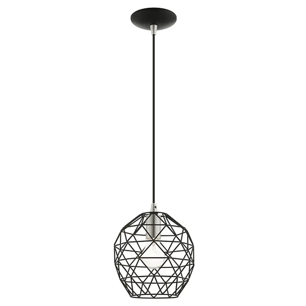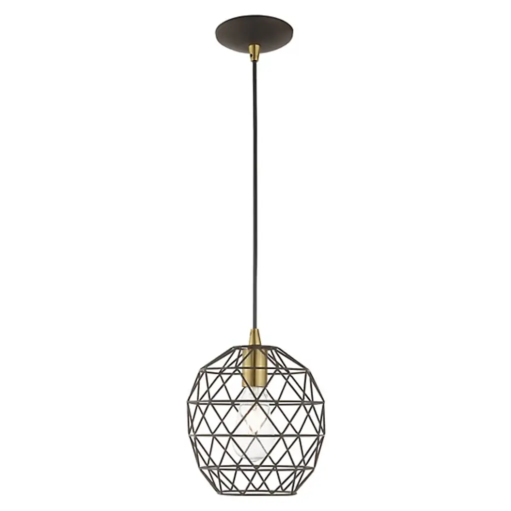 Expand inside spaces with a casual, geometric character. The Joseph Dome Mini Pendant from Alder & Ore extends down from a curved disc canopy along a slender cord, setting a single damp-listed socket inside a rounded shade with angular, hand-welded cross-bracing. This arrangement allows light from the lamping to spill out in a powerful, wide-reaching spread, accented by a pattern of shadows cast by the small bars of the intricately-assembled shade.