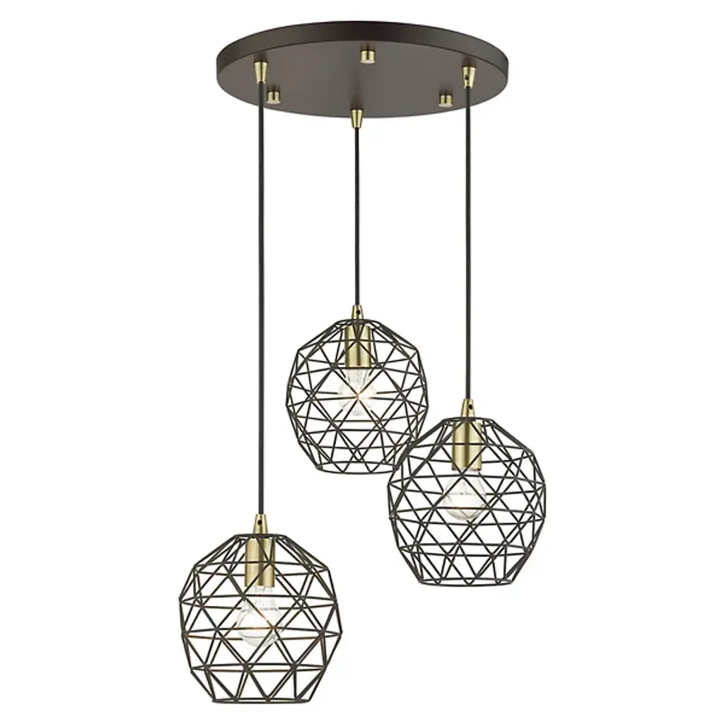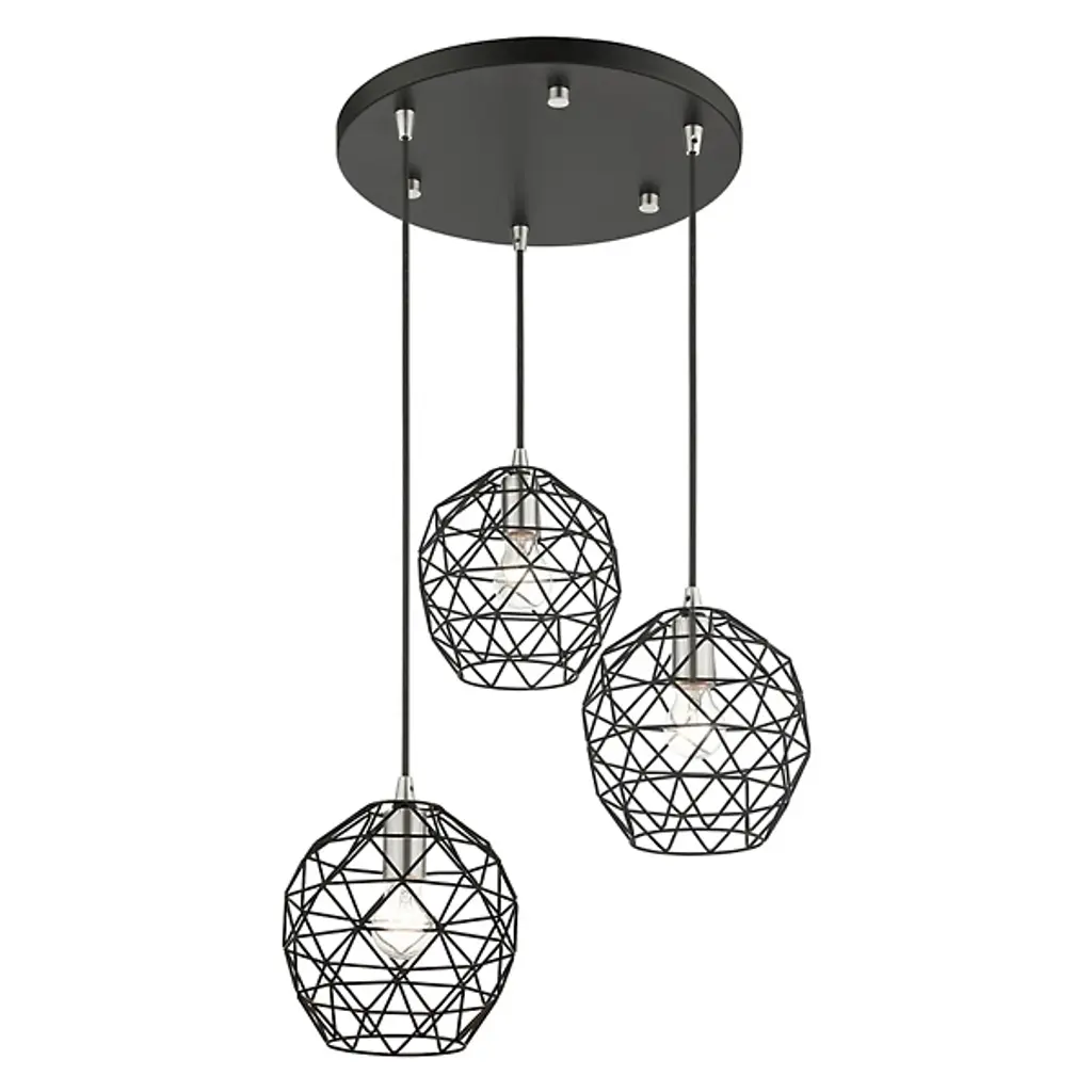 Add a refined, architectural design to your interiors with the Joseph Multi Light Pendant from Alder & Ore. Retained by a sleek circular canopy, it extends several slender cables down to a series of single-socket lamps set at different heights. Each lamp is damp-listed and durable, set inside an open shade of hand-welded steel triangles that casts a stylish pattern of shadows around the fixture while the lamping extends a radiant glow.