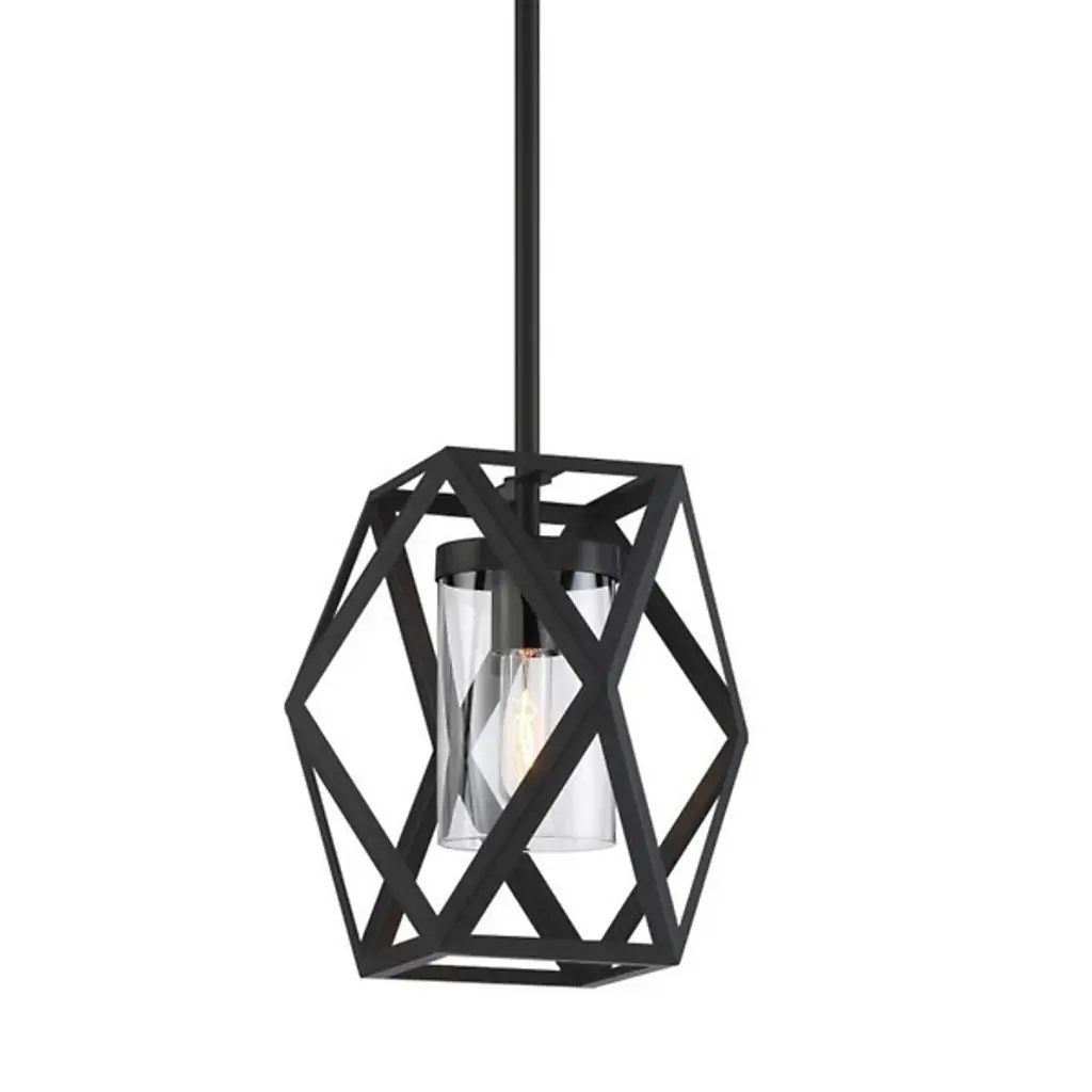The Josephine Mini Pendant by Alder & Ore is a petite yet practical addition to rooms. Suspended by a single down rod, a boldly finished, openly styled metal frame with a structured, geometric build surrounds a simple, cylindrical glass shade. Within this inner shade, a single, visible light shines, filtering past the layers around it to illuminate surroundings. Simple yet striking, this cool, confident design is a handsome choice for a variety of spaces.