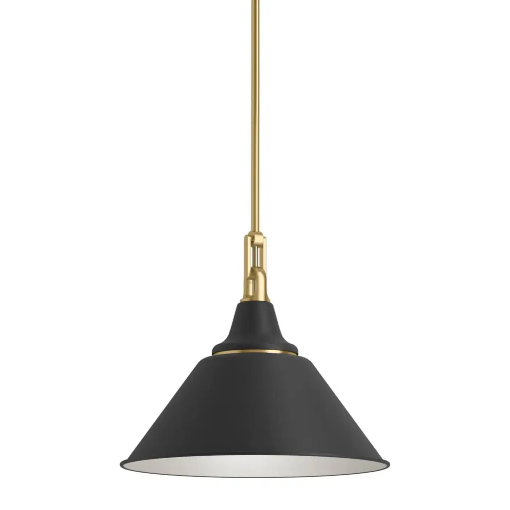 The Joss Mini Pendant by Alder & Ore brings a restoration-vintage vibe that complements many contemporary spaces. Crafted from steel and cast brass, the design features a dome shade, topped with a tapered cap. Lofted from a round ceiling canopy and matching stem, the one light pendant light fixture is the ideal ambient down lighting above a kitchen breakfast nook and creates a statement as a row of kitchen island pendant lights.