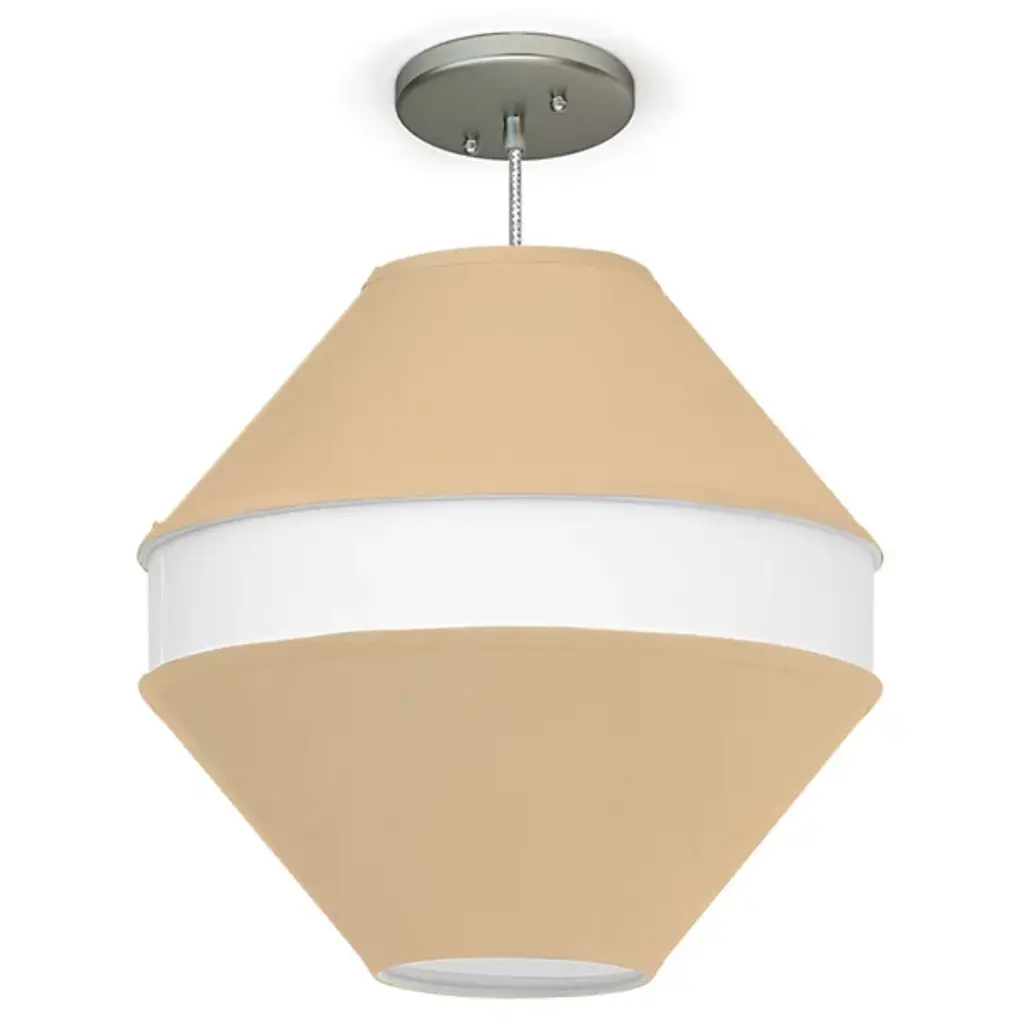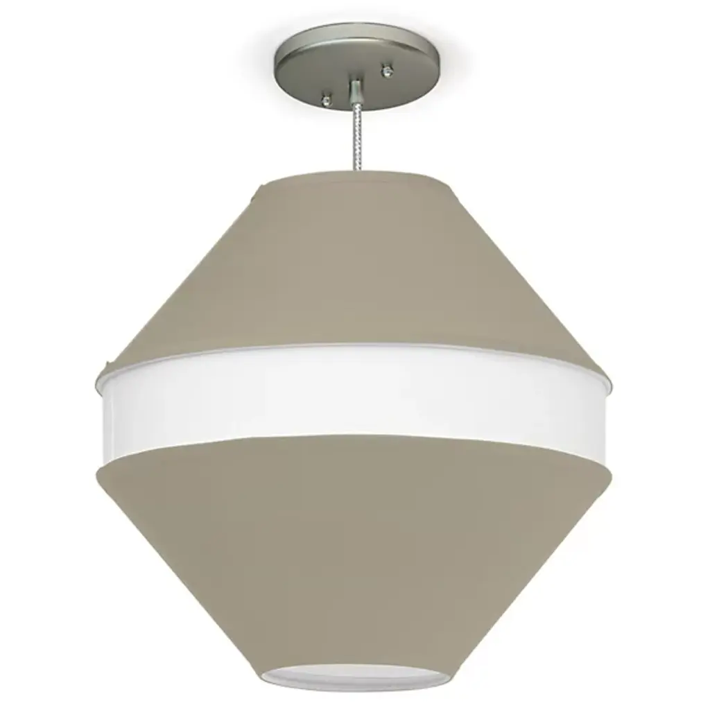The Josslyn Pendant from Seascape Lamps shows off a memorable geometric design that adds layered light to inside ceilings. Made in the USA at the Seascape Studio, its unique design surrounds inner lamping with a three-tiered shade, setting an inset, lighter-colored ring between two cone-shaped shades inverted around it for a large, bead shape. The light spills out through the shade’s open base, accompanied by a layer of even ambiance that extends to all sides, transforming its surroundings with a sculptural appeal.