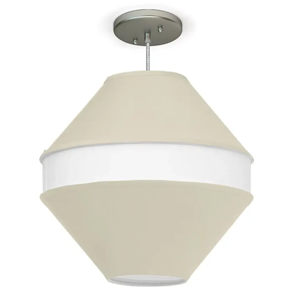 The Josslyn Pendant from Seascape Lamps shows off a memorable geometric design that adds layered light to inside ceilings. Made in the USA at the Seascape Studio, its unique design surrounds inner lamping with a three-tiered shade, setting an inset, lighter-colored ring between two cone-shaped shades inverted around it for a large, bead shape. The light spills out through the shade’s open base, accompanied by a layer of even ambiance that extends to all sides, transforming its surroundings with a sculptural appeal.
