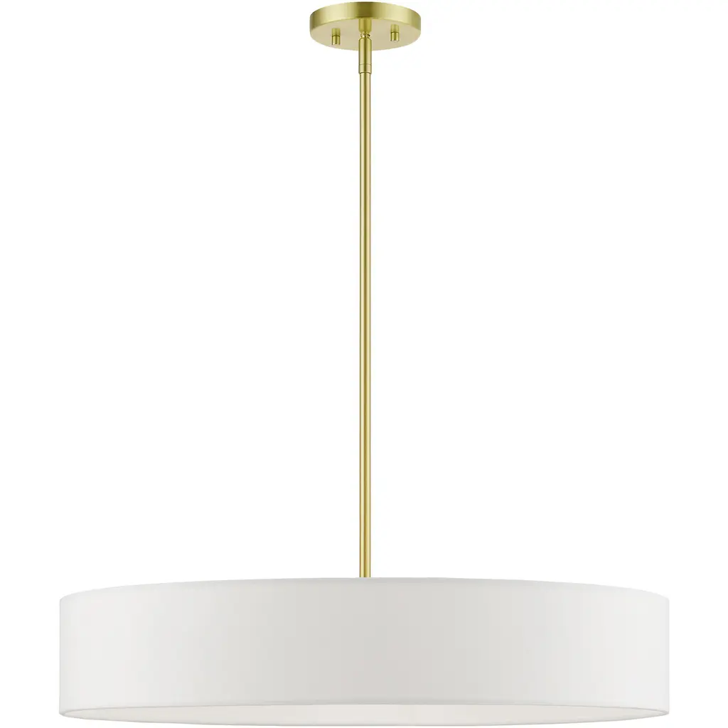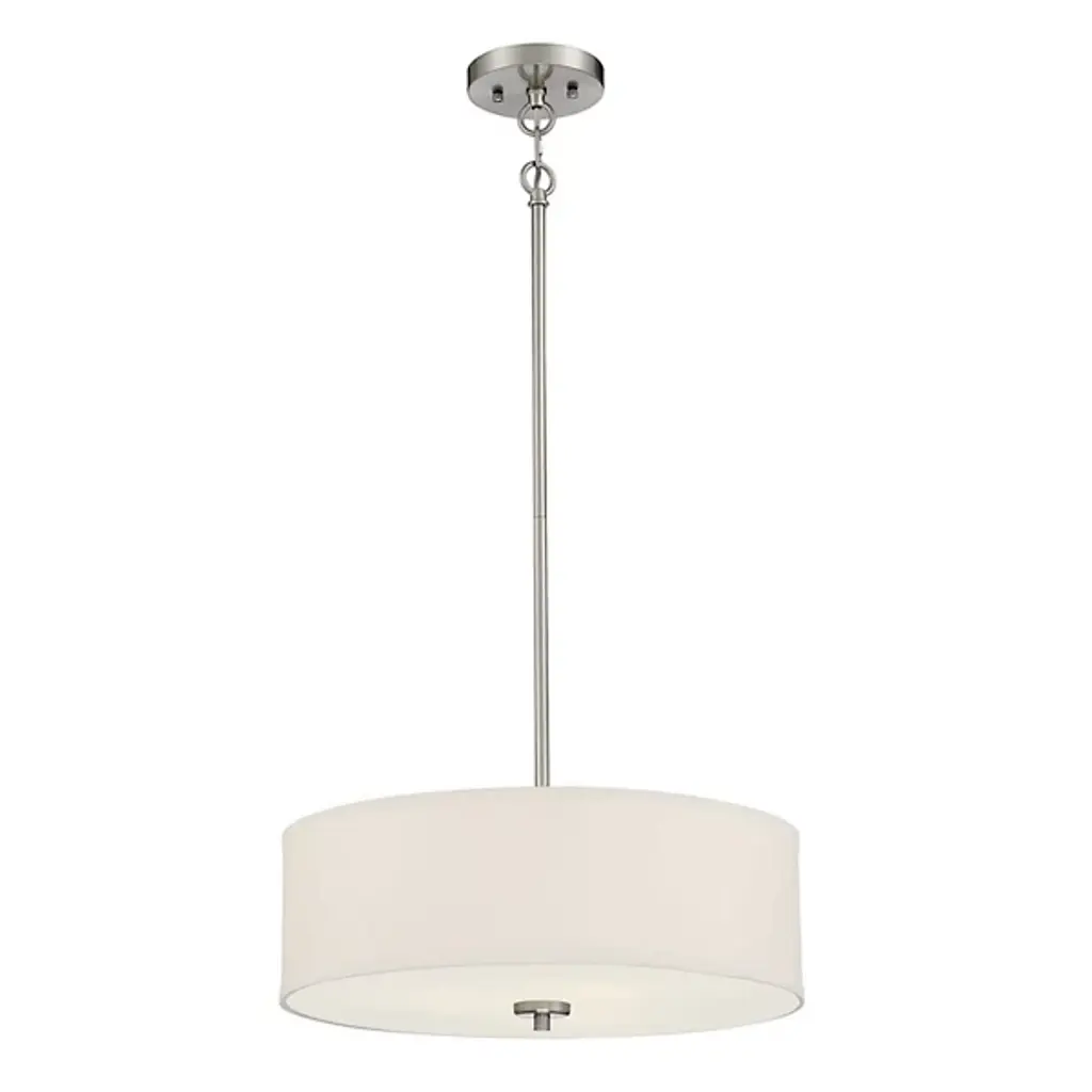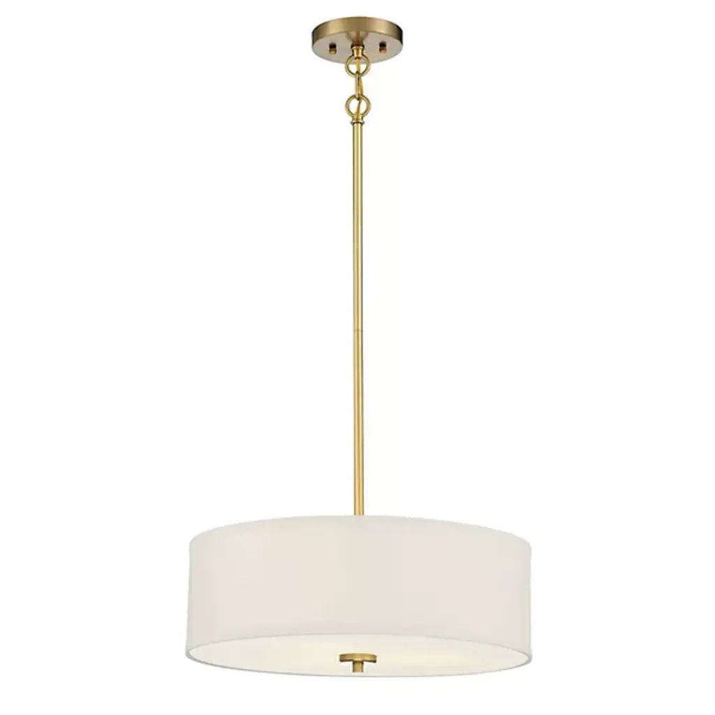 Light, refined, graceful. Heighten the sophisticated feel of your rooms with the Journey Drum Pendant from Alder & Ore. It's a piece that's soft on the eyes, going for a no-frills, elegant approach. Over a dining table or kitchen island, this piece beams down from the ceiling with a sleek metal downrod suspension. A fabric drum shade fills out space below in a soft, milky hue. Bulbs nestled inside turn on to wash the shade with a warm hue that exits as a spacious glow.