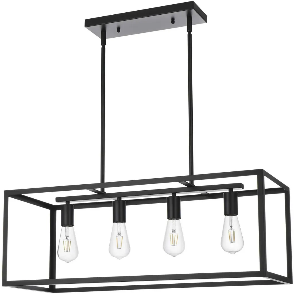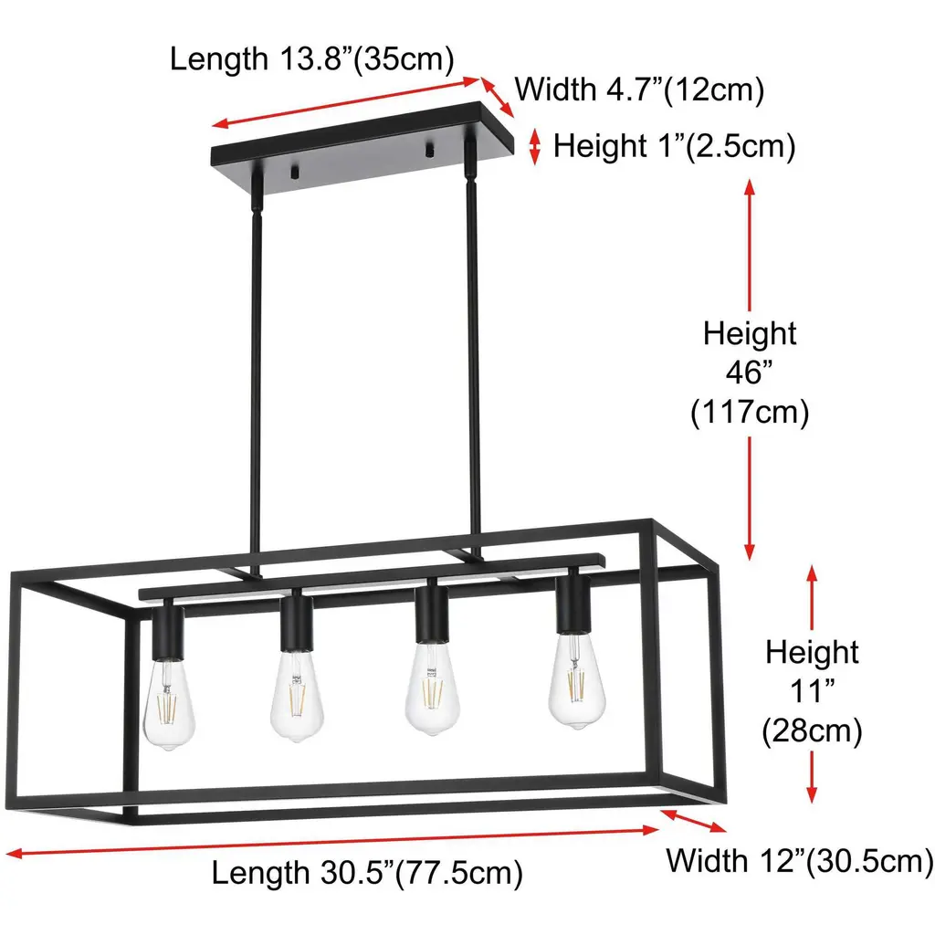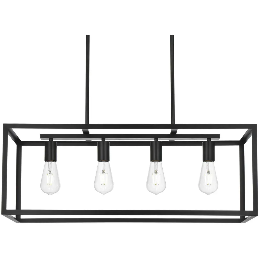 Transform your space with this bold and modern industrial pendant light. Its black iron frame, crafted into a striking rectangular design, serves as both a light fixture and a statement piece for your room. Featuring four medium-base sockets, this pendant delivers brilliant, even lighting, ideal for gathering spaces like dining rooms or kitchen islands. Adjustable rods let you customize the hanging height from 20" to 59", ensuring a perfect fit for your room's layout and style. Dimmable functionality offers the flexibility to shift from vibrant task lighting to a softer, more inviting glow. With a maximum wattage of 160W, this fixture is ready to light up any space efficiently, while allowing you to add your personal touch by choosing the bulbs that best suit your style. Built from durable iron, this pendant light is as robust as it is visually striking, making it a perfect centerpiece for your home.