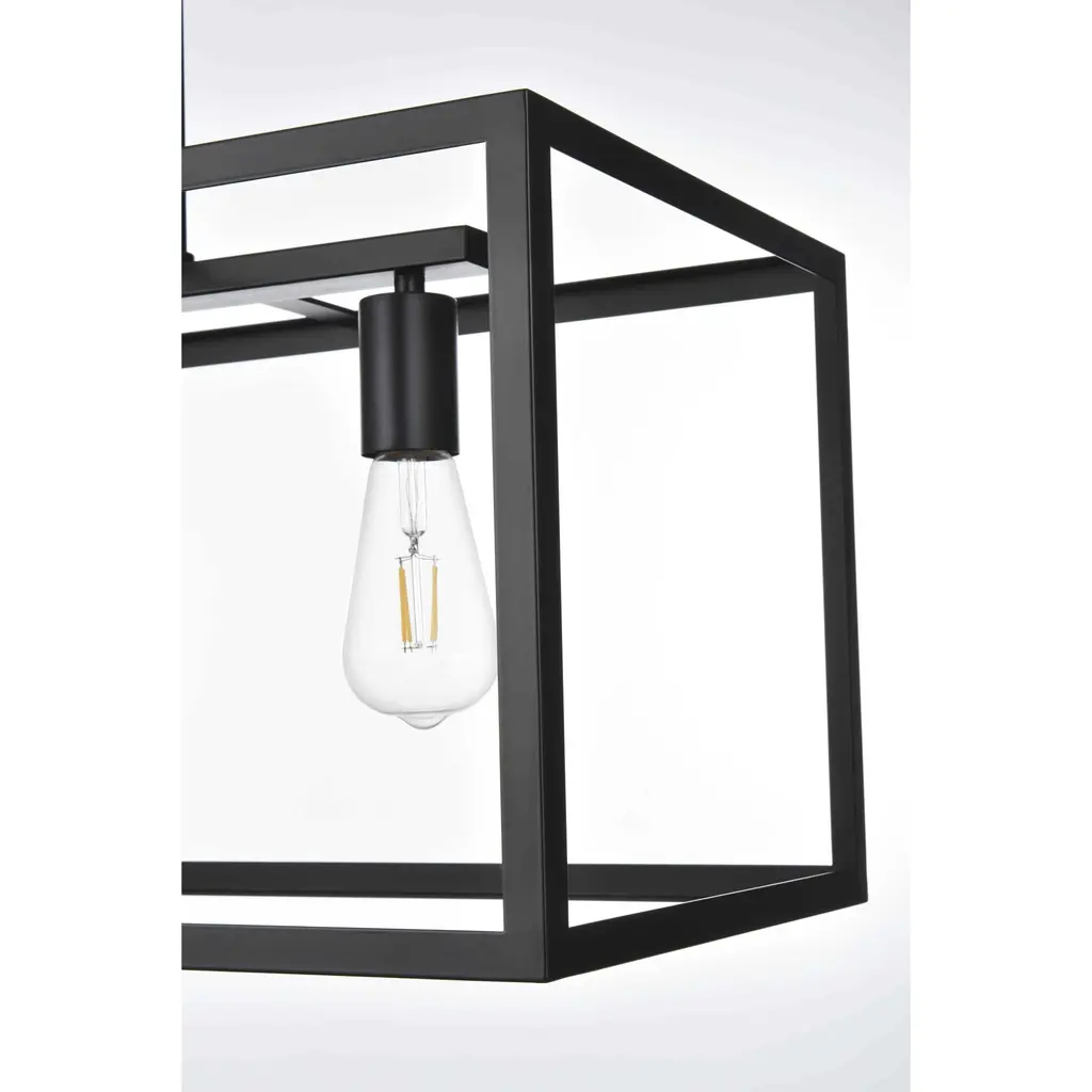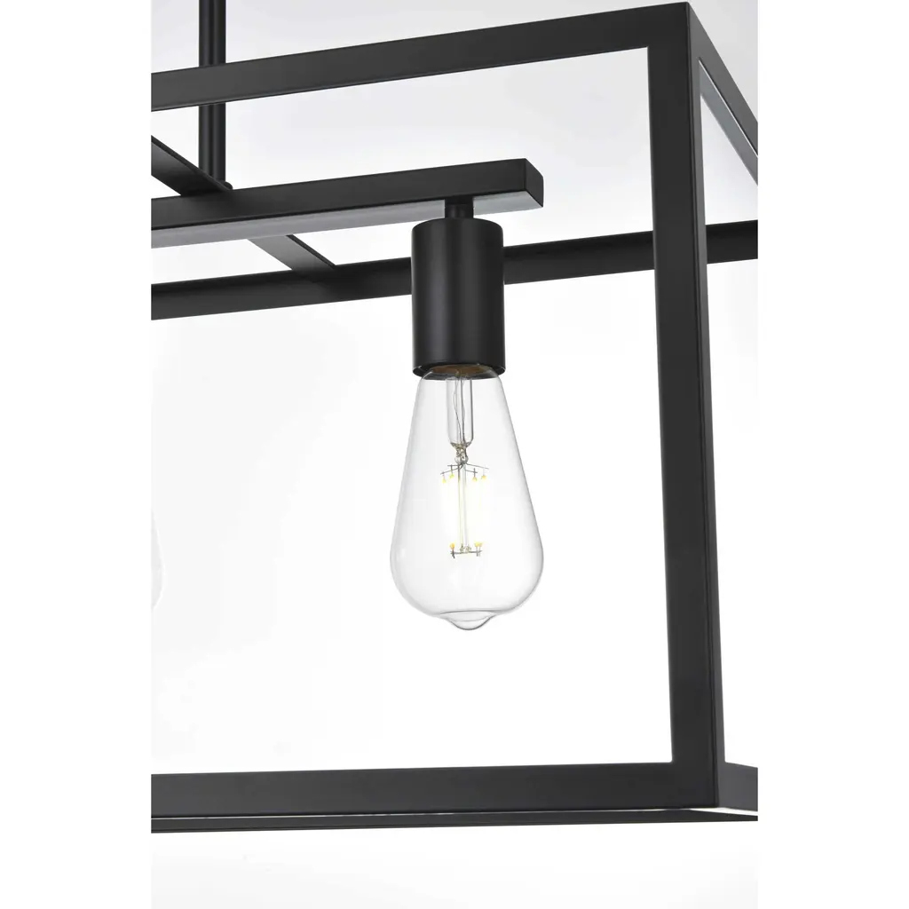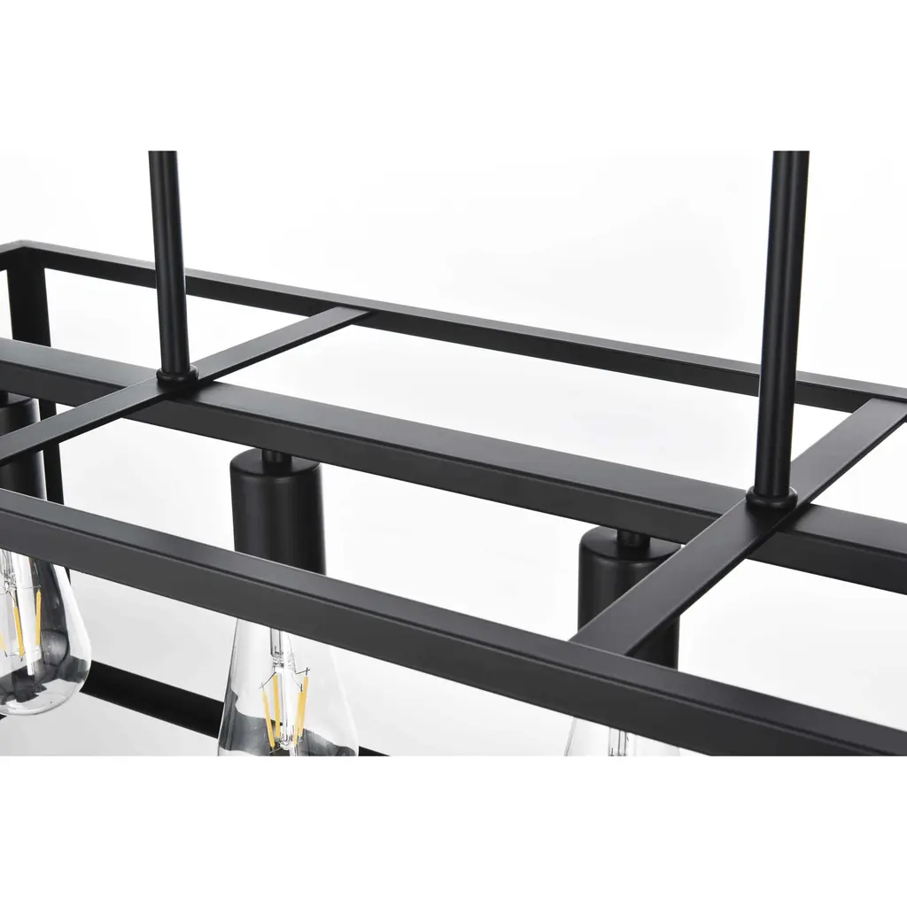 Transform your space with this bold and modern industrial pendant light. Its black iron frame, crafted into a striking rectangular design, serves as both a light fixture and a statement piece for your room. Featuring four medium-base sockets, this pendant delivers brilliant, even lighting, ideal for gathering spaces like dining rooms or kitchen islands. Adjustable rods let you customize the hanging height from 20" to 59", ensuring a perfect fit for your room's layout and style. Dimmable functionality offers the flexibility to shift from vibrant task lighting to a softer, more inviting glow. With a maximum wattage of 160W, this fixture is ready to light up any space efficiently, while allowing you to add your personal touch by choosing the bulbs that best suit your style. Built from durable iron, this pendant light is as robust as it is visually striking, making it a perfect centerpiece for your home.