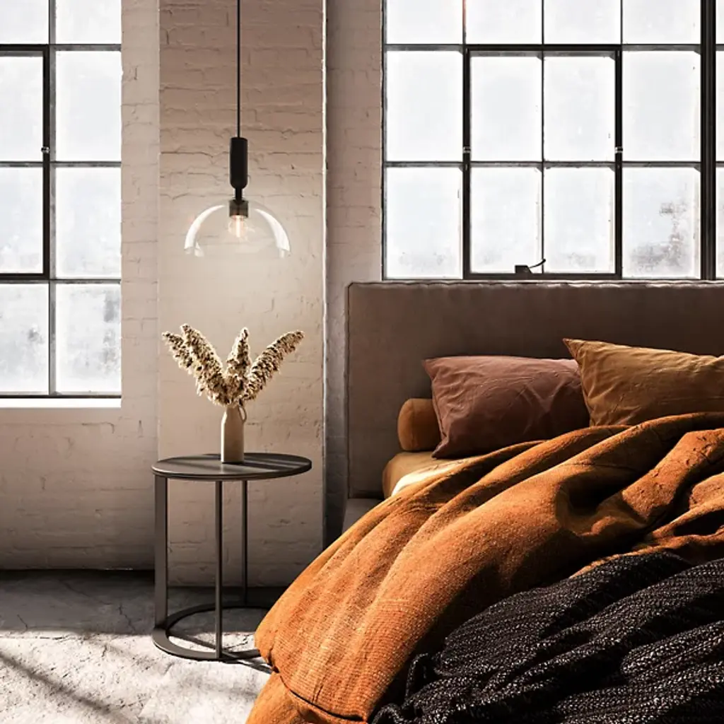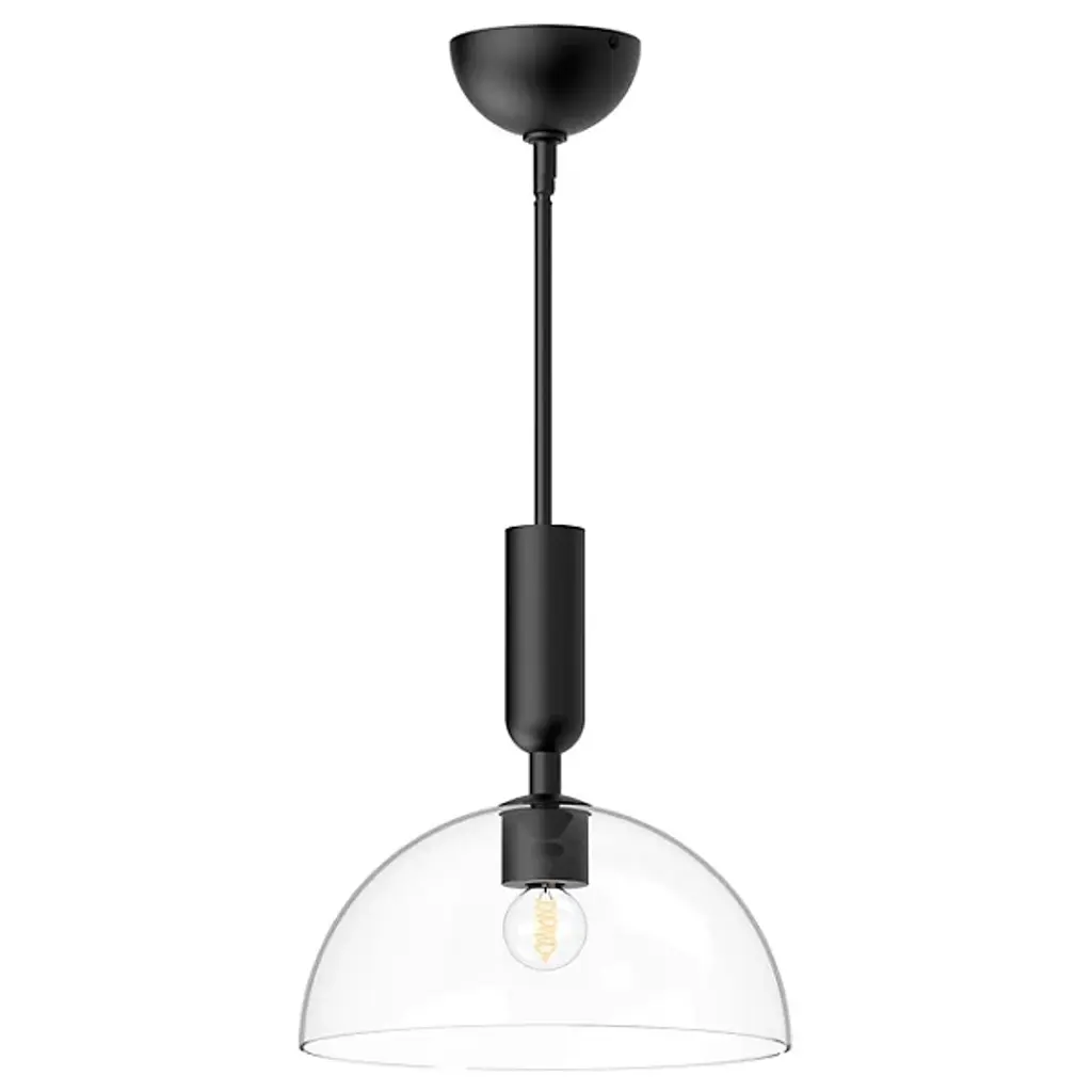 Add prominent appeal to indoor spaces with the Jude Pendant from Alora Mood. An engaging, sculptural design with a mix of modern construction and transitional notes, it uses a dome canopy and slender downrod to suspend a contoured housing for a single downward-oriented socket that blazes out below. A clear glass dome shade sweeps out and around the lamping, providing a sense of structural continuity with the canopy mount while gentling glare to the sides.