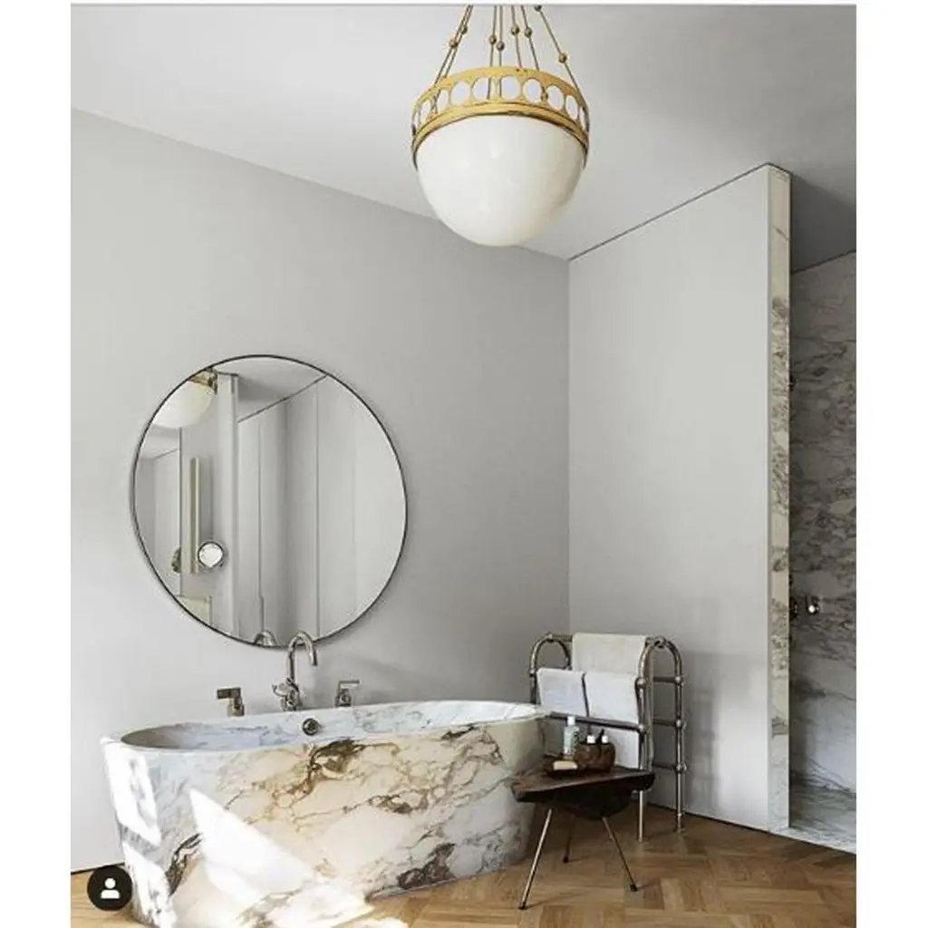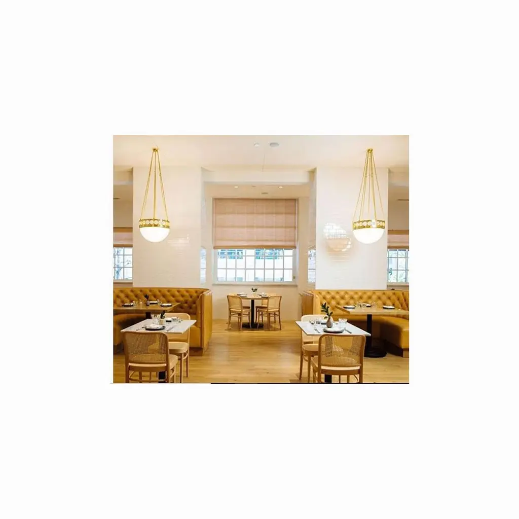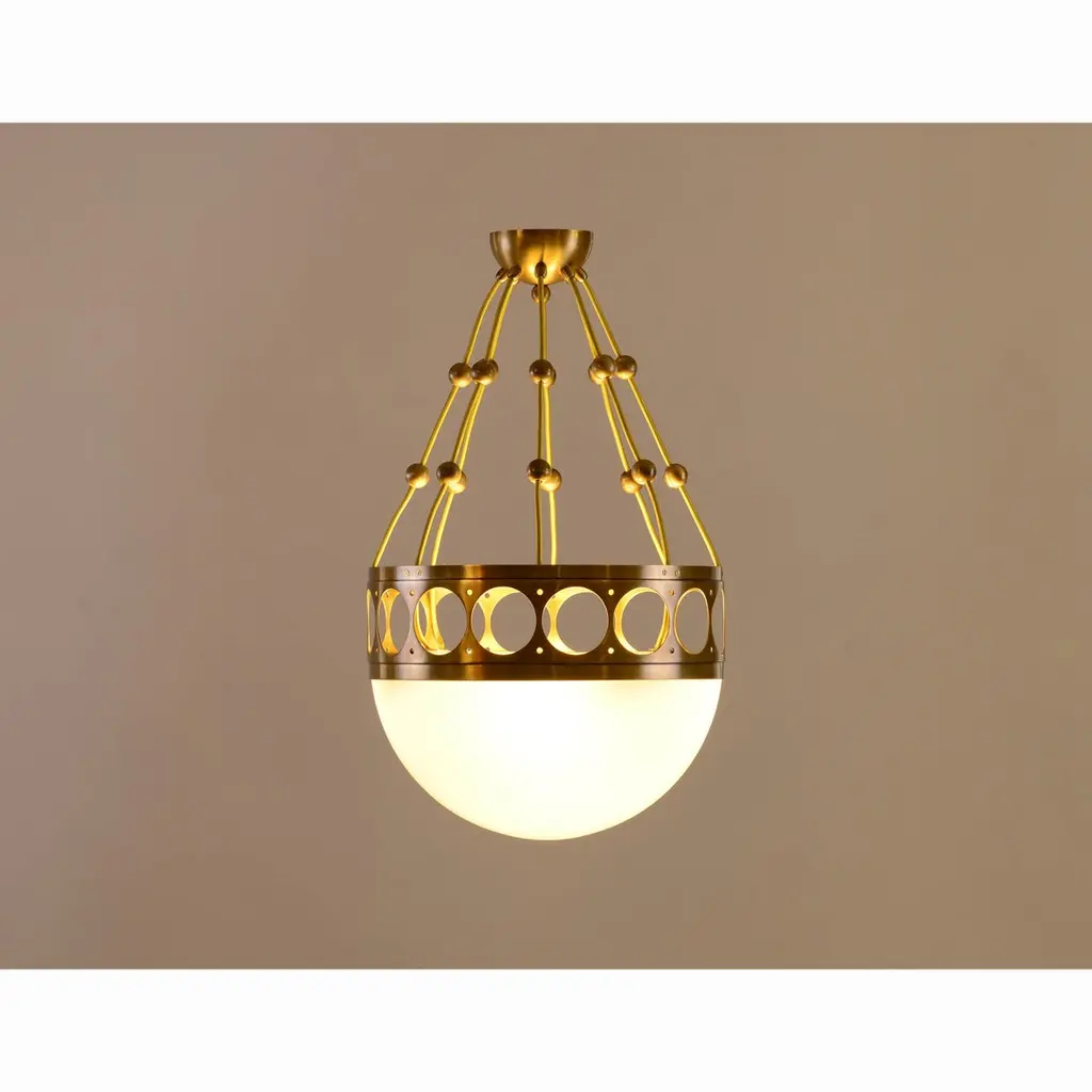 Beautiful Woka ceiling lamp, also available with a 50 cm diameter radius - total drop is custom-made. Materials used are brass and opaline glass. Available in different finishes. Length: custom-made All components according to the UL regulations, with an additional charge we will UL-list and label our fixtures.