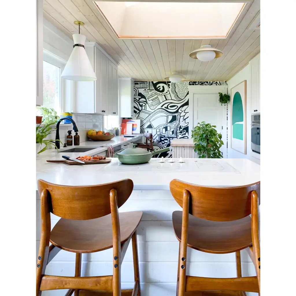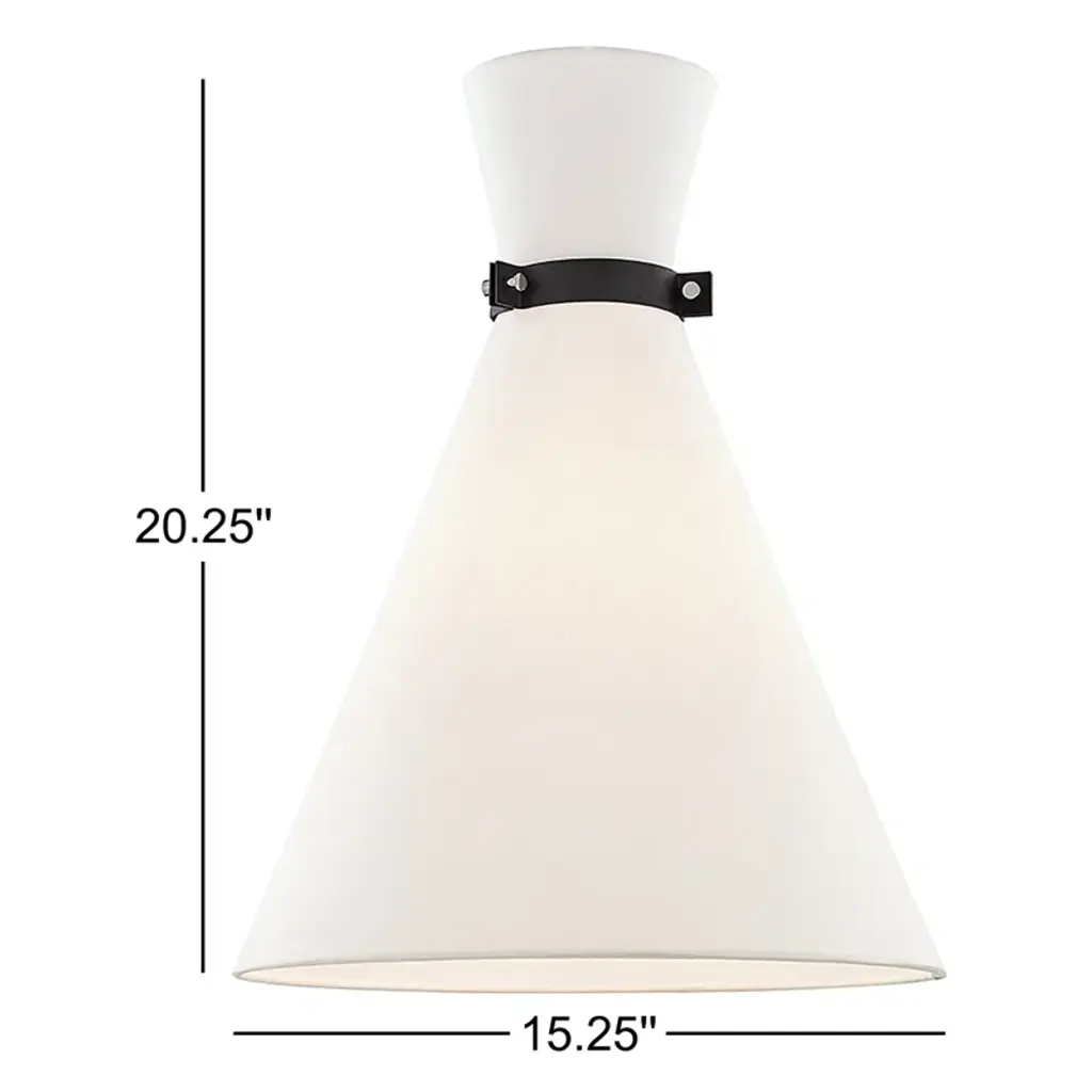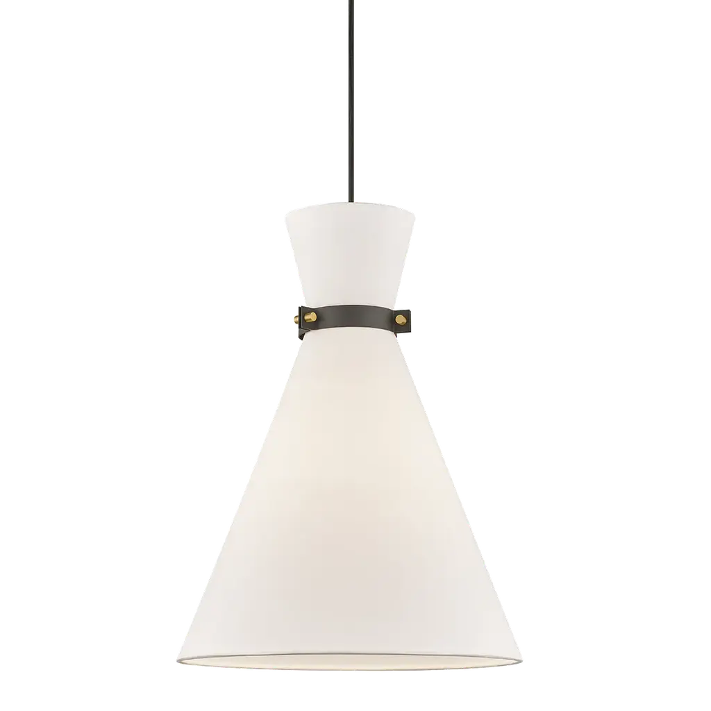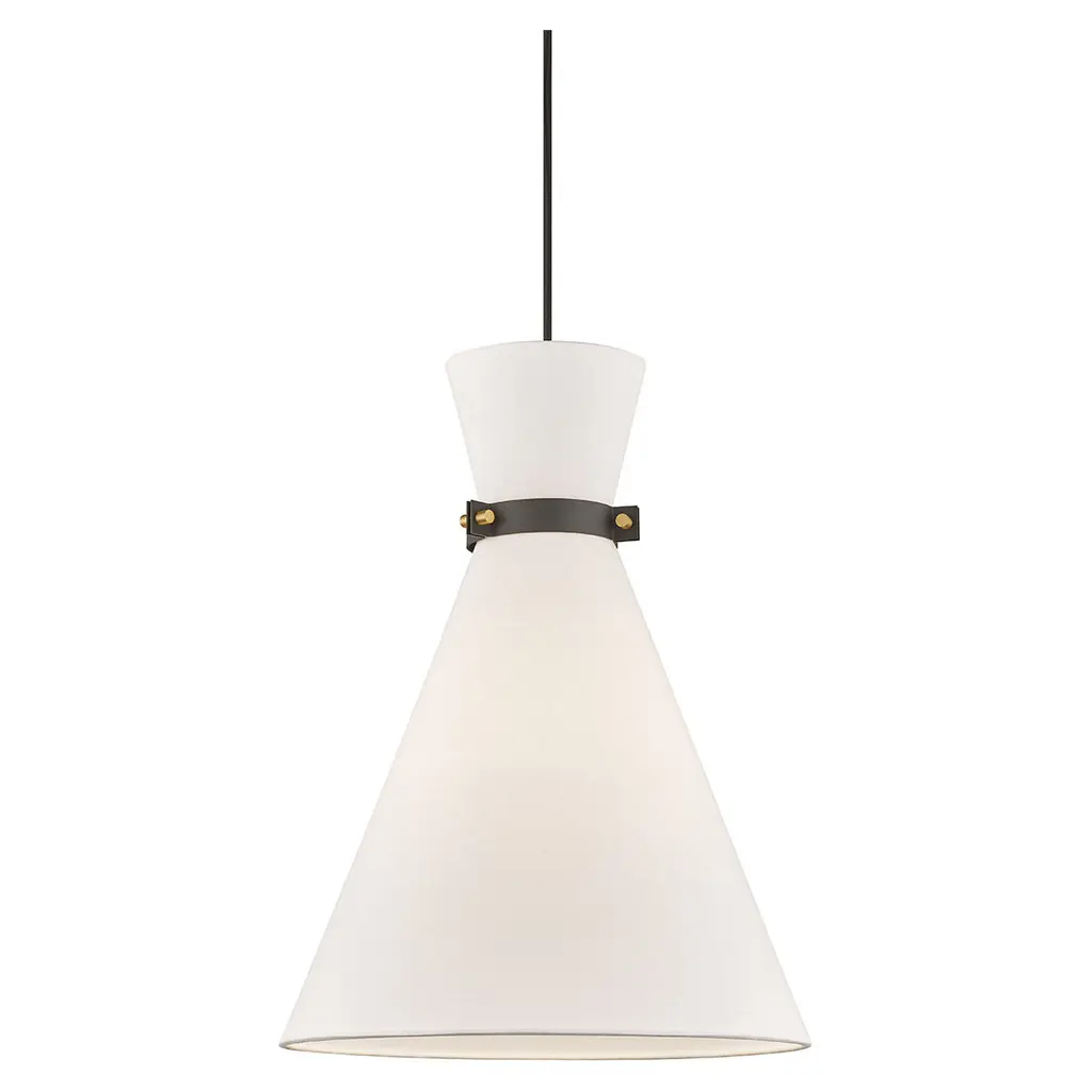Along its midcentury-modern shade of linen, Julia clasps a cuff of contrasting metals like a single statement piece of jewelry.