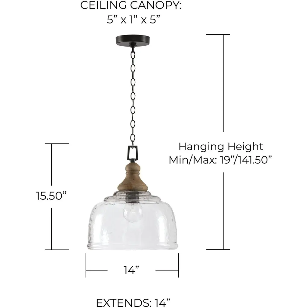 Create a space awash in sunny, coastal style with this dome glass pendant. A finial sculpted of mango wood is hand finished in Grey Wash. The lamp is housed in a gorgeous, thick-rimmed Rippled Glass shade. Brimming with seaside vibes and rustic charm, this fixture is perfect as a dining room pendant, or to illuminate the kitchen island.