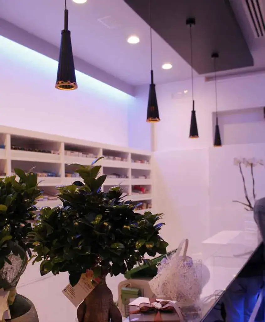 Metal finish: shiny gold - shiny chrome - grey painted.Colours: Julienne clear: central body, arms and final cup with bobeche in colour amethyst.Julienne fumè: central body, arms and final cup with bobeche in colour fumè.Julienne mirror: central body, arms and final cup with bobeche in colour amethyst.Julienne amber: central body, arms and final cup with bobeche and cups in amber colours.Julienne red & gold: central body, arms, cup and bobeche are in matt red color.Julienne black & gold: central body, arms, cup and bobeche are in matt black color.Other colours on request.Particular: central body, arms and cup made in Veneto.Cups made in Tuscany.Pendants and decorative elements handmade in 24K gold finish embellished with Swarovski® crystals.