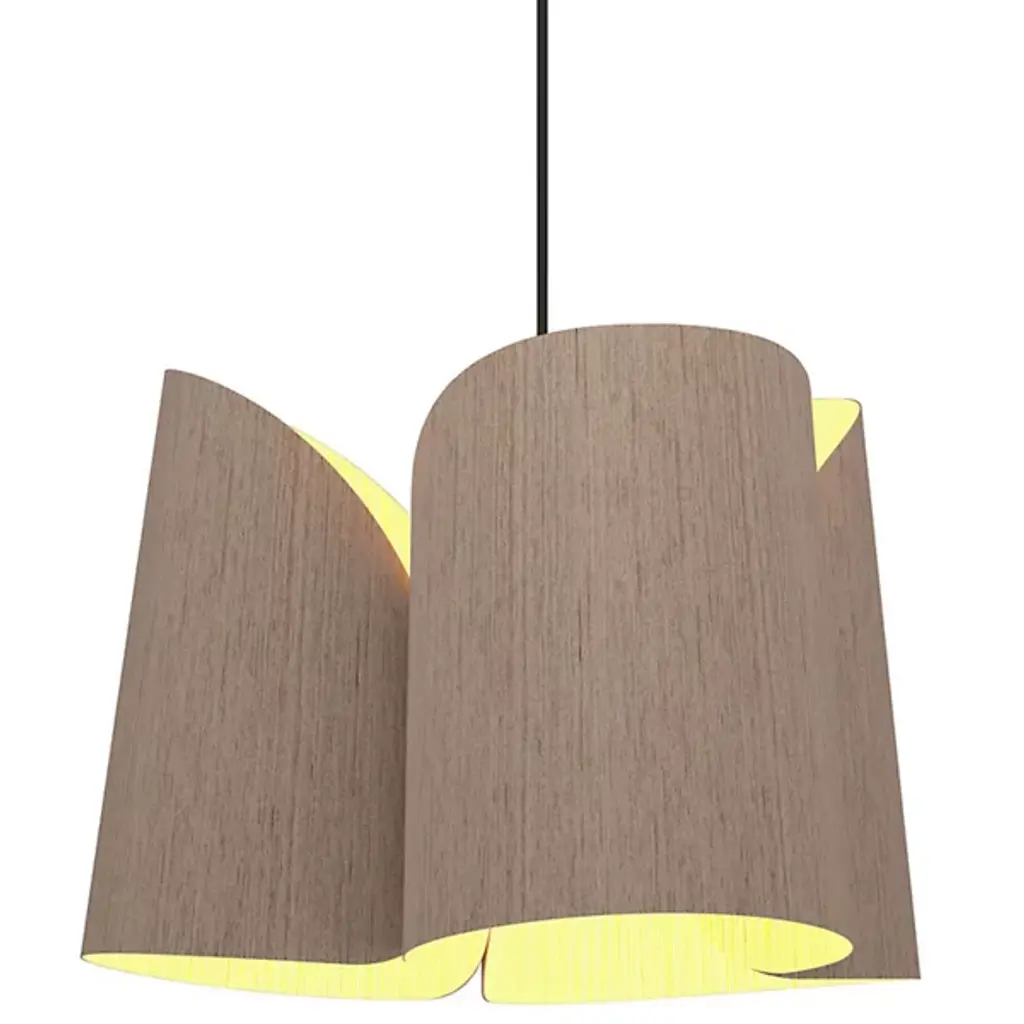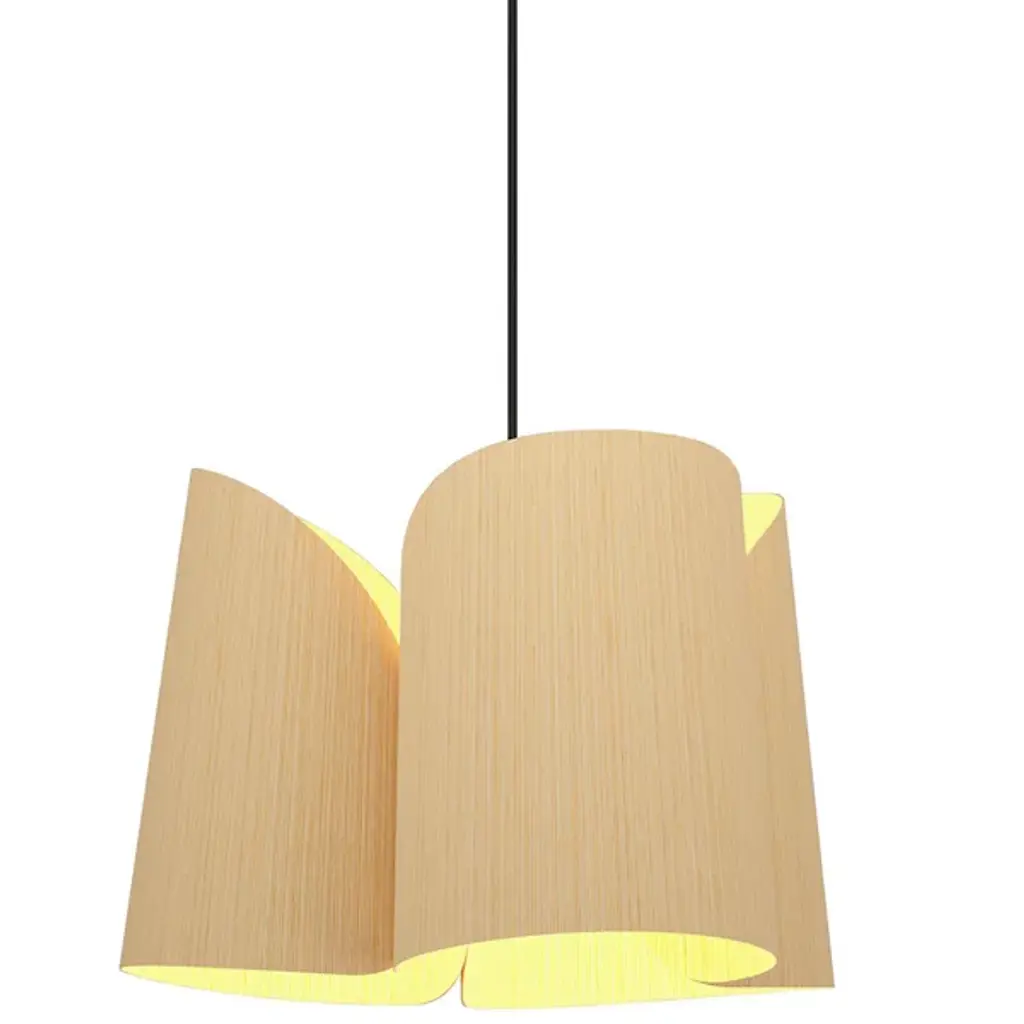 Natural modern lighting you’ll be happy to bring into the fold, the Julieta Pendant by Bruck Lighting may appear as a single solid piece from certain angles, but it is actually made from three curved panels of flexible yet strong Reconstructed Wood Veneer. The translucent finish highlights the natural grain of the wood and coordinates beautifully with any surrounding décor. Part of the Wood Ecological Project (WEP), the pendant’s fluid shape and use of natural materials reflect an inspiration drawn from diverse ecological landscapes.