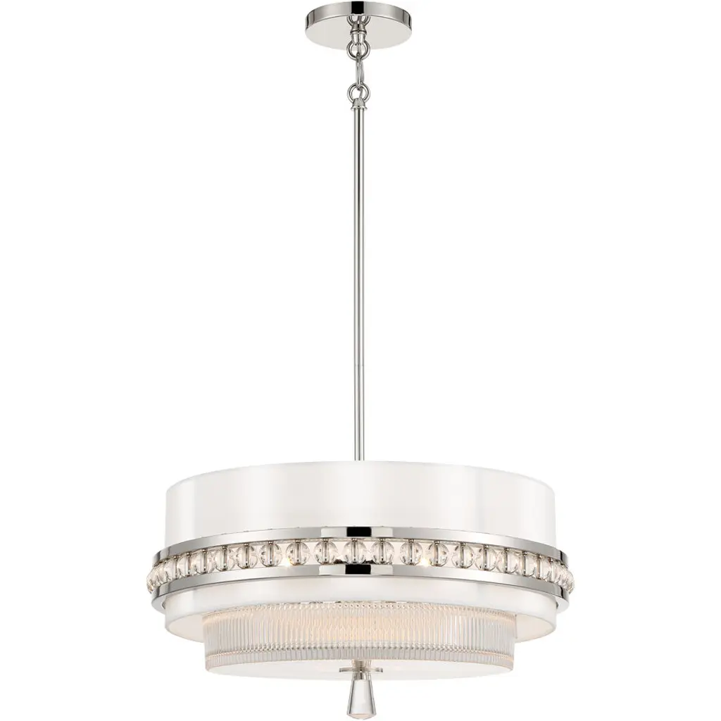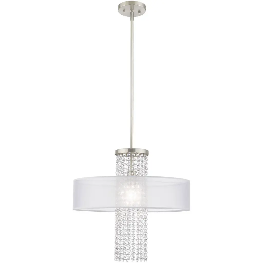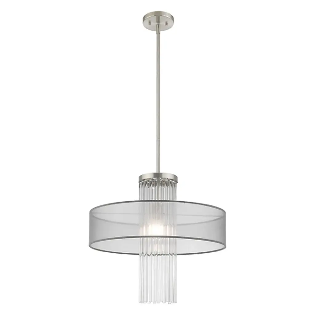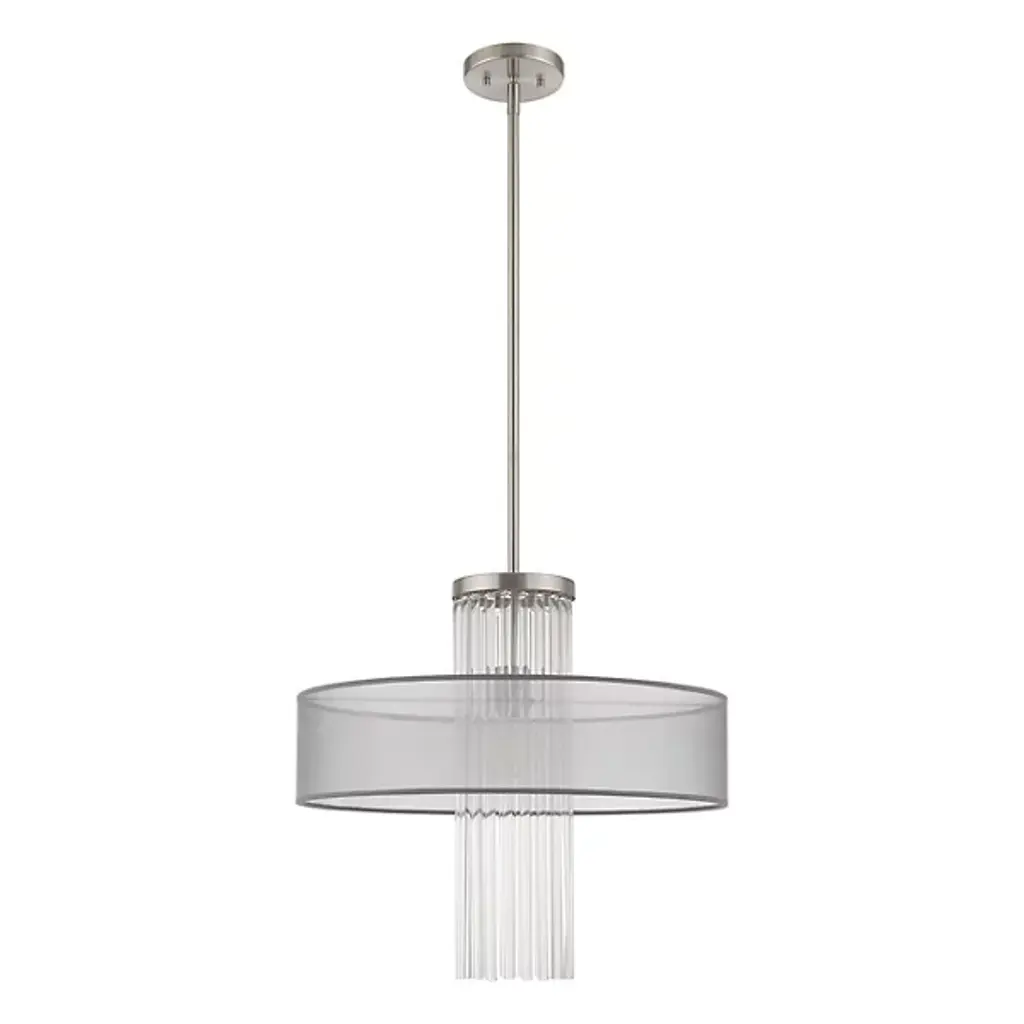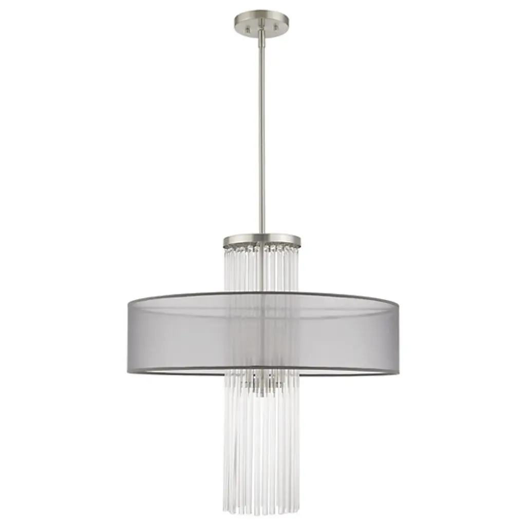 The Junior Pendant by Alder & Ore is an elegant, contemporary design with a dazzling presence. Supported by a sleek, single down rod, this design layers a beautiful collection of K9 crystal rods within a handcrafted, translucent fabric shade. Light playfully reflects and refracts throughout the crystals, and the fabric shade adds a space for illumination to diffuse through as it lends a tailored touch to the look of this pendant.