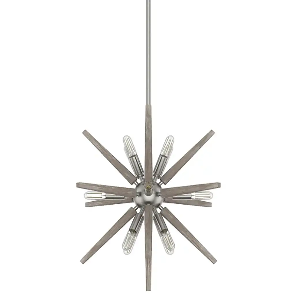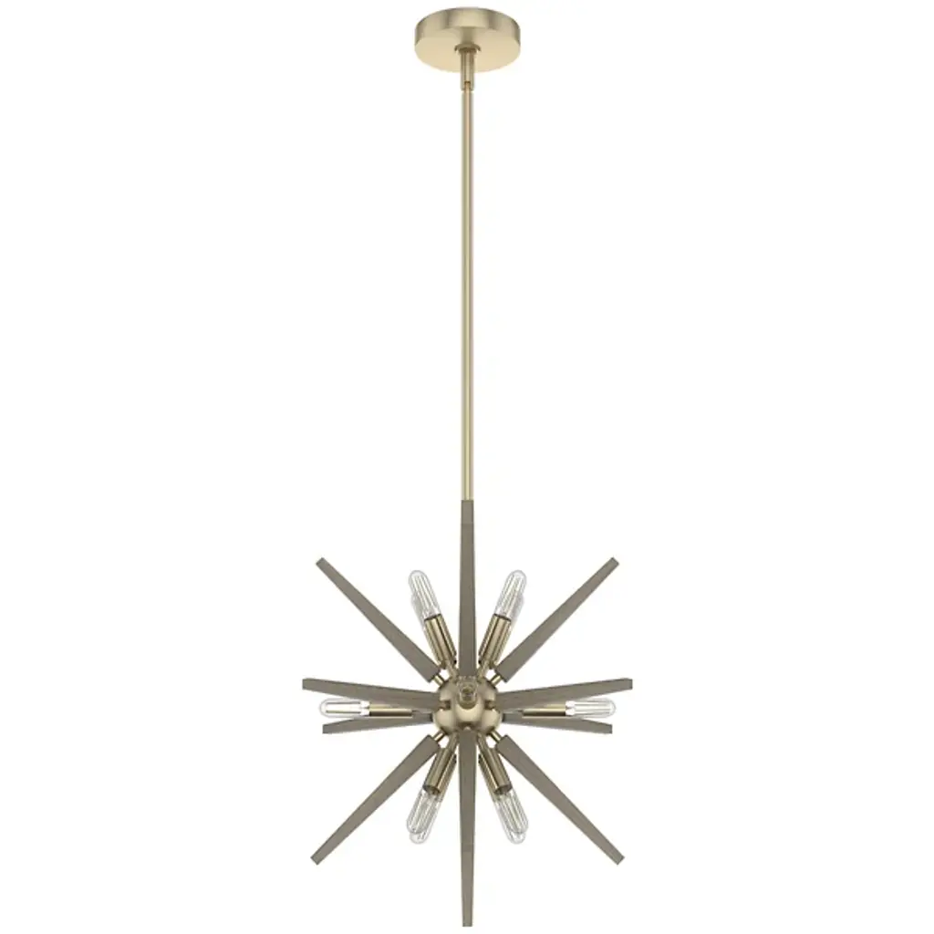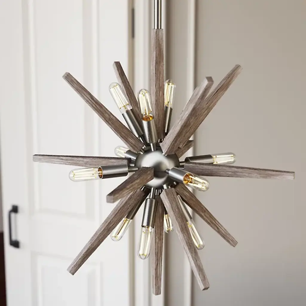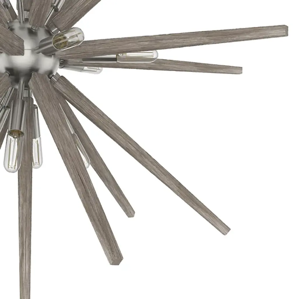 The Jupiter Star Pendant from Hunter Fans illuminates your distinctive style with ethereal radiance, displaying a striking, sputnik style. This striking starburst light seamlessly blends metal and wood-inspired elements, which pays homage to mid-century design while remaining a perfect complement to your ever-evolving style. Enhance the celestial beauty in your home by incorporating additional pieces from this collection, casting a cosmic glow that will leave a lasting impression.