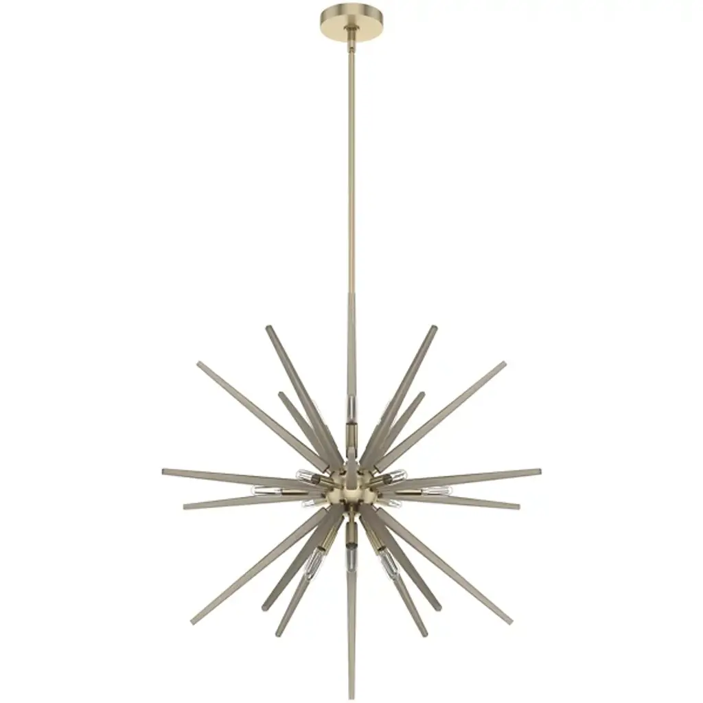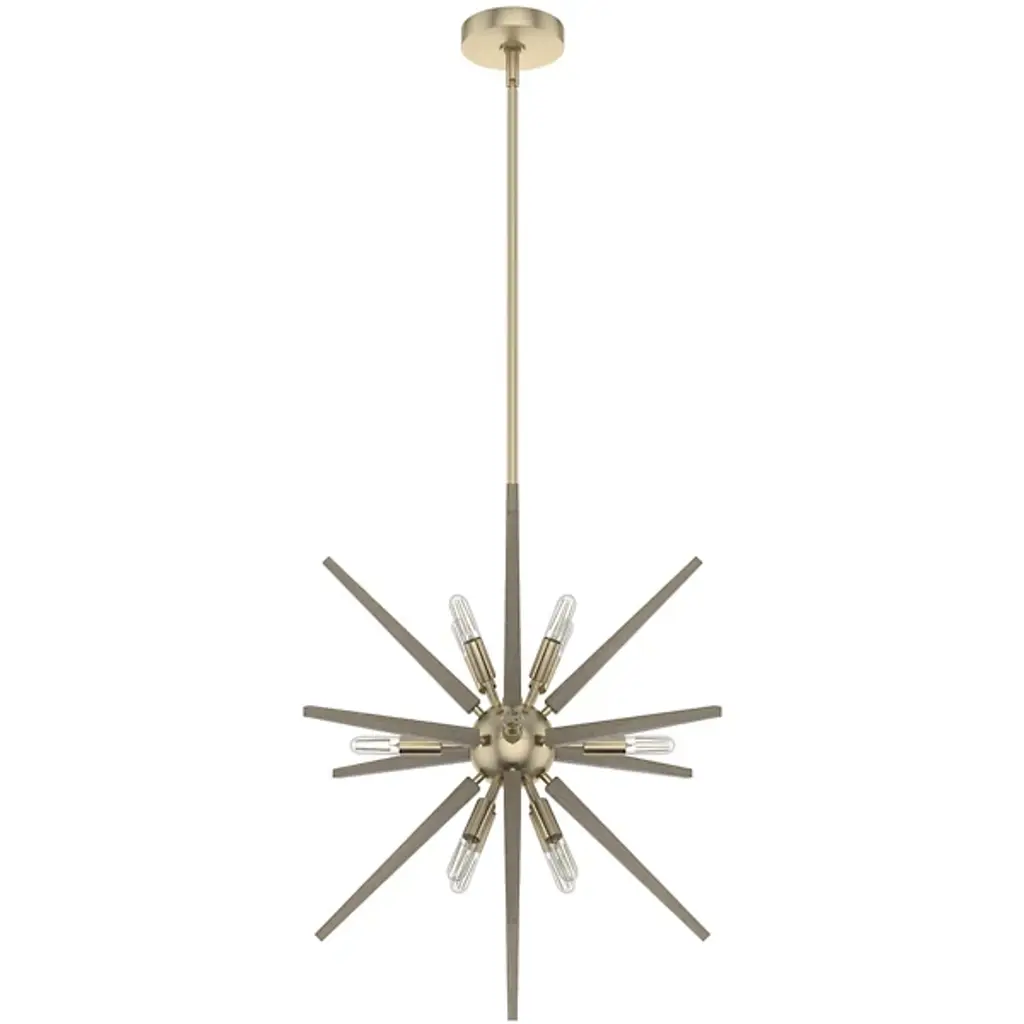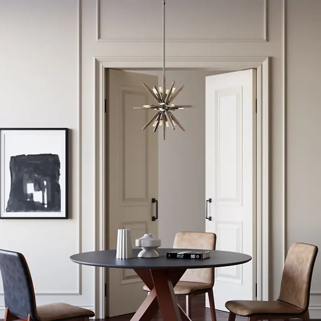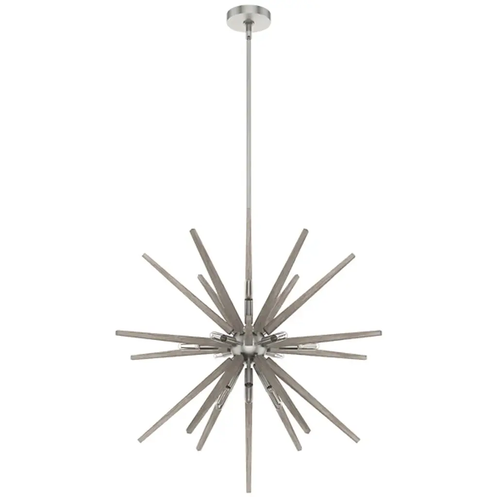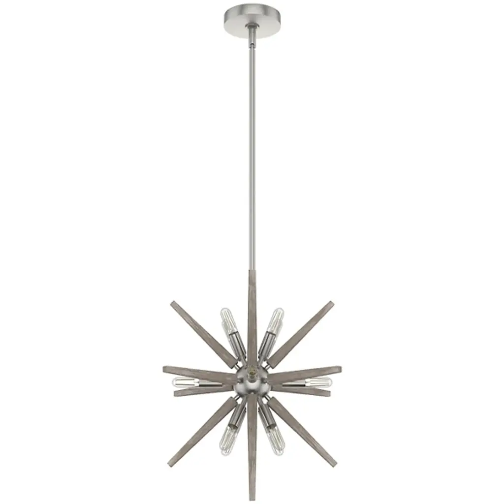The Jupiter Star Pendant from Hunter Fans illuminates your distinctive style with ethereal radiance, displaying a striking, sputnik style. This striking starburst light seamlessly blends metal and wood-inspired elements, which pays homage to mid-century design while remaining a perfect complement to your ever-evolving style. Enhance the celestial beauty in your home by incorporating additional pieces from this collection, casting a cosmic glow that will leave a lasting impression.