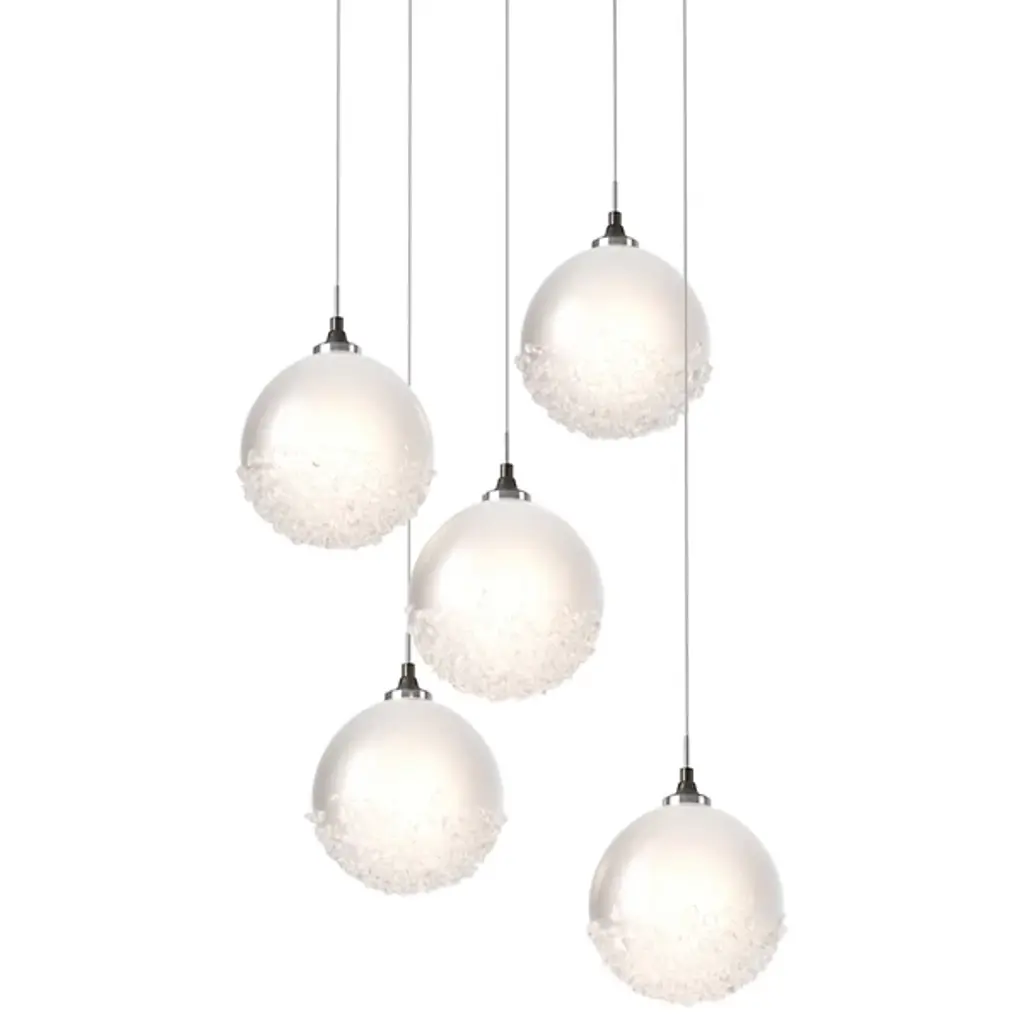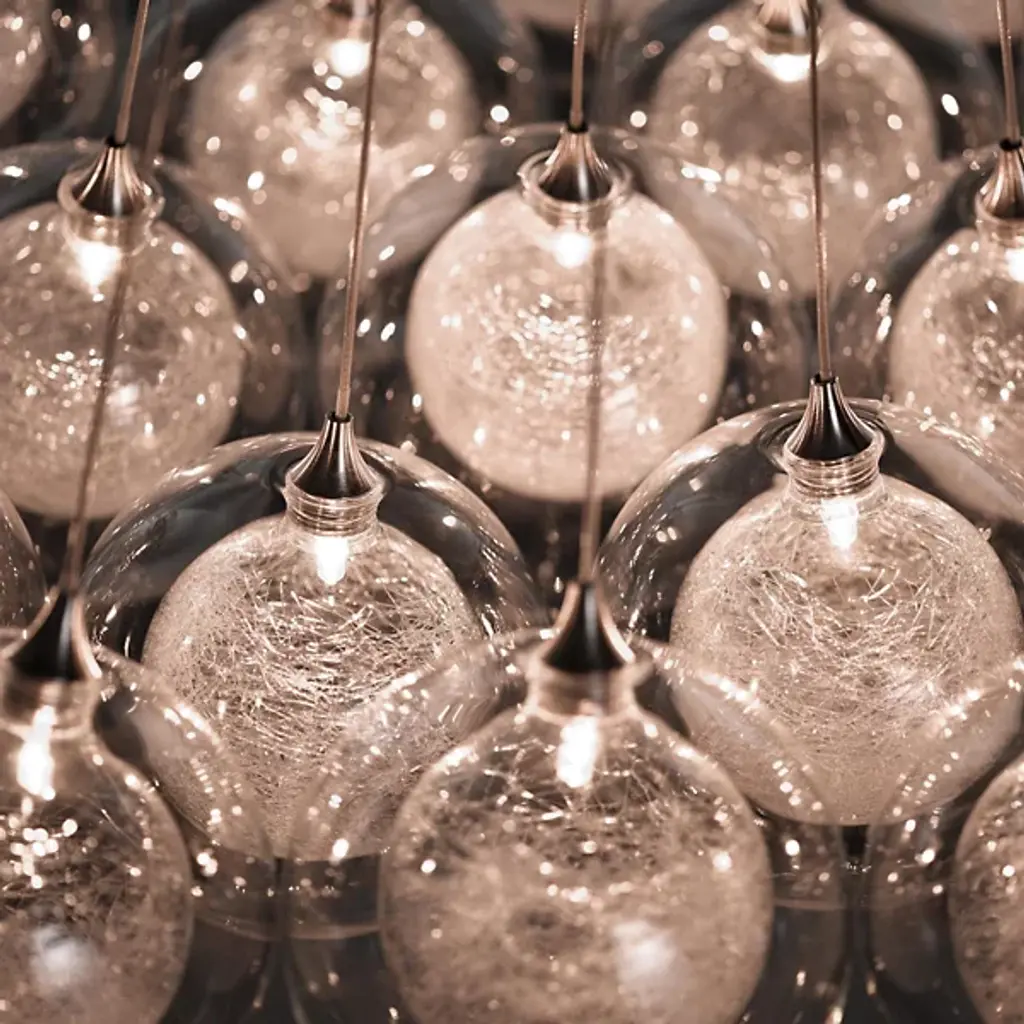 The Kadur Drizzle 17 Rectangular LED Multi-Light Pendant from Shakúff creates a cozy ambiance with a warm, texture-wrapped light. The pendant feels at home in the modern or contemporary space. An ultra-fine cord makes the piece a graceful addition on its own or as a series. The outer glass globe draws a clean silhouette, one charming with its shiny notes. The globe inside showcases the beauty of glassmaking as drizzled fibers wrap around its surface. The fibers create a beautiful nest of warm light. The light exits softly through the layers of glass, creating an inspiring image and a comfortable ambient glow.