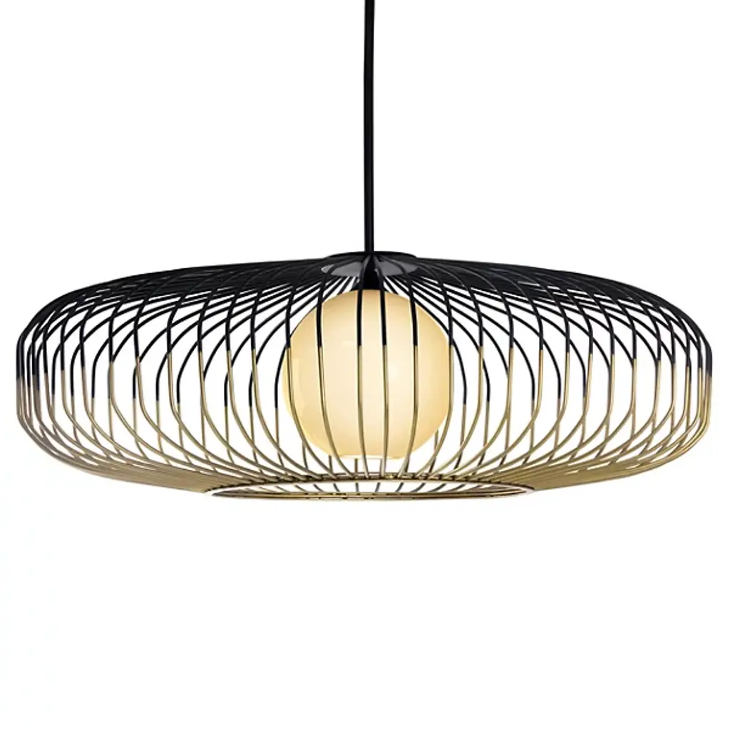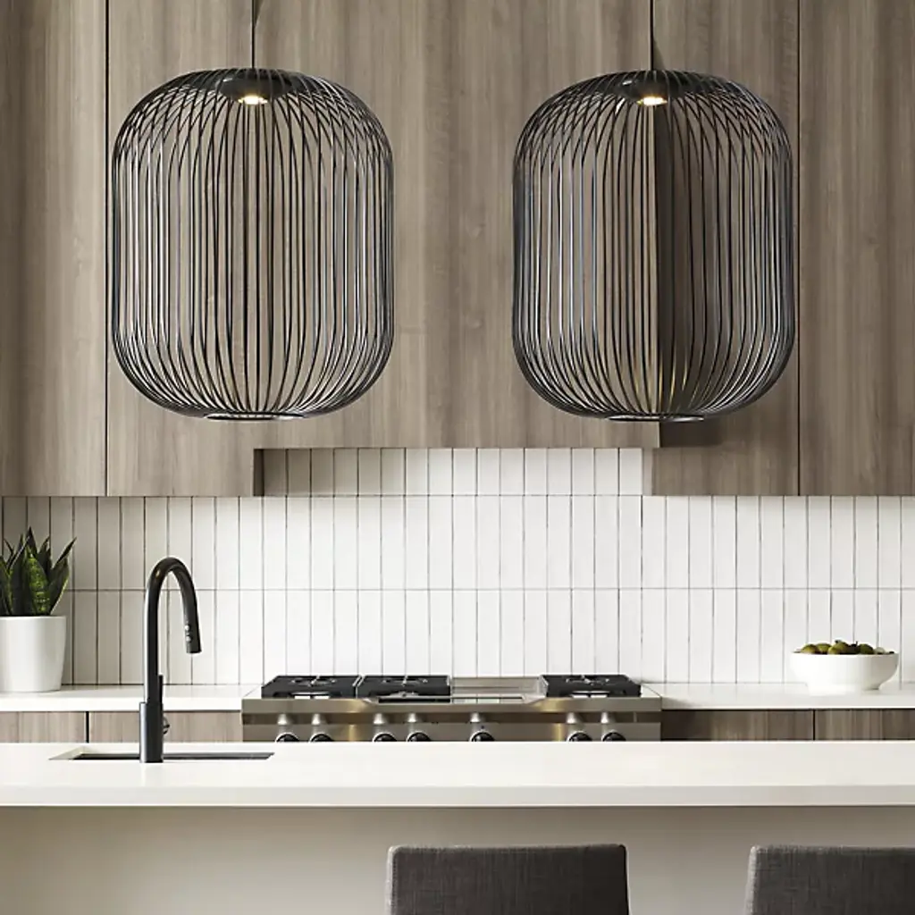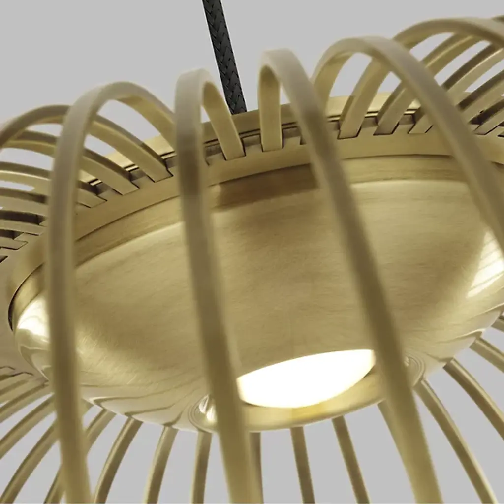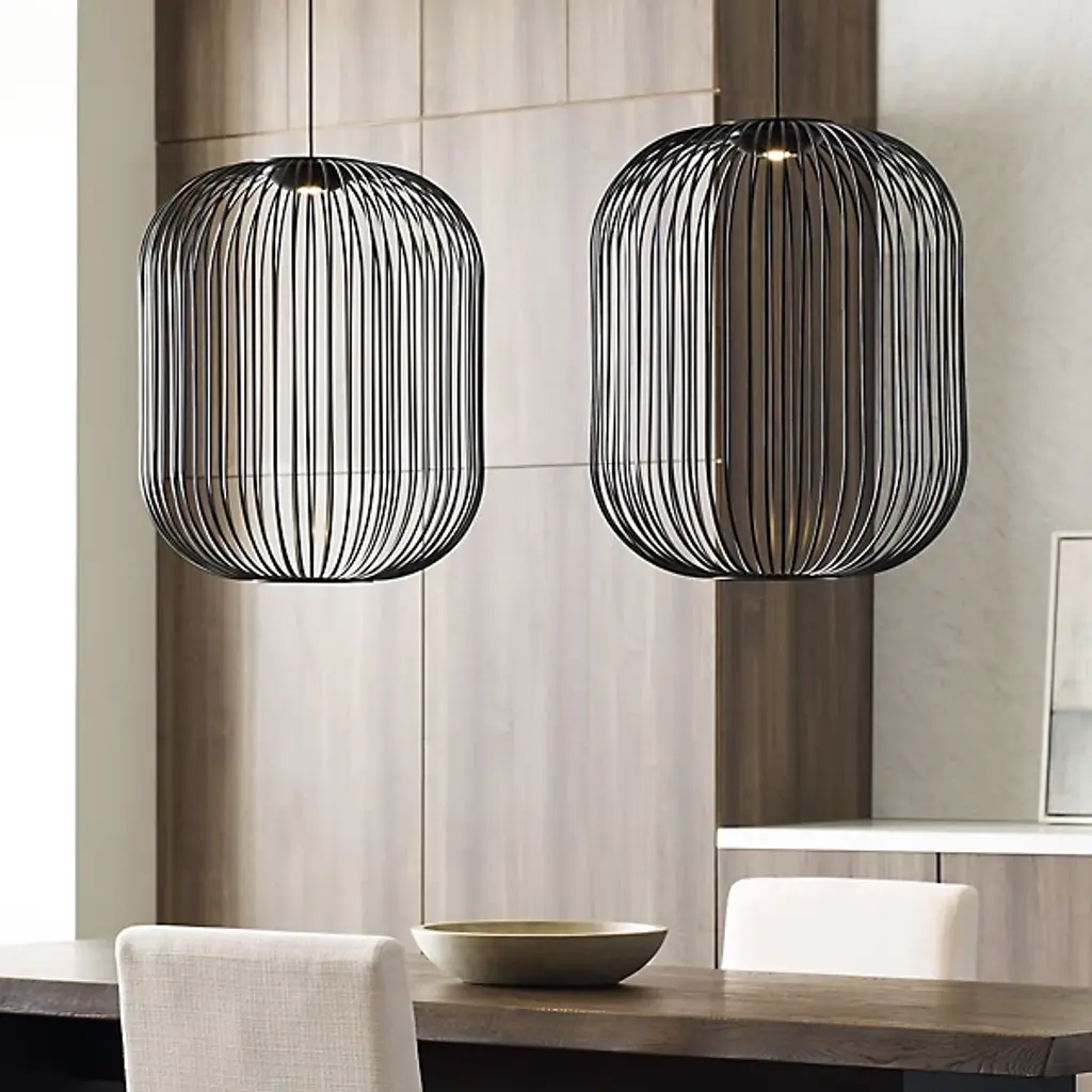 The Kai LED Pendant by Visual Comfort Modern, formerly known as Tech Lighting, was inspired by traditional Japanese lanterns. Simply suspended, the soft silhouette of this design is formed from gracefully curved metal rods that are evenly spaced to create an airy, balanced look. Within, an integrated, energy-efficient light is set near the top of this pendant to give it a voluminous look that leaves plenty of space for light to filter through, bringing a bright touch to its surroundings.