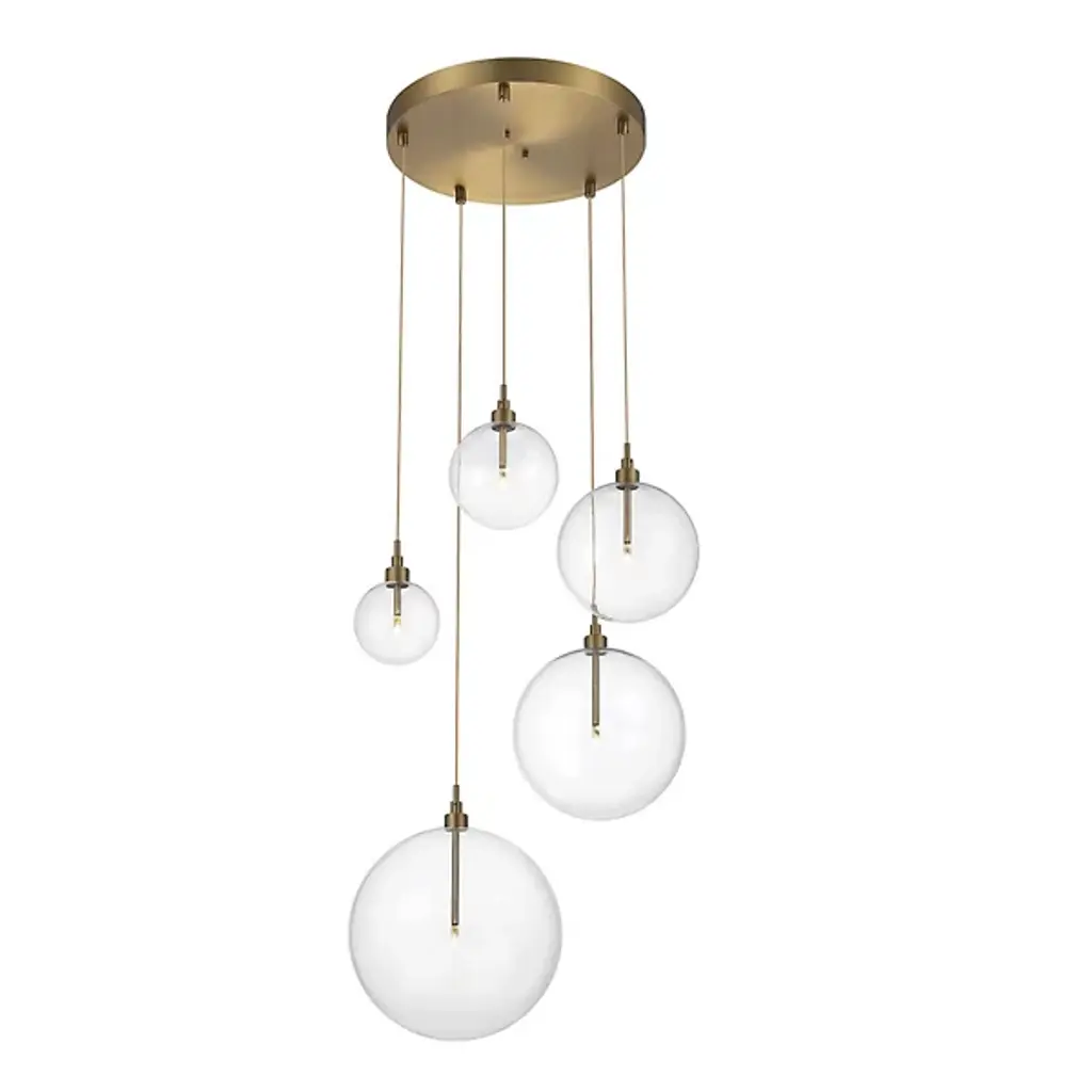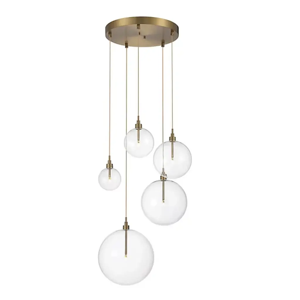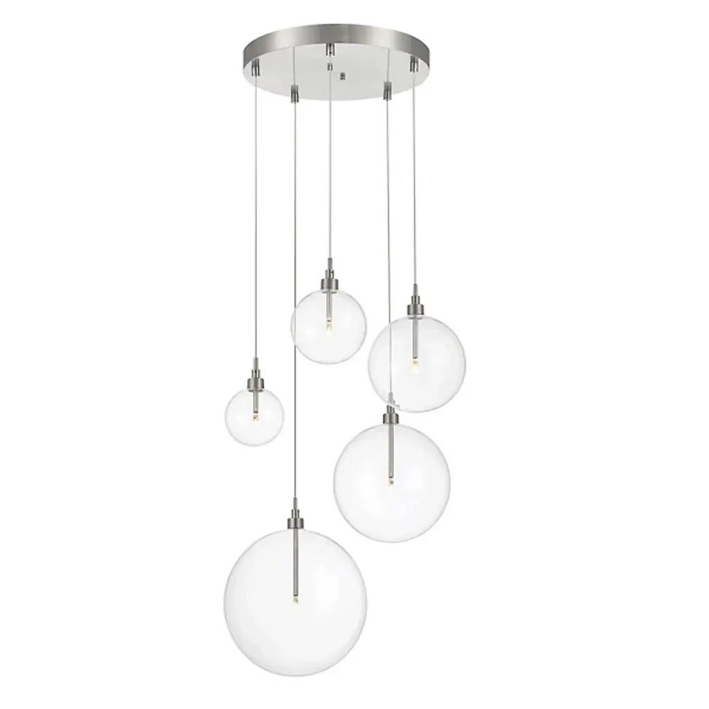 Just a touch of elegance. The Kaitlyn Multi-Light Pendant from Alder & Ore entices overhead as a composition of brief, understated elements. This piece finds a place on your ceiling easily, thanks to an ultra-compact canopy. Place the canopy in a tight nook or arrange it as a series over a table. The pendant drops down with cable so fine it gives the illusion of floating in the air. The eyes are drawn to the impossibly slim and sleek quality of the metal lamp holder. A clear glass orb covers the holder to deliver a charming silhouette and reflective touch. The pendant’s light creates a comfortable ambiance and bright accenting image.