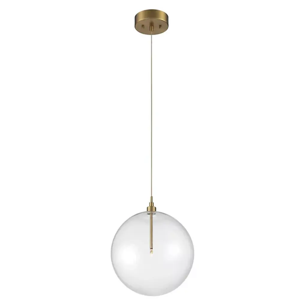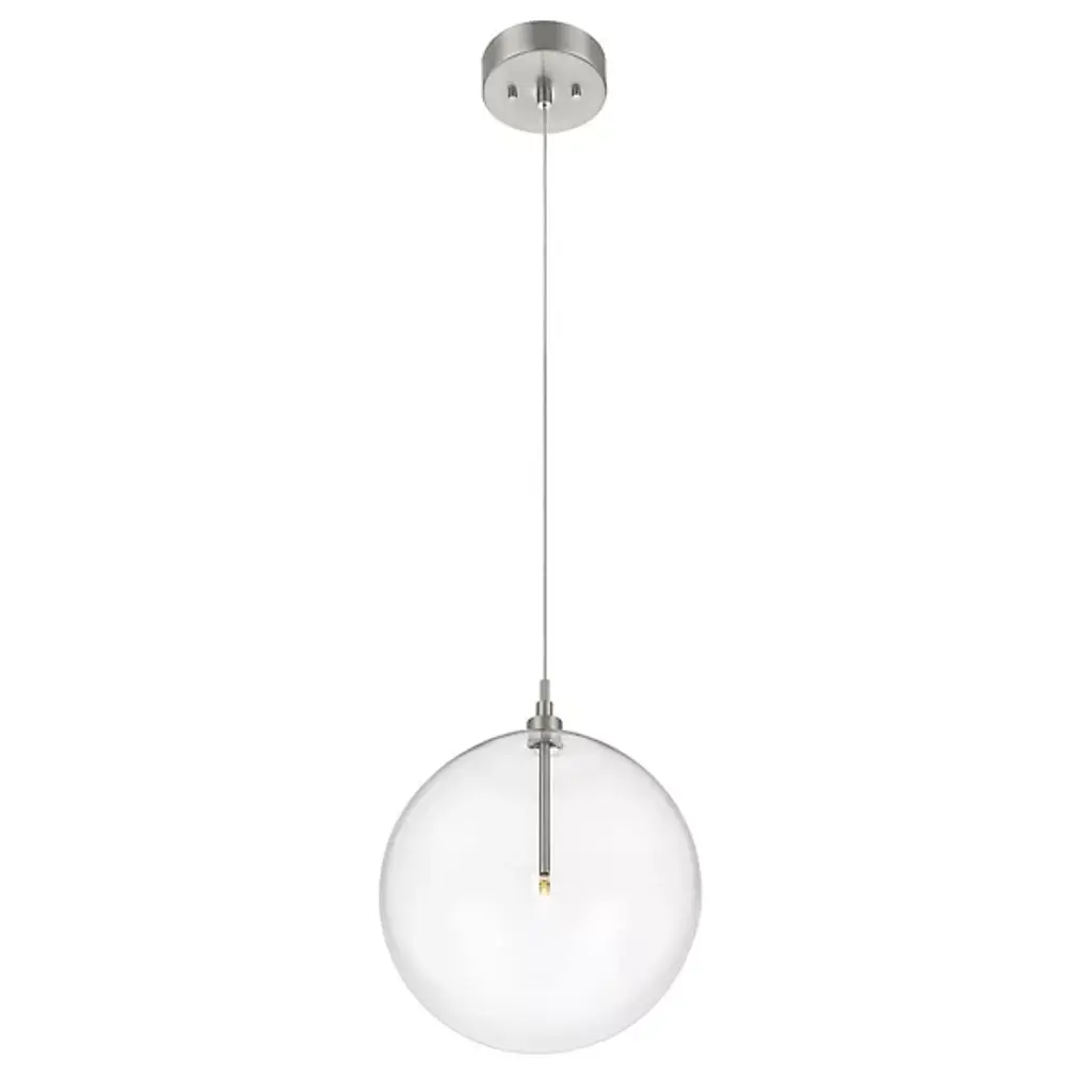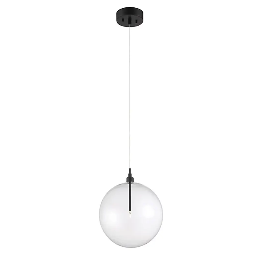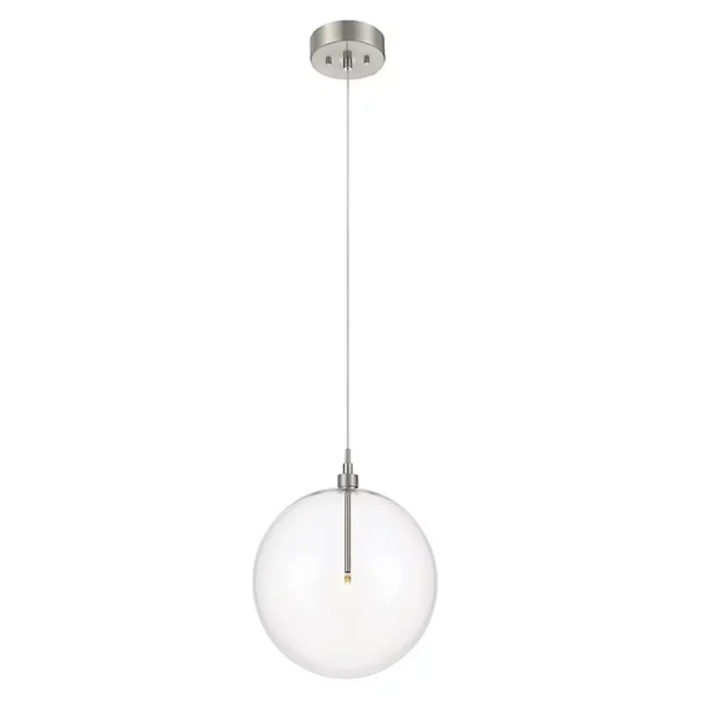The Kaitlyn Pendant by Alder & Ore is a clean, contemporary addition to rooms. Suspended from a round canopy by a single, slender cable, a minimal top is paired with a smooth, glass globe that a sleek stem and small light source are set within. Providing plenty of energy-efficient light to its surroundings, this simple design has a bright, airy feel that is at home in a wide range of spaces.