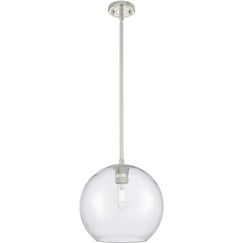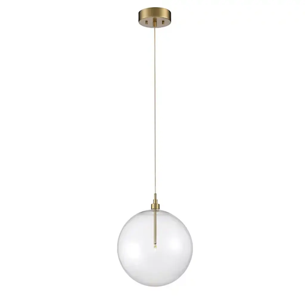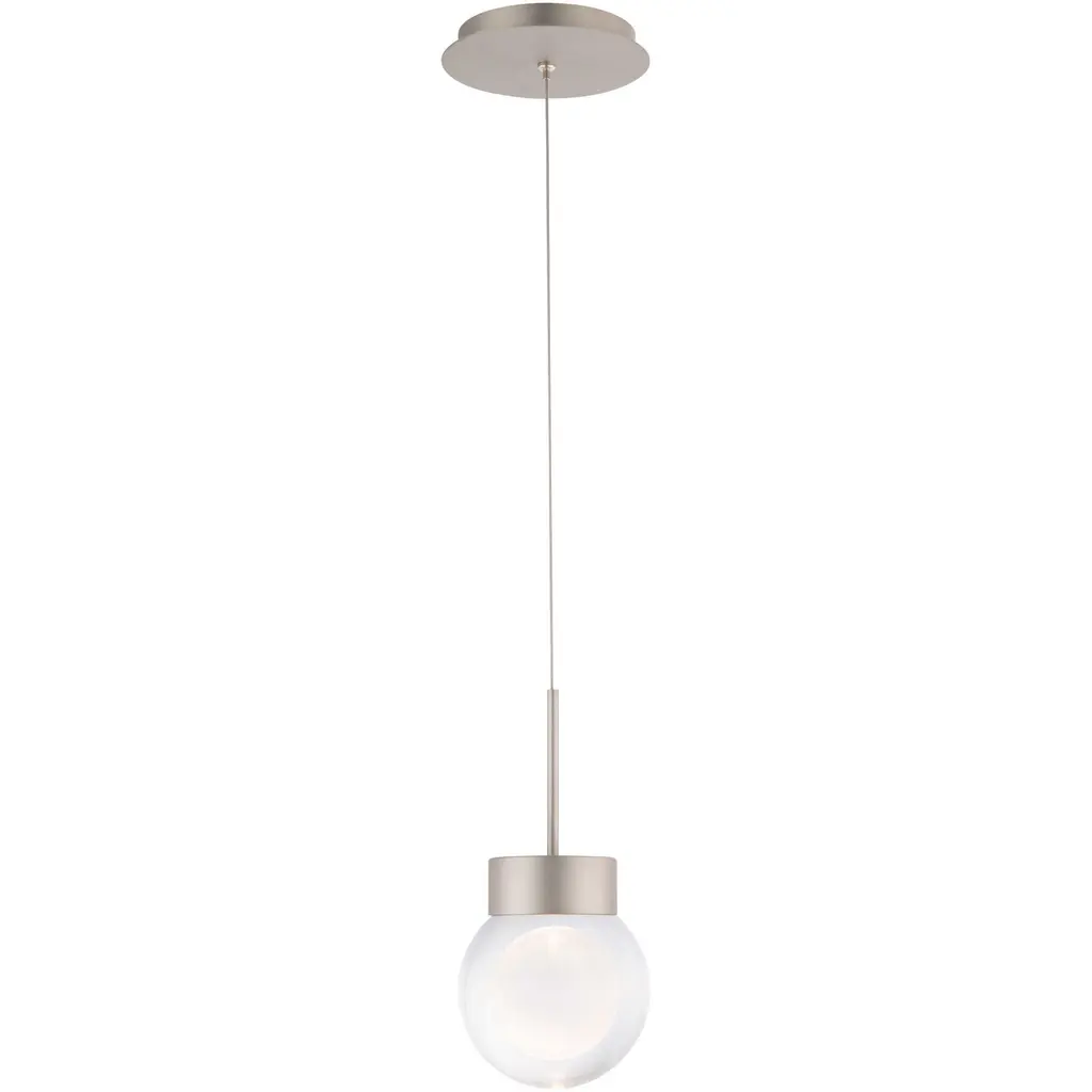 The Kaitlyn Pendant by Alder & Ore is a clean, contemporary addition to rooms. Suspended from a round canopy by a single, slender cable, a minimal top is paired with a smooth, glass globe that a sleek stem and small light source are set within. Providing plenty of energy-efficient light to its surroundings, this simple design has a bright, airy feel that is at home in a wide range of spaces.