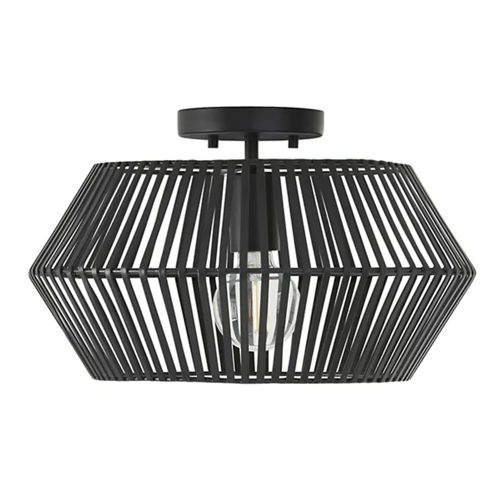 The Kaiya Semi-Flushmount from Capital Lighting is a light fixture that redefines transitional décor with its edgy, geometric precision. The open framework of this semi-flushmount brings a stylistic flair to your space, showcasing a captivating play of lines that add sophistication. Designed with innovation in mind, the visible LED within the framework provides brilliant illumination. Crafted from high-quality metal, Kaiya is a testament to durability and style. Experience versatility with the dimmable feature, compatible with an ELV dimmer.