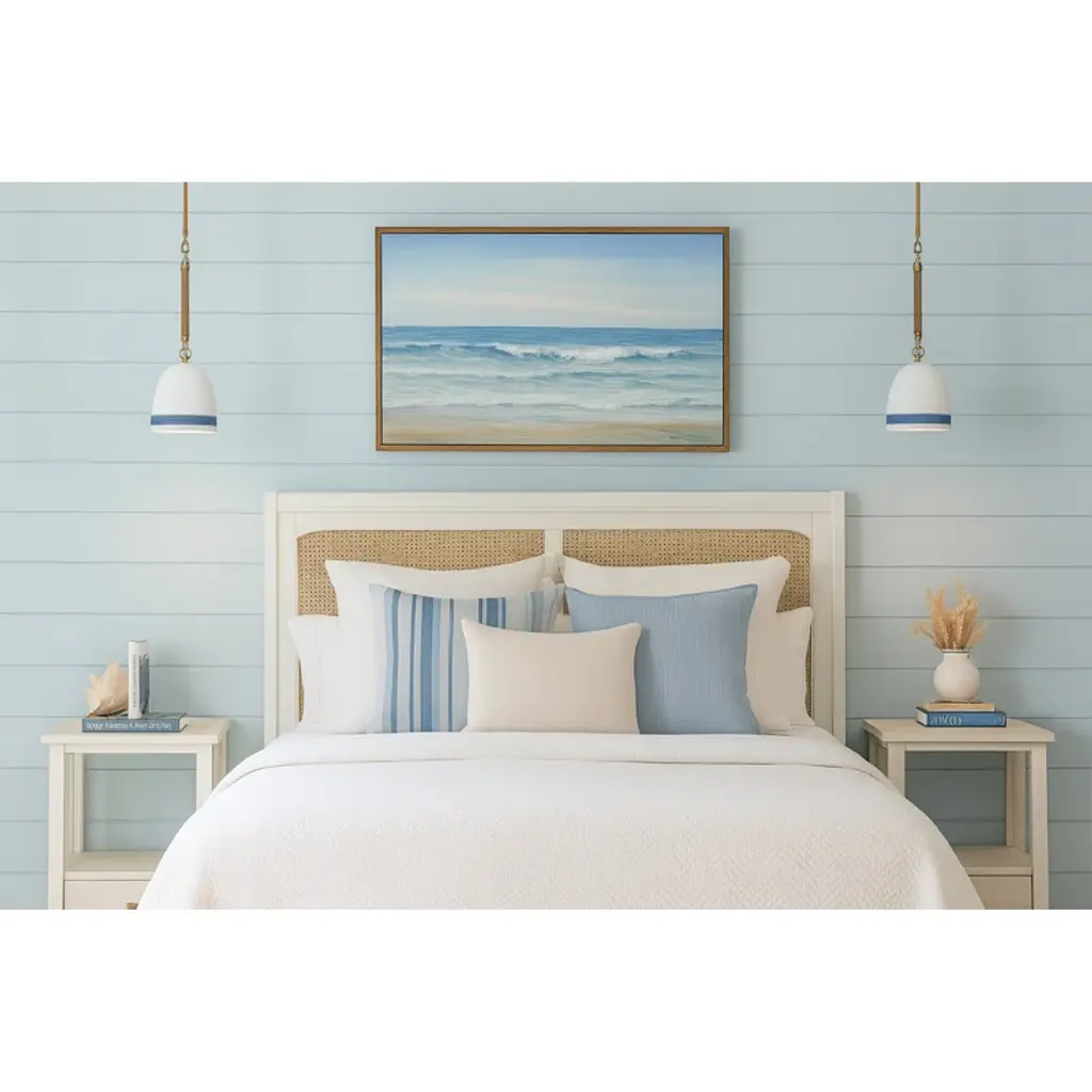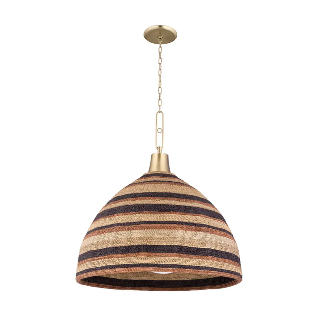 This coastal-inspired pendant features an off-white ceramic dome shade detailed with hand-painted stripes and suspended from an adjustable 60" chain and jute-wrapped rod. A metallic finish adds a hint of sophistication while the natural rope introduces organic texture. Designed for indoor use, it casts a soft, focused glow perfect for kitchens, casual dining rooms, or breezy, beach-inspired interiors.