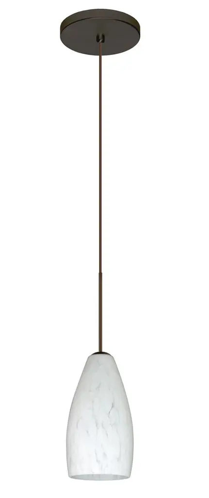 The Karli features a softly radiused glass, that will gracefully blend into almost any decorating theme. Our Carrera glass is a classic yet modern décor that gives off a soft white light. Clear molten glass is rolled in alabaster powder like frit, and then blown into shape with a semi-clear frosted white inner finish. This décor is created by rolling molten glass in small bits of white called frit. The smooth satin finish on the clear outer layer is a result of an extensive etching process. This blown glass is handcrafted by a skilled artisan, utilizing century-old techniques passed down from generation to generation. Each piece of this décor has its own artistic nature that can be individually appreciated. The 12V cord pendant fixture is equipped with a 10' braided coaxial cord with Teflon jacket and a low profile flat monopoint canopy. These stylish and functional luminaries are offered in a beautiful brushed Bronze finish.