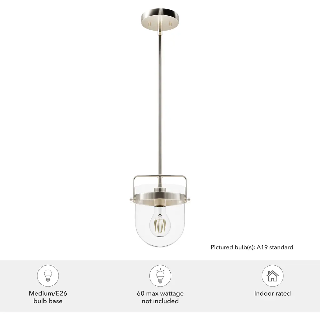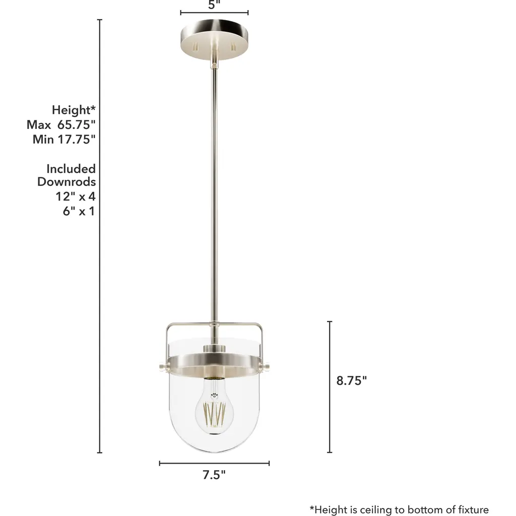 Karloff 1 Light 7.5 Inch Brushed Nickel Pendant Ceiling Light
