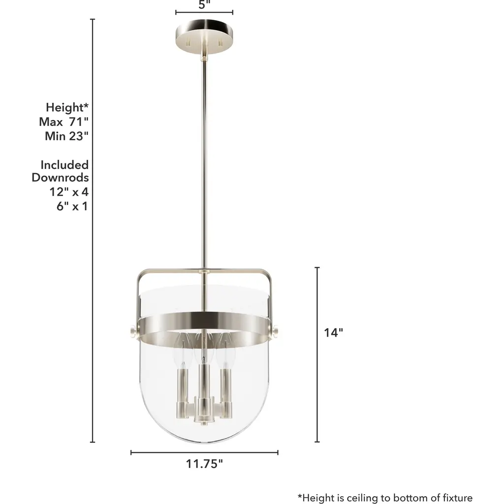 Karloff 3 Light 11.75 Inch Brushed Nickel Pendant Ceiling Light