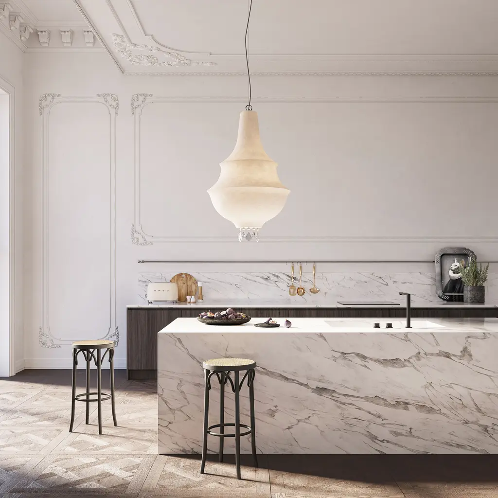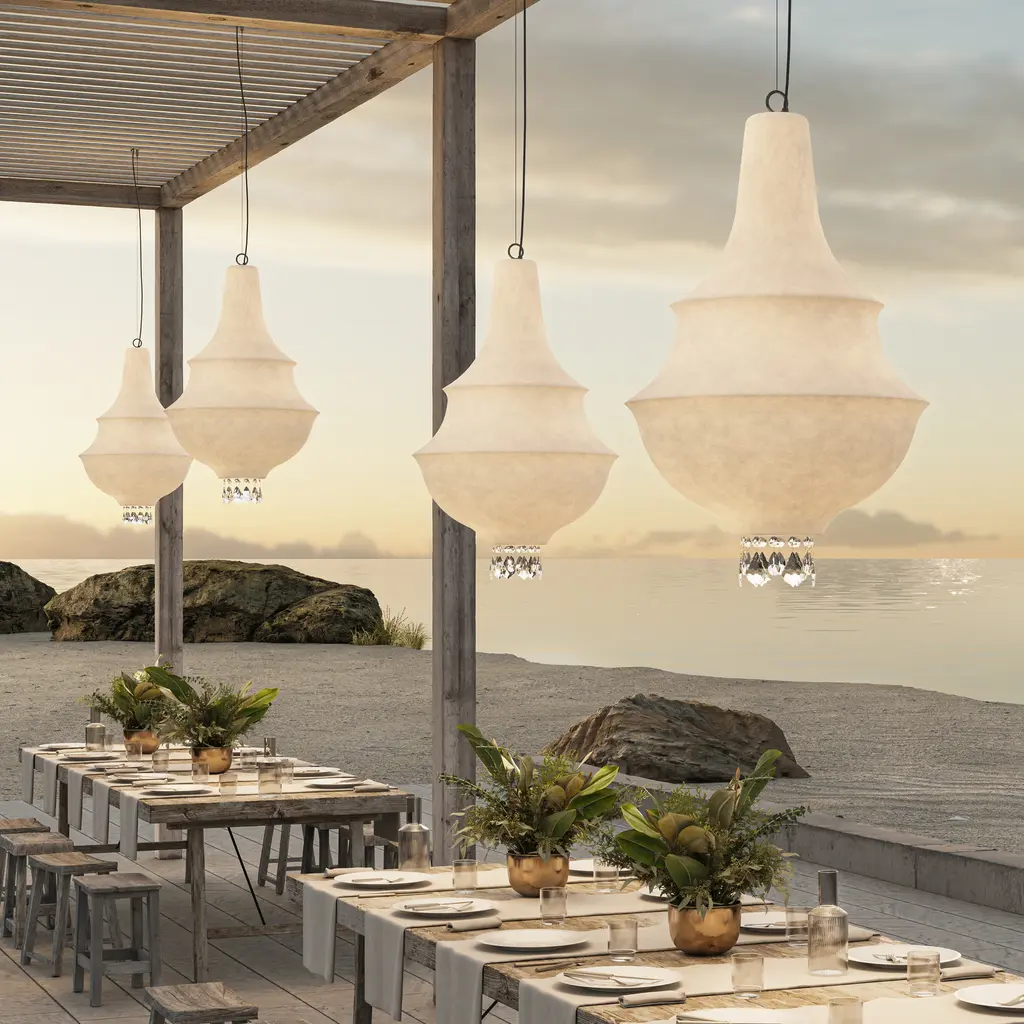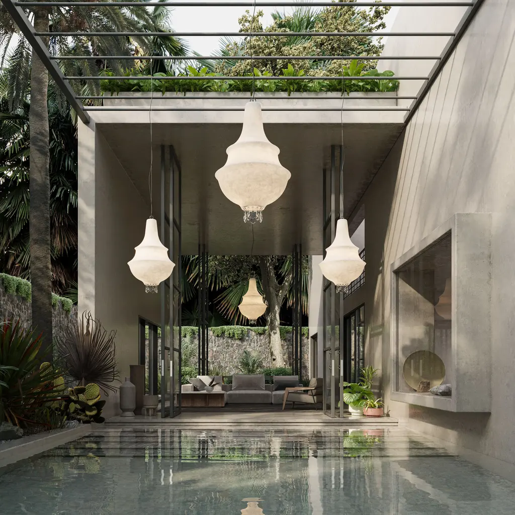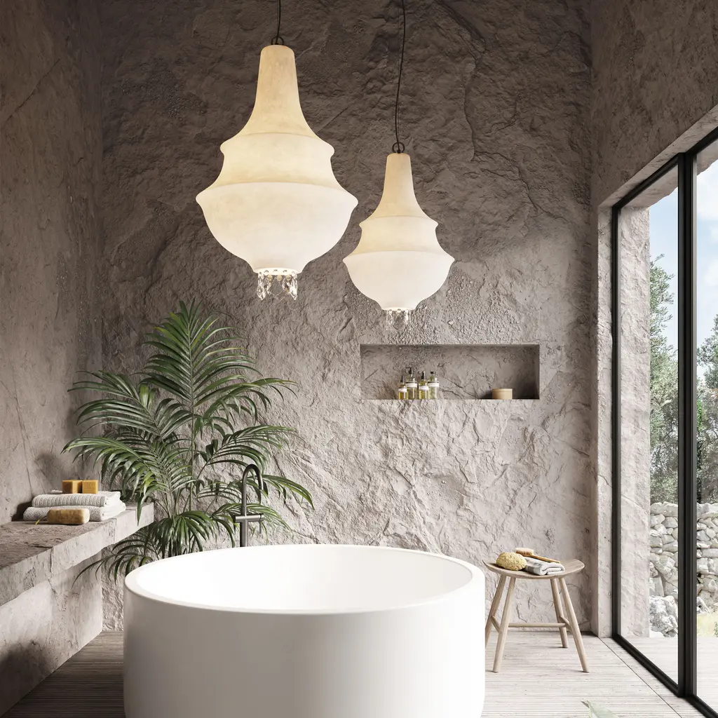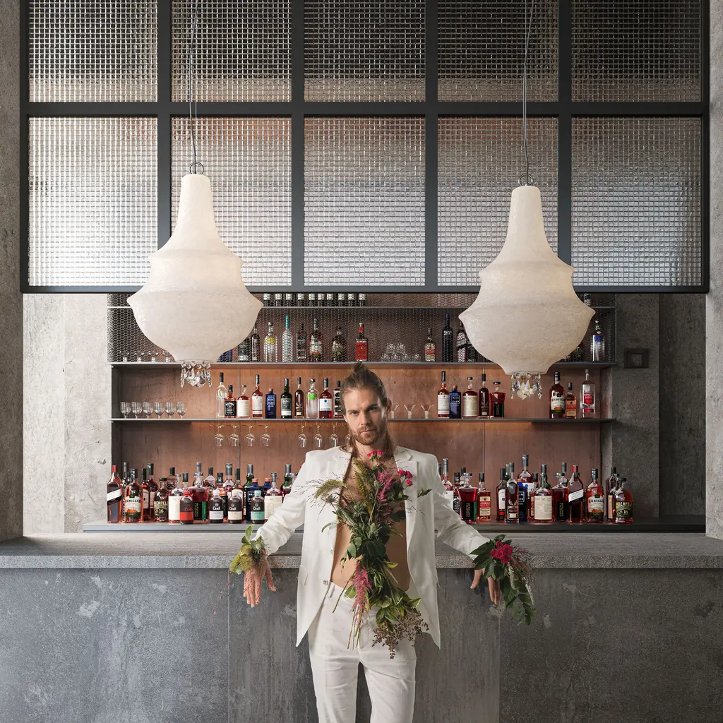 Paying homage to Diana, Princess of Wales, the Lady D lighting collection exudes refinement and sophistication in an elegant and versatile design. Art director and designer Matteo Ugolini has created the series with a stylish silhouette inspired by classic crystal chandeliers. The Lady D Floor Lamp features a white fiberglass diffuser topped with a metal ring that allows you to move the light with ease. Available in both indoor and outdoor versions, and in small and large sizes, this floor lamp provides an inspired solution to transform your home, whether you want to use it in a bedroom, living room, or garden. A suspension lamp version is also available.