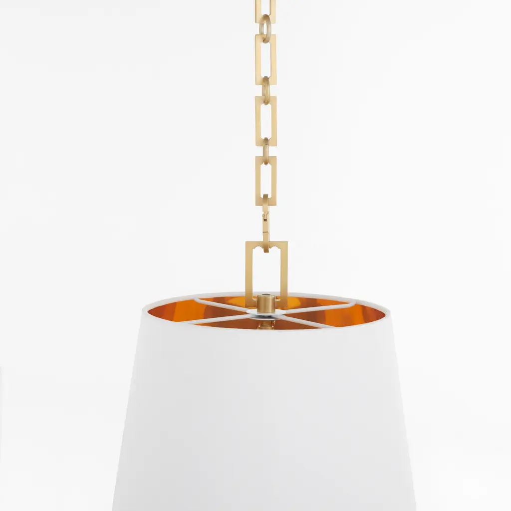 Karnes from Tamara Day for Quorum brings timeless elegance to any space. Featuring classic pendant silhouettes, each design showcases a white linen shade with a gold interior lining that enhances the warm, inviting glow. Finished in aged brass, Karnes complements a variety of aesthetics and offers a range of sizes to suit any space.