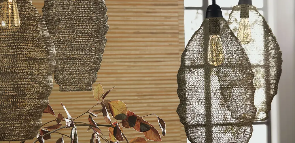 The Karone wire pendant light's beehive-shaped iron "shade," made from handcrafted mesh and finished in dark antique brass, has incredible texture and an eye-catching profile—and it's entirely scrunchable. Straighten the shade out or scrunch it up; this wire cage pendant is sure to shape up any style setting. It works as modern farmhouse pendant lighting and in midcentury-modern spaces—and in a group of three, hung at different heights, Karone really shines.