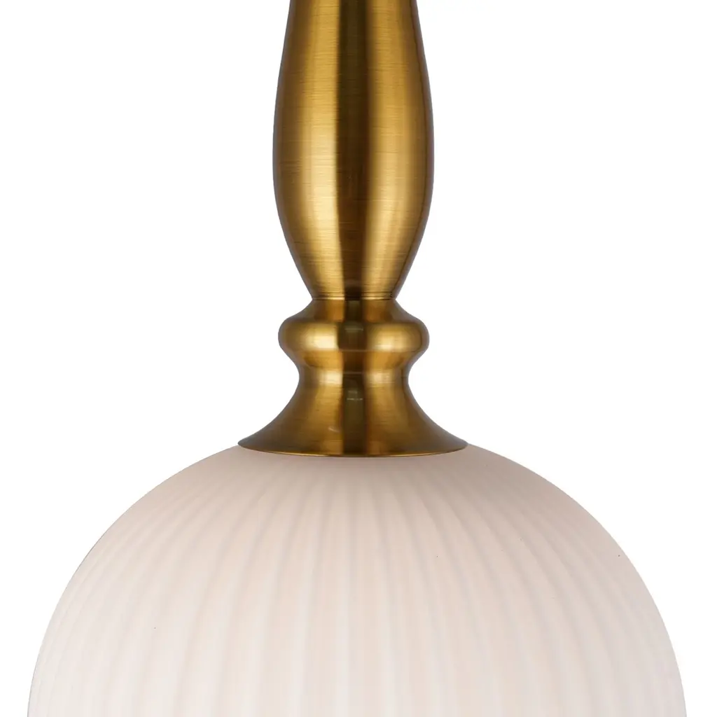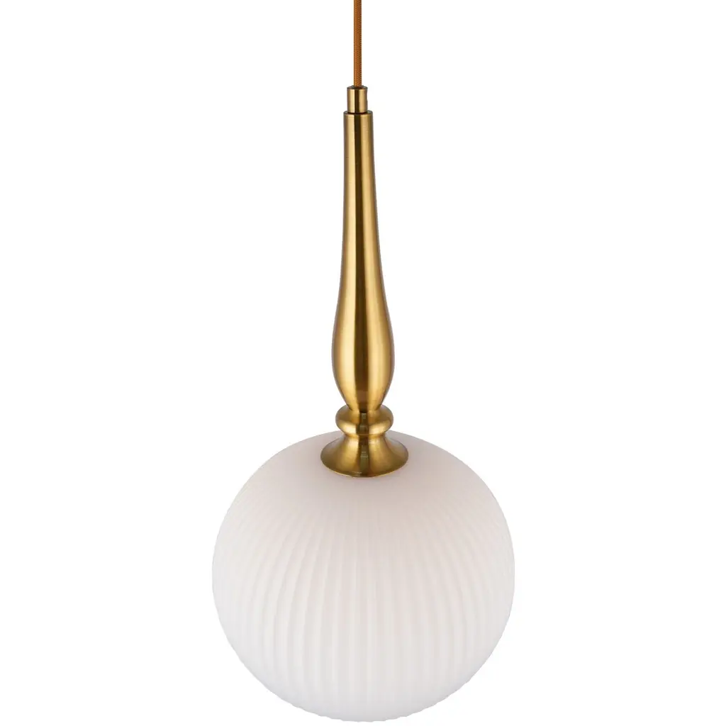 The Kate Pendant Light is a statement of refined elegance, featuring a brushed brass holder that supports its striking white ribbed spherical glassware. The textile-covered wire complements the design while offering effortless height adjustment for versatile placement. This large version is perfect for creating a bold yet sophisticated ambiance in spacious areas. The Kate collection also includes a smaller size, allowing you to achieve a cohesive look in any space.
