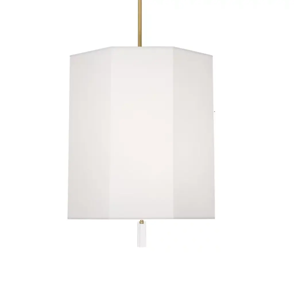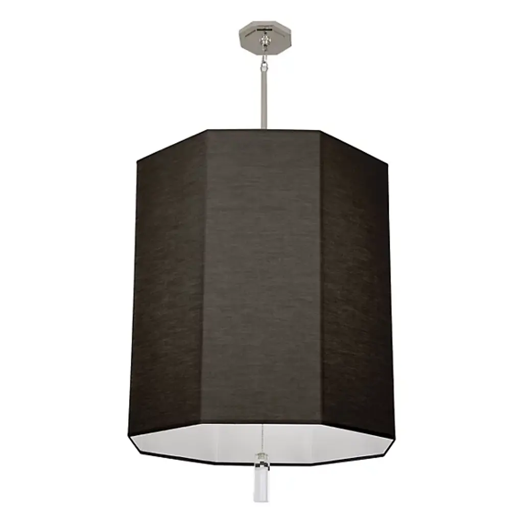 Chic contemporary design meets Art Deco style in the Kate Pendant by Robert Abbey. Featuring an angular hardback fabric shade, this fixture makes an approachable accent piece while seamlessly blending in with a variety of interior décor themes. Its fabric body filters the glow from the inner lamping while a clear crystal rod hangs elegantly below. A metal canopy and downrod complement the muted fabric and add to its retro flair.