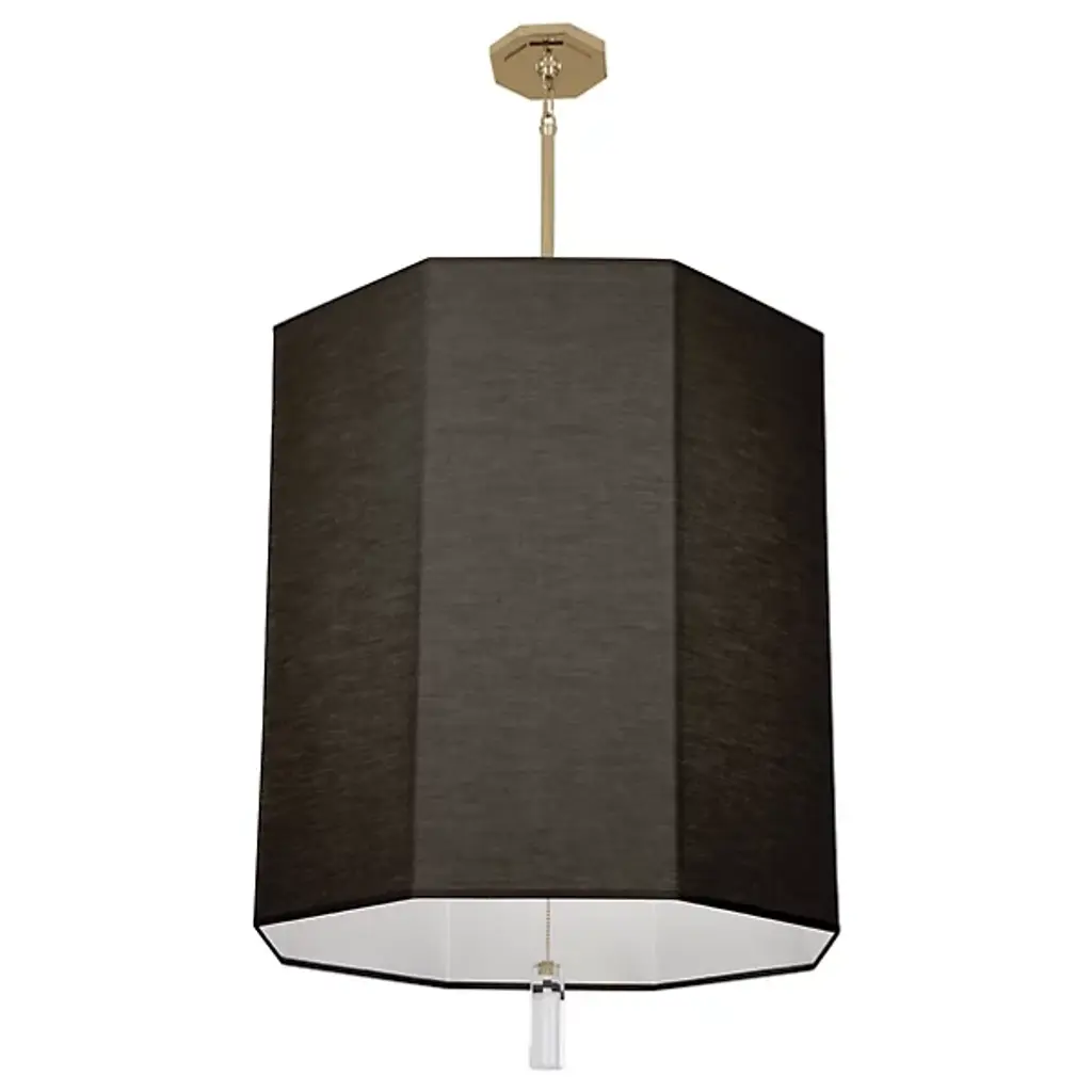 Chic contemporary design meets Art Deco style in the Kate Pendant by Robert Abbey. Featuring an angular hardback fabric shade, this fixture makes an approachable accent piece while seamlessly blending in with a variety of interior décor themes. Its fabric body filters the glow from the inner lamping while a clear crystal rod hangs elegantly below. A metal canopy and downrod complement the muted fabric and add to its retro flair.