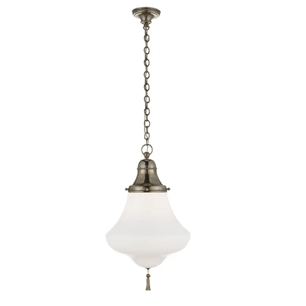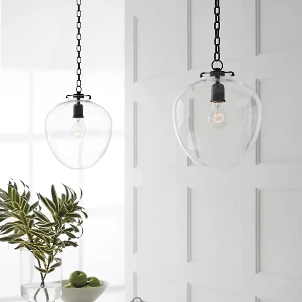 Brighten the mood and clarity of any room with the Katie Acorn Mini Pendant by Visual Comfort Signature, formerly known as Visual Comfort, Its clear shade is crafted in the shape of an acorn and available in a variety of glass types, while the chained cord offers a mid-century vibe and comes in a choice of finishes. Wherever this fixture is installed, it will instantly brighten and beautify its surrounding space.