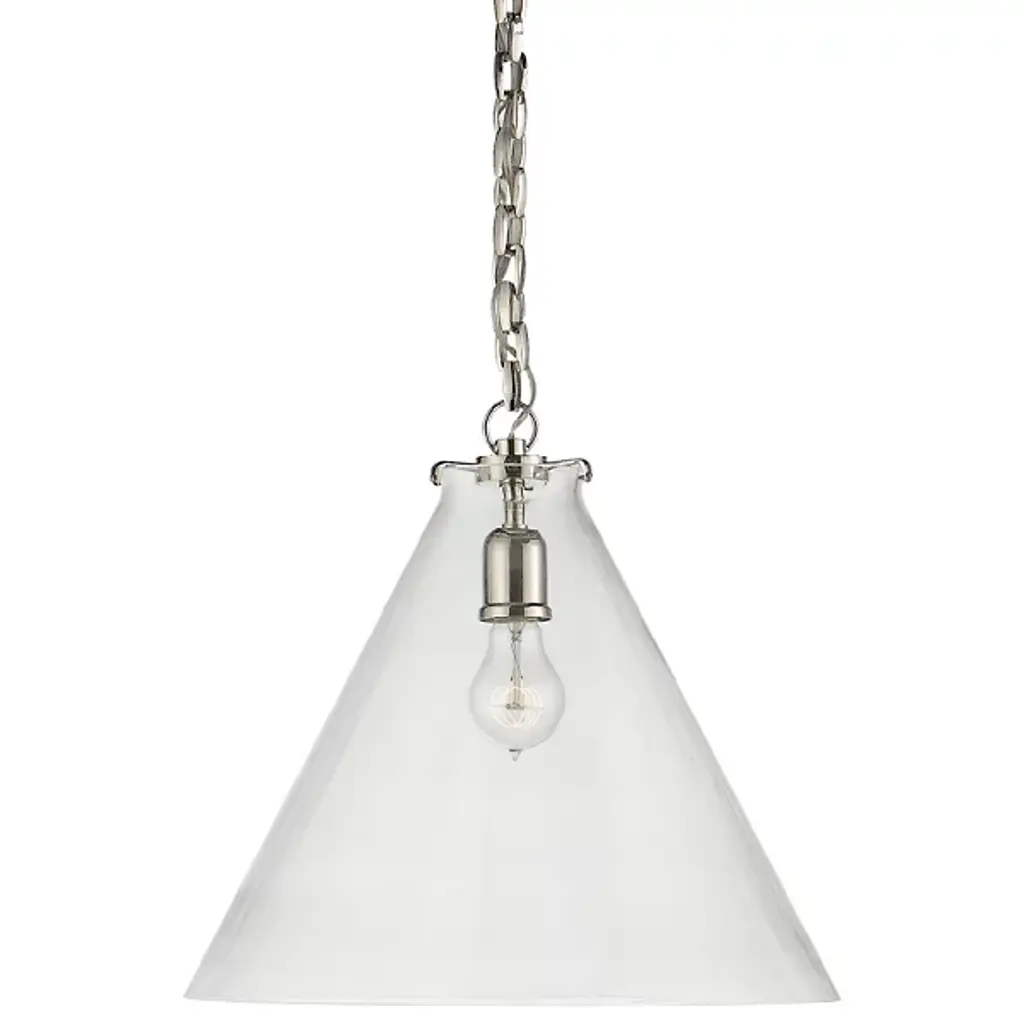 Lend fresh new angles to your home décor with the Katie Conical Pendant by Visual Comfort Signature, formerly known as Visual Comfort. This chic design by Thomas O'Brien features a straightforward, no-nonsense design that easily complements any visual motif for a seamless fit into your modern living space. The pendant's generous proportions make it bold despite its subtlety, and with assorted finish and glass options to choose from, it easily adapts to suit its surroundings.