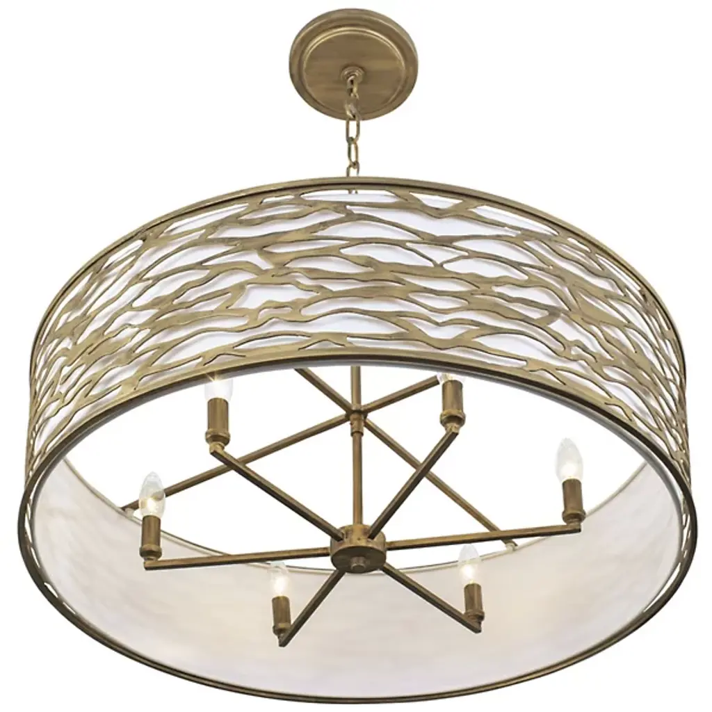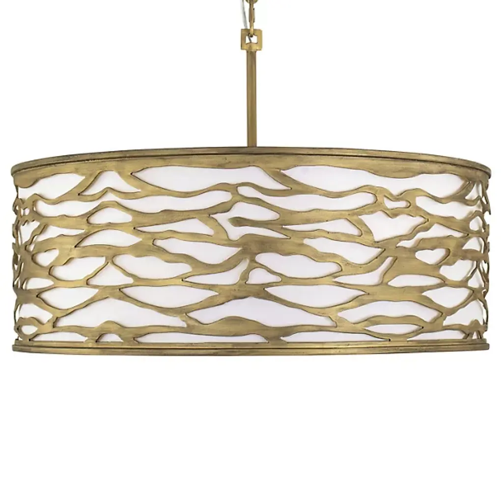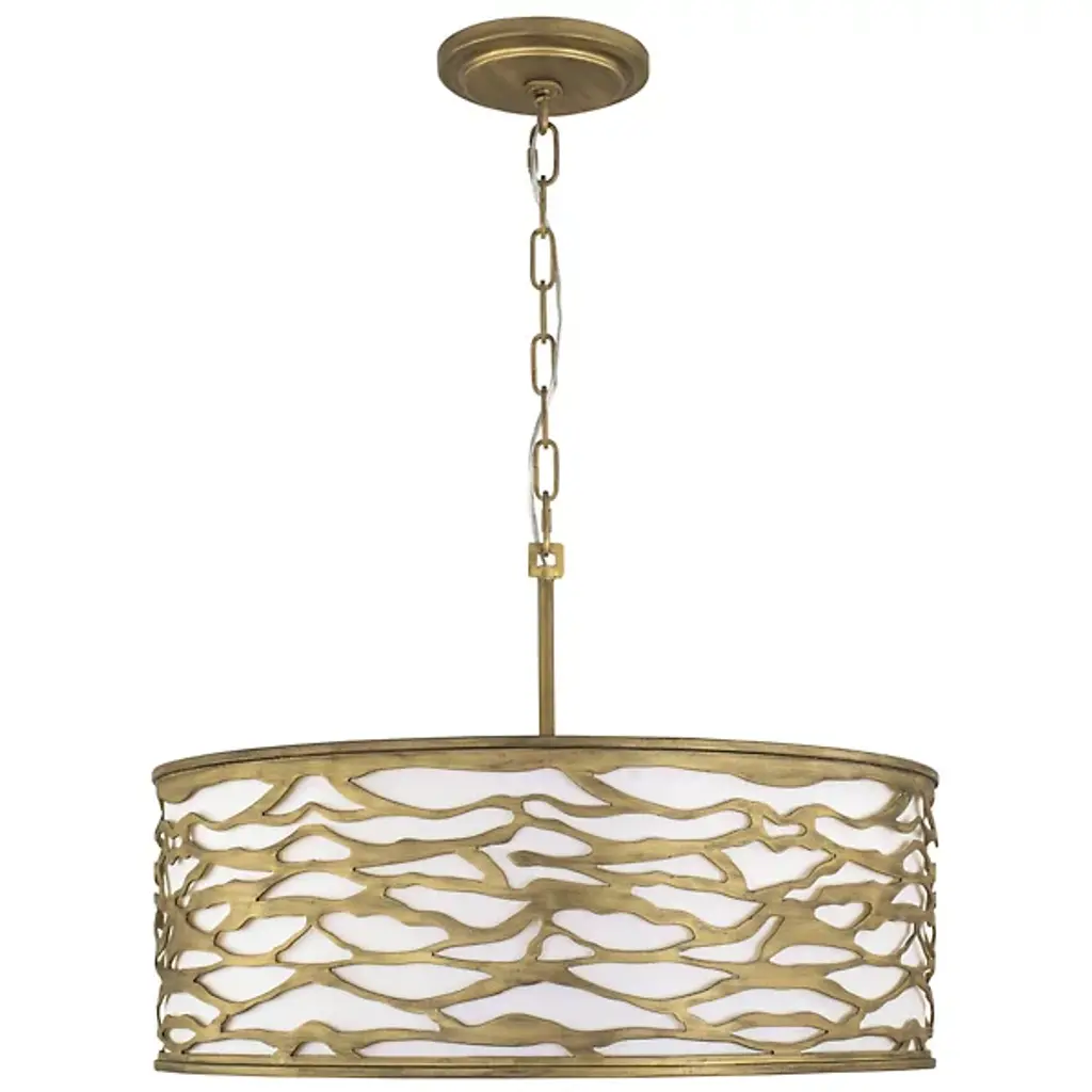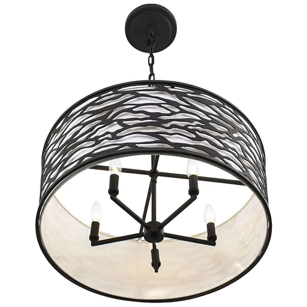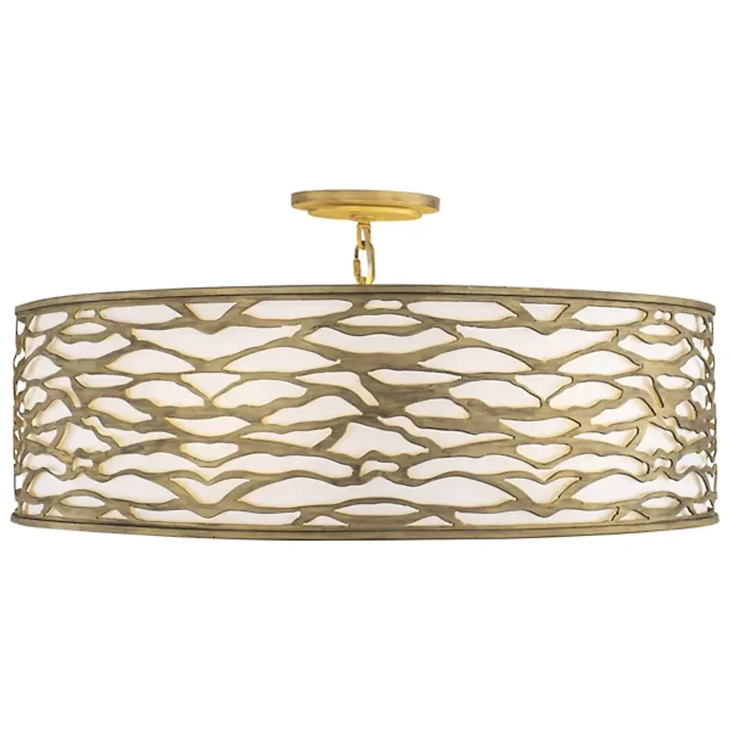 See rolling hills or shimmering waves in this smooth, modern fixture. The design of the Kato Semi-Flushmount by Varaluz was inspired by the simultaneously watery and hilly topography near Mankato, MN. It has a drum-shaped Linen shade overlaid by a Steel cage with intricate and organic-looking openings. Light shines brightly downward and more softly through the linen and patterned cage. Use this semi-flushmount to add texture as well as plentiful ambient light in interiors with lower ceilings, like bedrooms, entryways or kitchens.