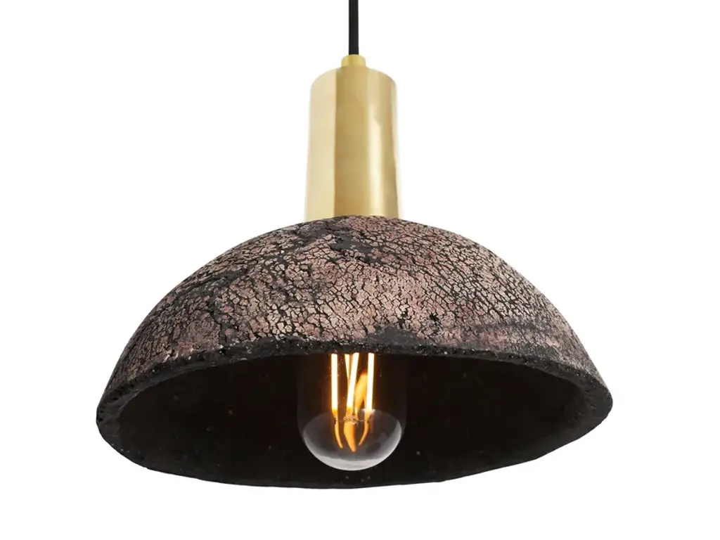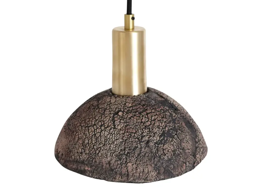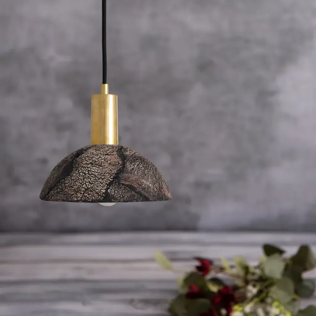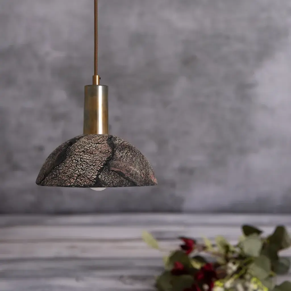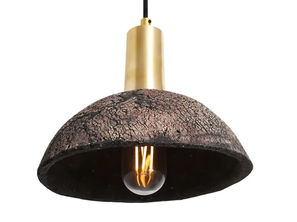 The Kauri tree originates from New Zealand and has influenced the naming of this intriguing ceramic pendant light. As the Kauri tree ages, it sheds low hanging branches and forms a crown-shaped façade, similar to the dome-shaped design of the Kauri ceramic pendant.The cracked engravings mirror the growth extension of a tree's roots, tying in the natural essence of the clay materials used to craft this peerless pendant. Completed in a Black Clay colour finish, this particular pigment is a soft blend of warm browns, greys and dark charcoals. With an inviting complexion, this multi-toned pendant is sure to bring a relaxed sensation to interior spaces.Supported by a tall brass lamp holder, the Kauri ceramic pendant blends with other interior furnishings by hosting the opportunity to choose from four distinct colour finishes: antique brass, antique silver, polished brass and satin brass.The dome-shaped pendant is a charming addition to interiors, adding a rustic flair to kitchens and living spaces. At just 20cm in diameter, this pendant is perfect for small snug spaces or can be scattered across a kitchen island using two or three pendants. An adaptable design, the Kauri looks at home in country, vintage-style settings or alternatively comes to life in more modern industrial interiors.The coarse, textured pendant ceramic shade showcases the hours of craftsmanship spent on creating a unique, organic design that is reflective of the centuries old ceramic craft.SPECIFICATIONSProduct Weight: 1.1 kg / 2.4 lbLight Bulb Base: E27CE Approved: YesCeiling Rose: MLROSE39 | 12cm DiameterCeramic Shade Code: MLCS001IP Rating: IP20Lampholder: E27 | Plastic | ES | Edison ScrewMaterial: Brass, CeramicMax Wattage: 40wNumber of Bulbs Required: 1Protection Class: Class IStandard Cable/Chain Length: 100 cmVoltage: 110v/120v or 220v/240v (depending on delivery location)