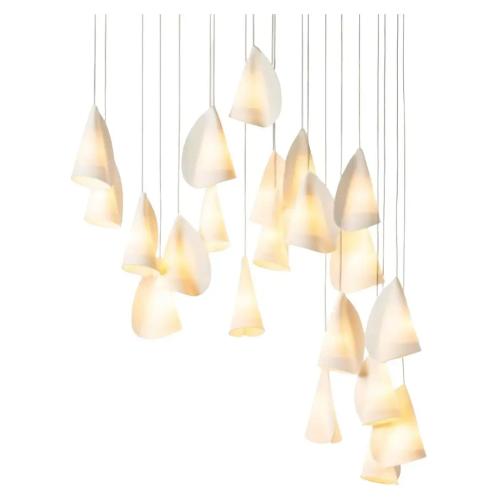 Kawa Pendant Cluster From Souda, Twelve Porcelain Diffusers, Black Cord